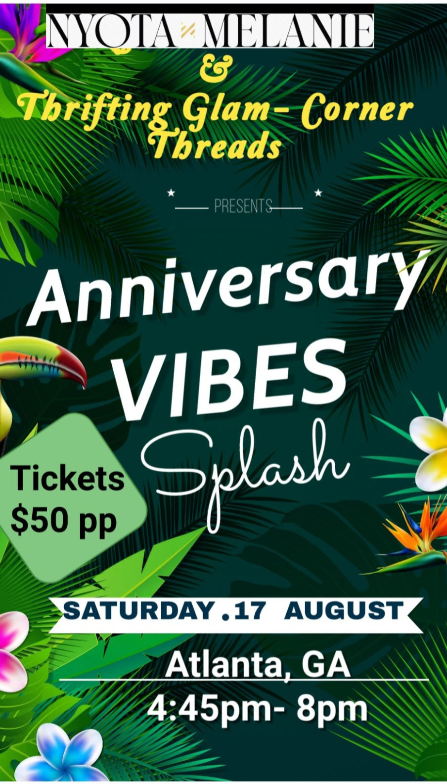 Join Nyota Melanie & Thrifting Glam - Corner Threads on Saturday, August 17th for a fabulous celebration as we mark another year of style and sophistication at Nyota Melanie & Thrifting Glam - Corner Threads 🥳