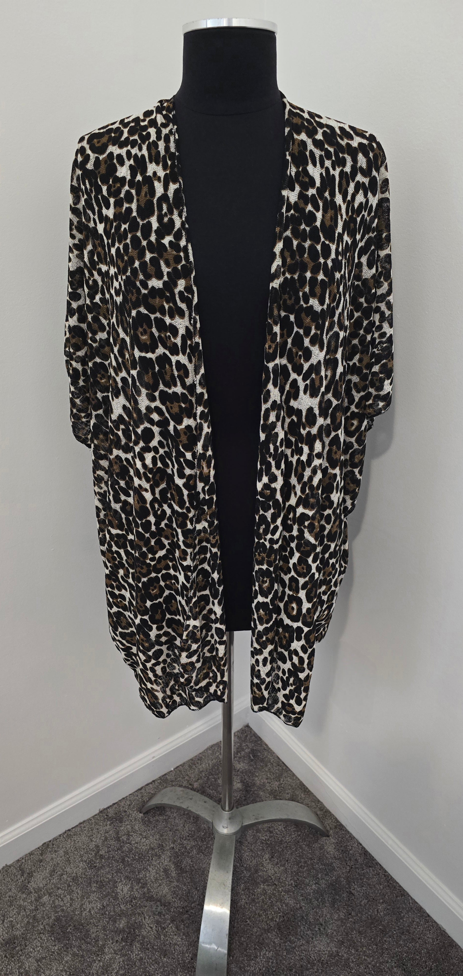Show your wild side with our Animal Print Duster. Dare to stand out in the exotic brown, black, and cream animal print. Perfect for adding a touch of adventure to any outfit, from dresses to swimwear. One size fits all. NWT.