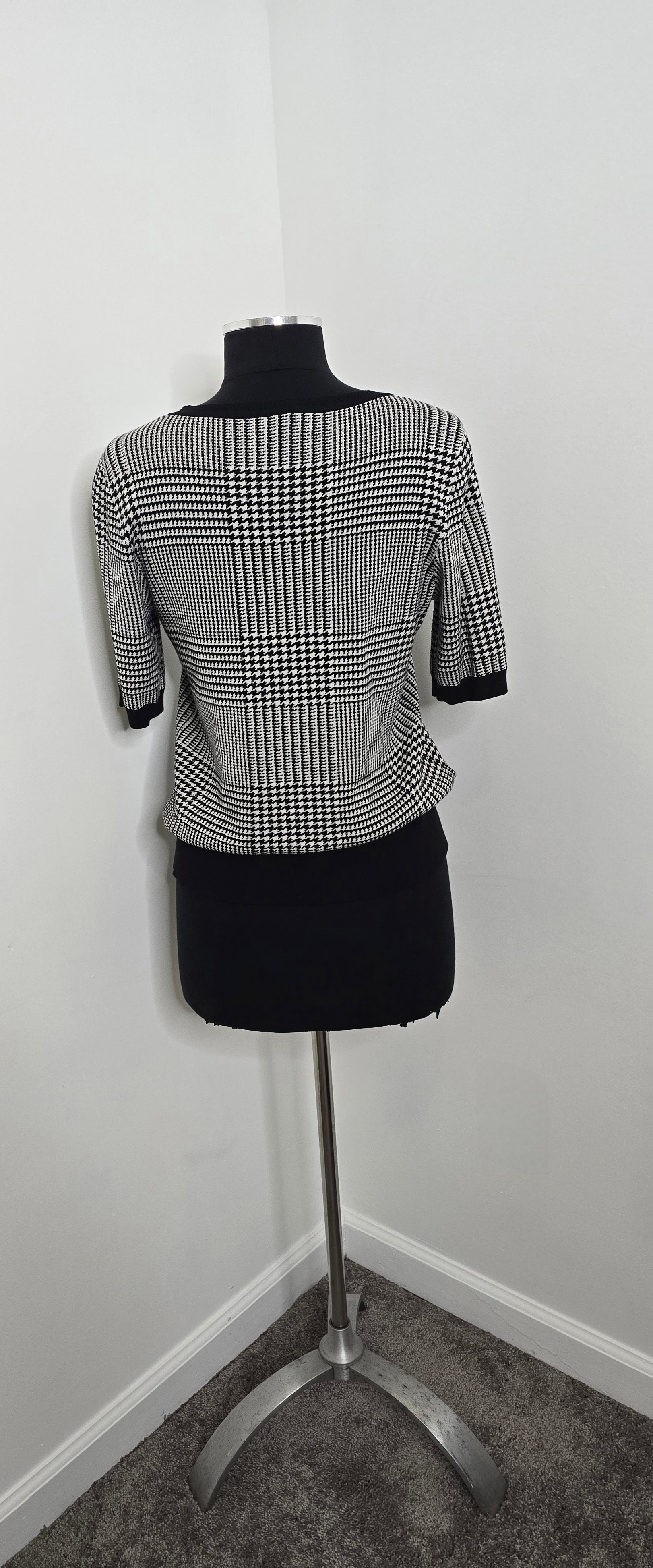 Ann Taylor Short Sleeve Houndstooth Sweater Sz L