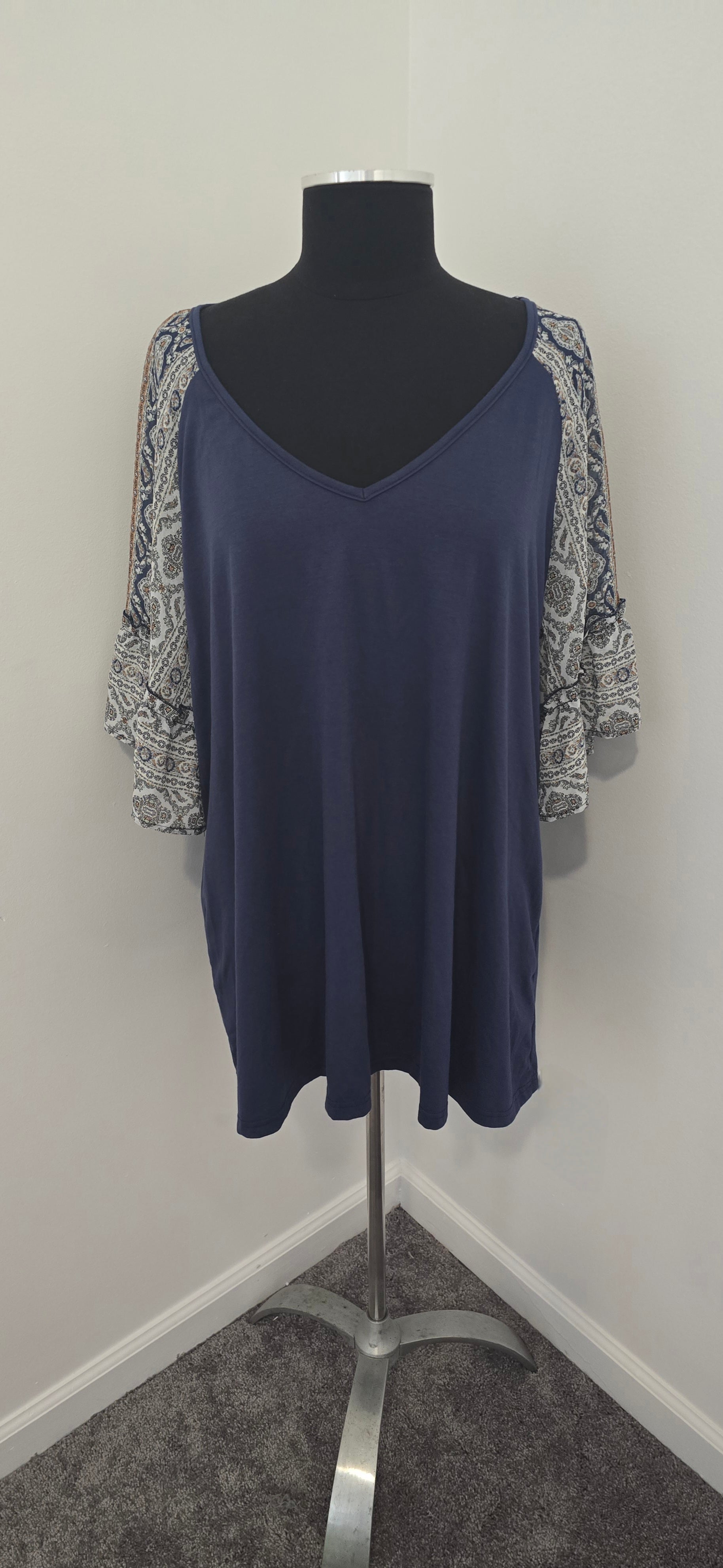 BloomChic Navy Sheer Sleeve Top Sz 22-24