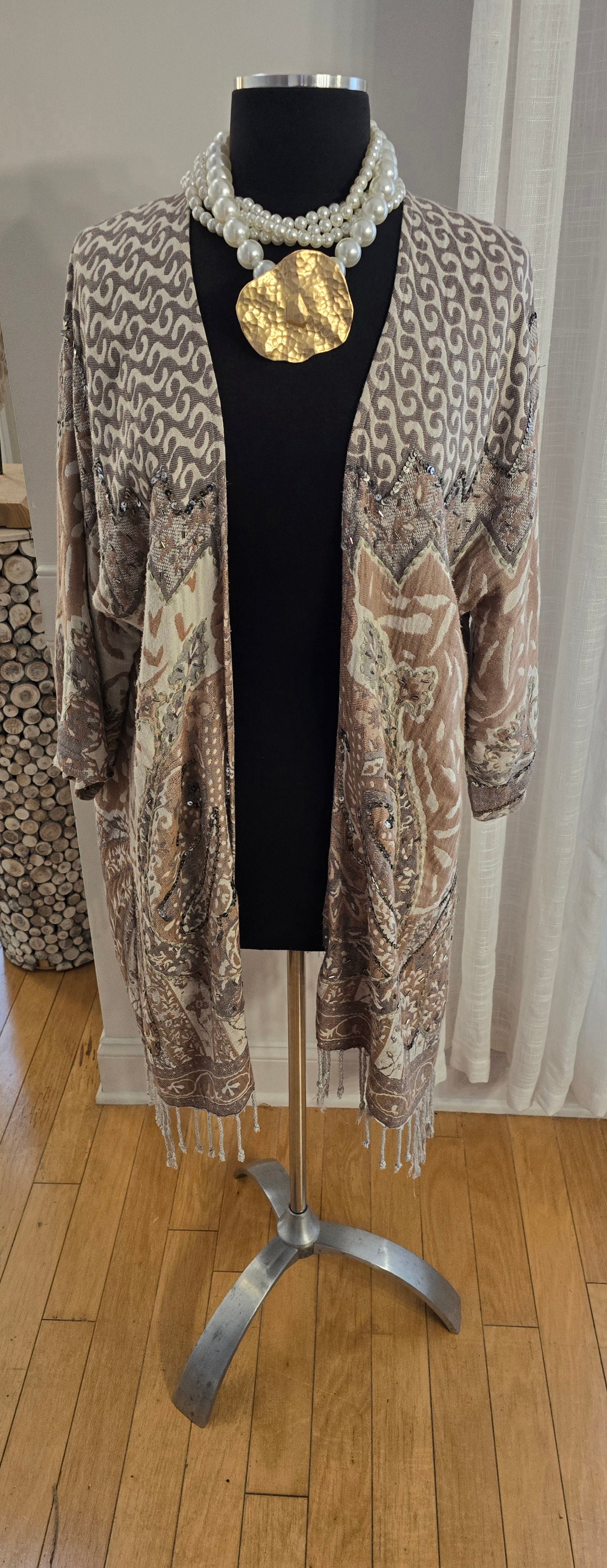 Introducing the Bohemian Necklace, featuring layered strands of faux pearls and goldtone alloy abstract pendant, accented with a barrel closure. With a shortest strand of 18", this NWT piece adds a touch of bohemian luxury to any outfit. Elevate your style with this elegant and exclusive must-have.