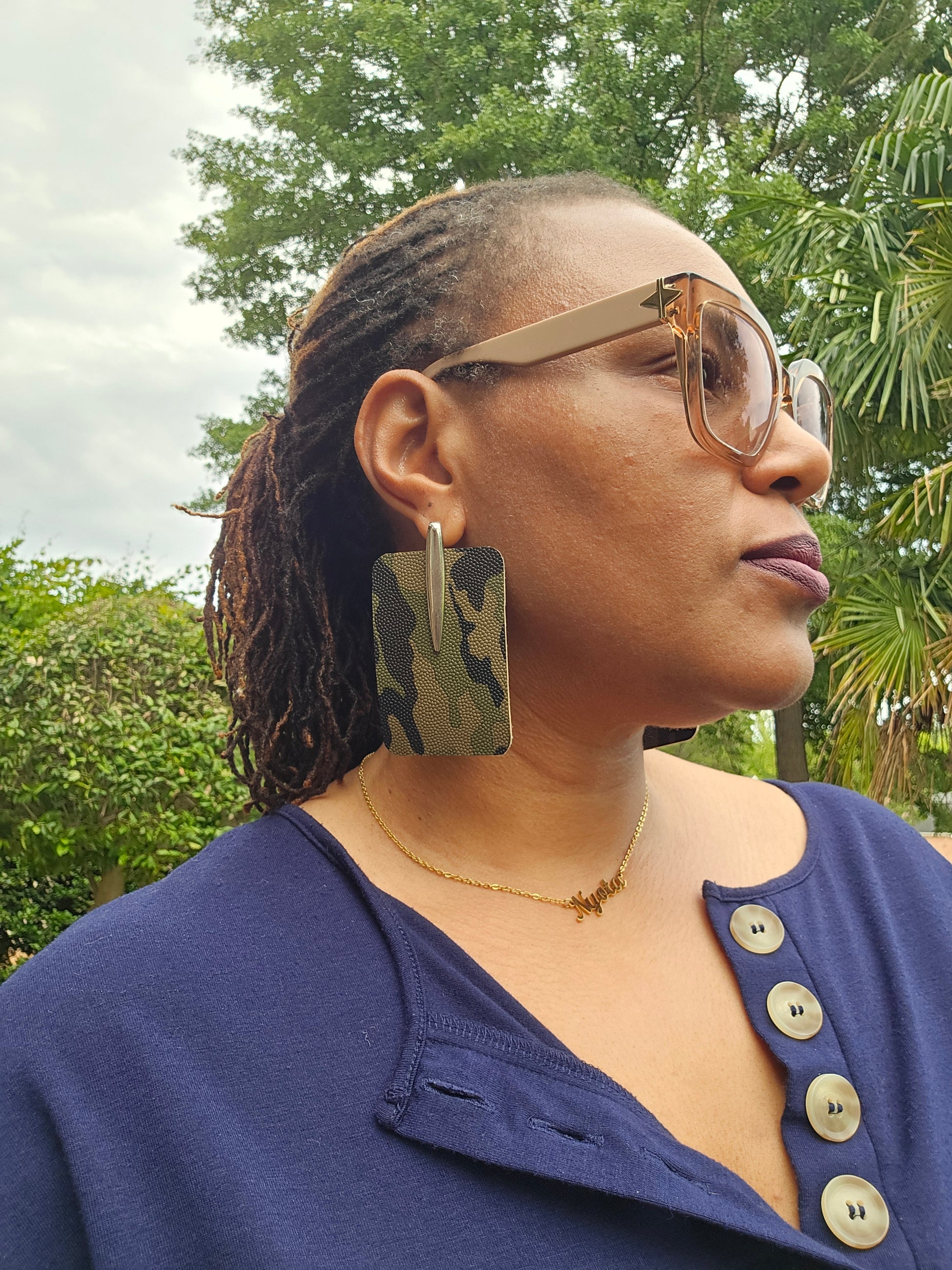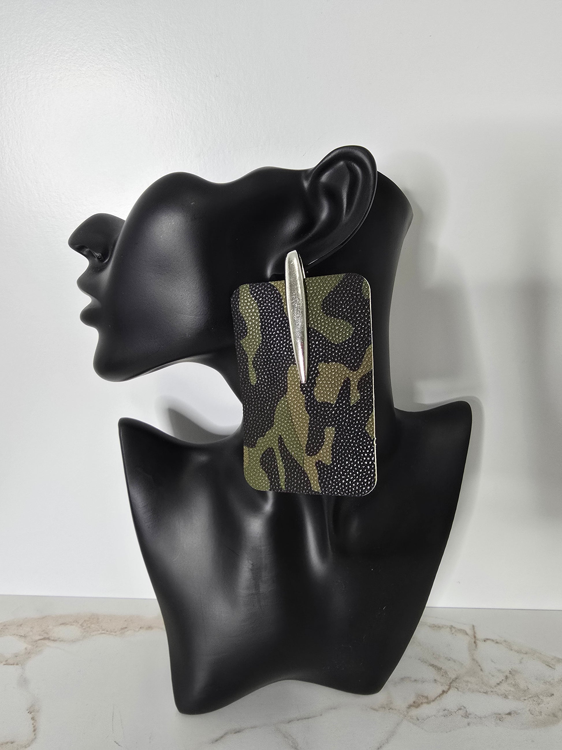 Set trends with our Camo Swag Earrings! These lightweight earrings feature a bold rectangular shape and silver hardware, perfect for showing off your love for camo in a stylish and adventurous way. Add these to your collection for a touch of edgy charm.