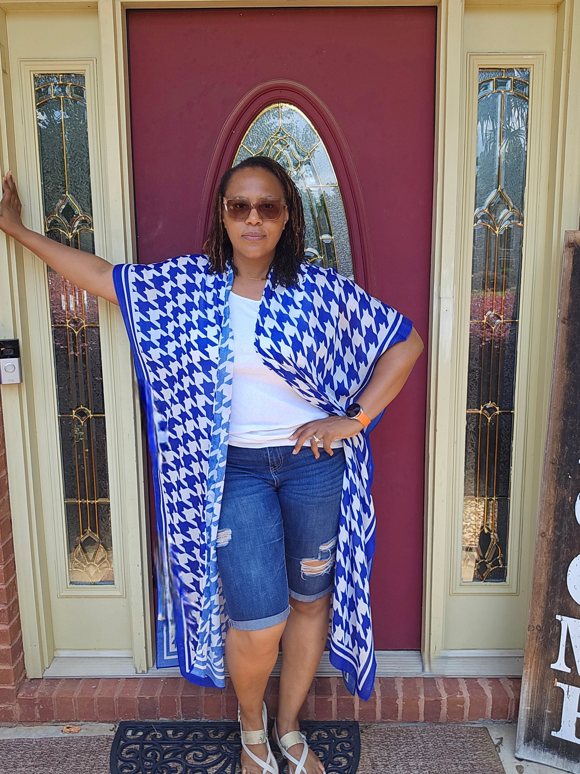 Turn heads in timeless style with our Check Me Out Houndstooth Kimono — a bold layering piece that instantly elevates any look. Designed for statement-makers, this kimono features a striking houndstooth pattern in three eye-catching color combinations: Blue & White, Red & White, and Pink & Green.