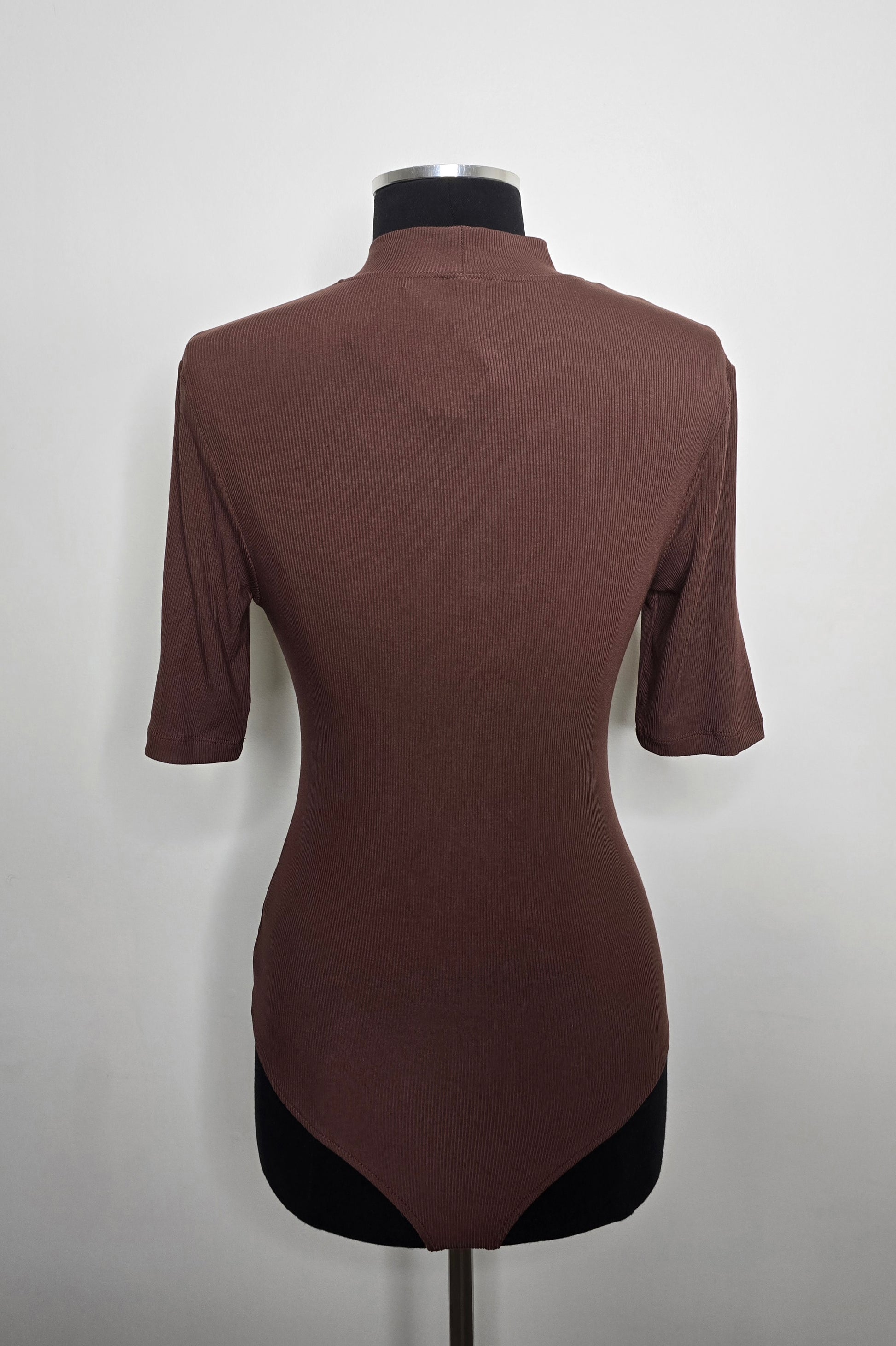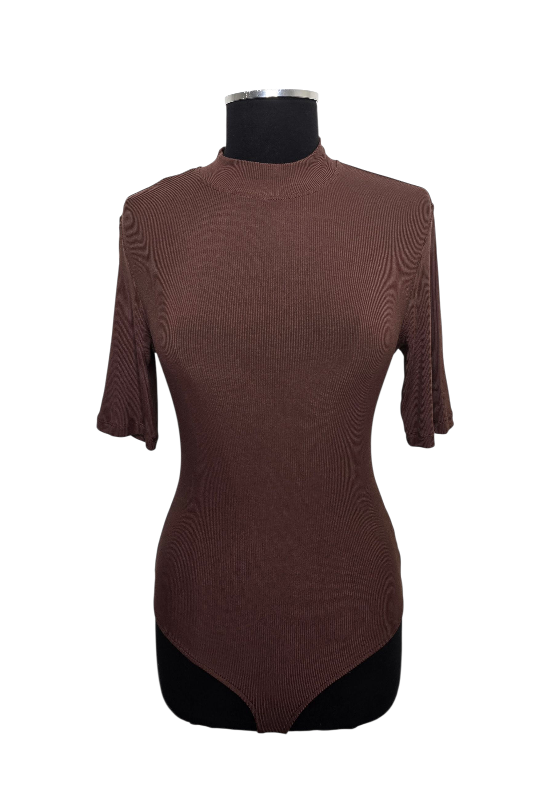 Chocolate Mock Turtleneck Ribbed Bodysuit