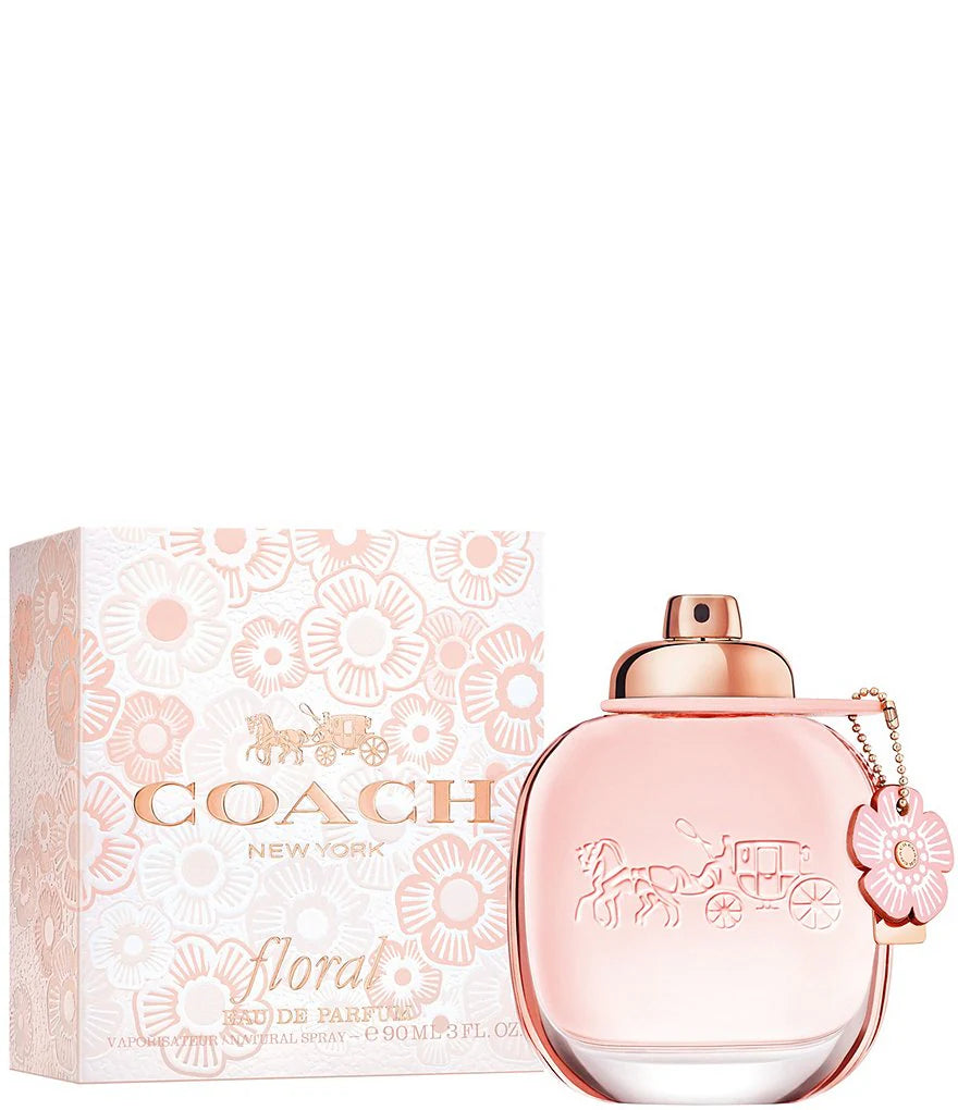 COACH Floral Eau de Parfum is inspired by COACH's signature leather tea roses. The feminine scent opens with a splash of citrus coeur and a touch of effervescent pink peppercorn with radiant pineapple sorbet. The heart reveals a bouquet of fragrant flowers (rose tea, jasmine sambac and gardenia) before an enveloping dry-down to elegant creamy wood, patchouli essence and musky notes. This unique fragrance perfectly embodies COACH's feminine, free spirit.