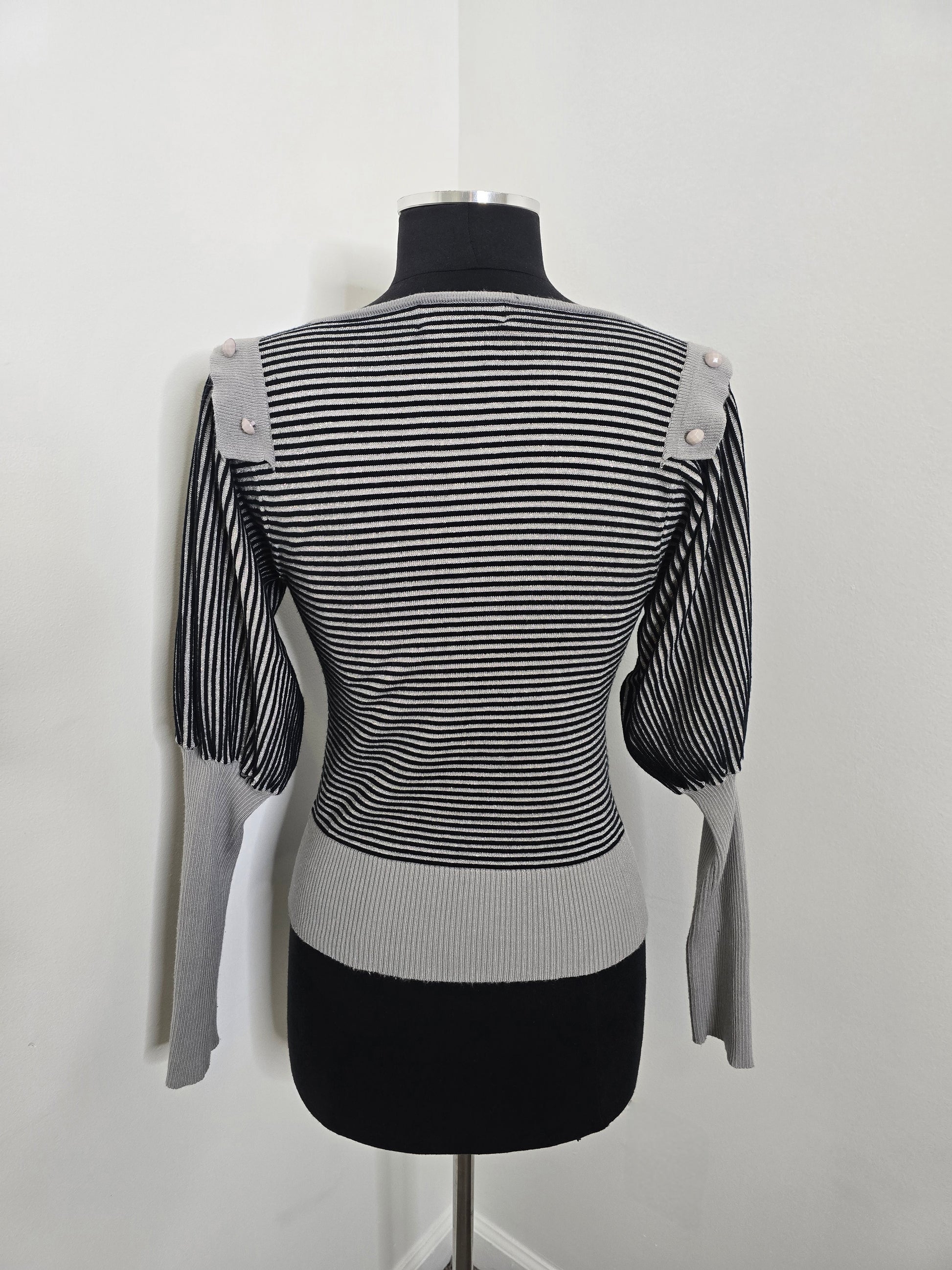 Color Cnaba Striped Ballon Sleeve Sweater Sz S