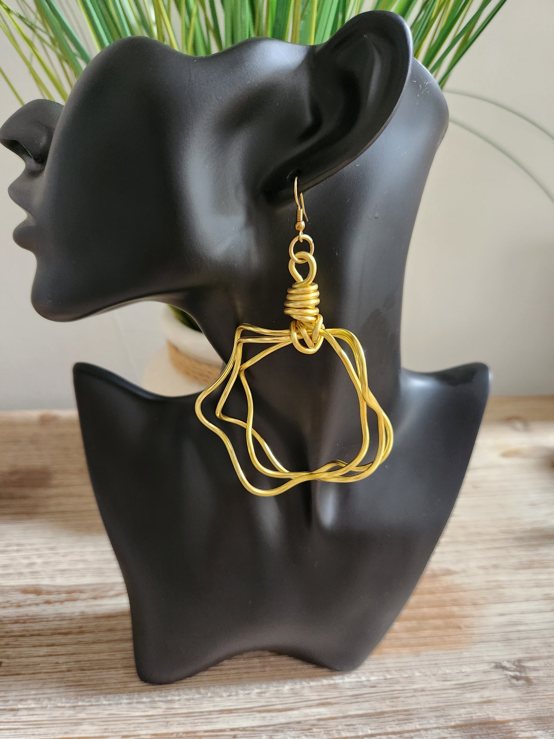 Handmade. Lightweight. Aluminum wire with brass hooks. Approx length 3.5"