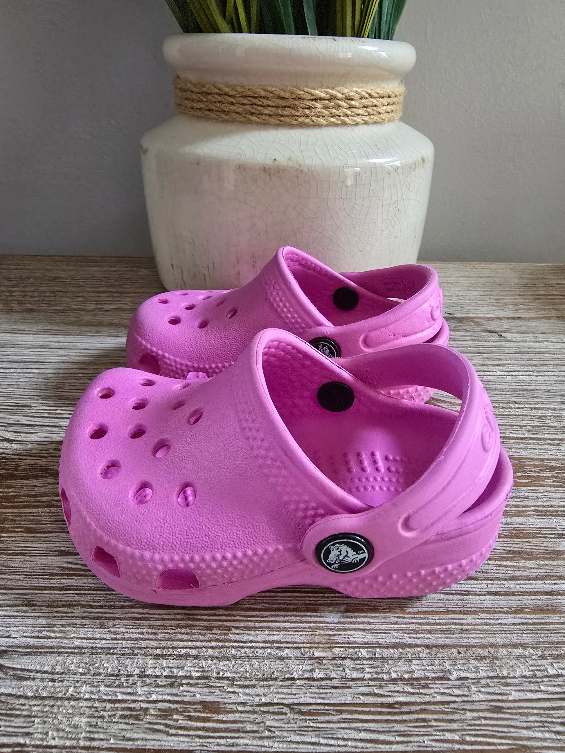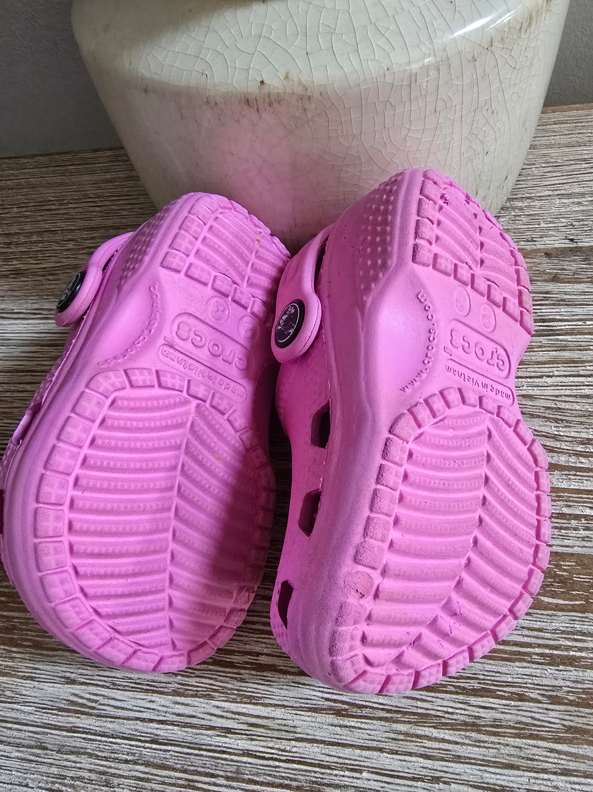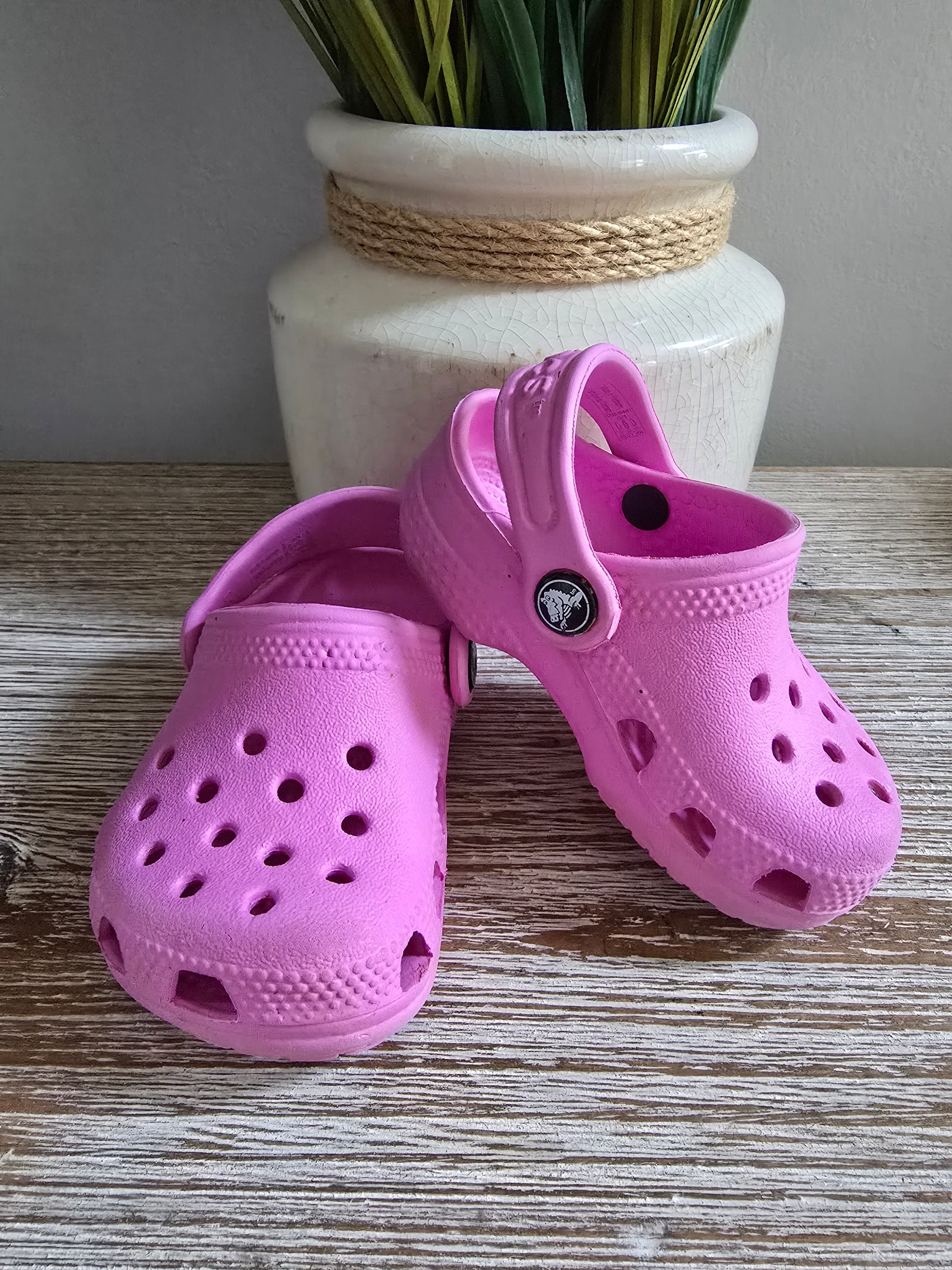 Step up your little one's style with these adorable Crocs in a lovely shade of pink! These size 2/3s are in excellent condition, making them the perfect comfortable and stylish choice for your toddler. So cute, you might even want a pair for yourself! 😉