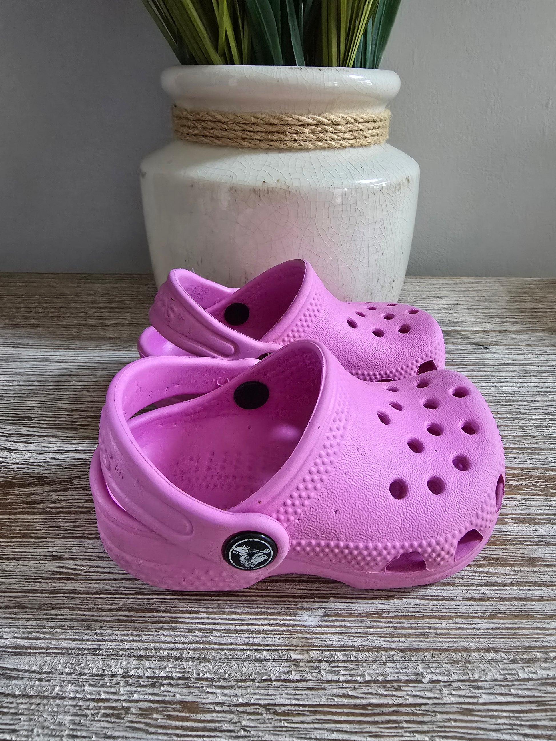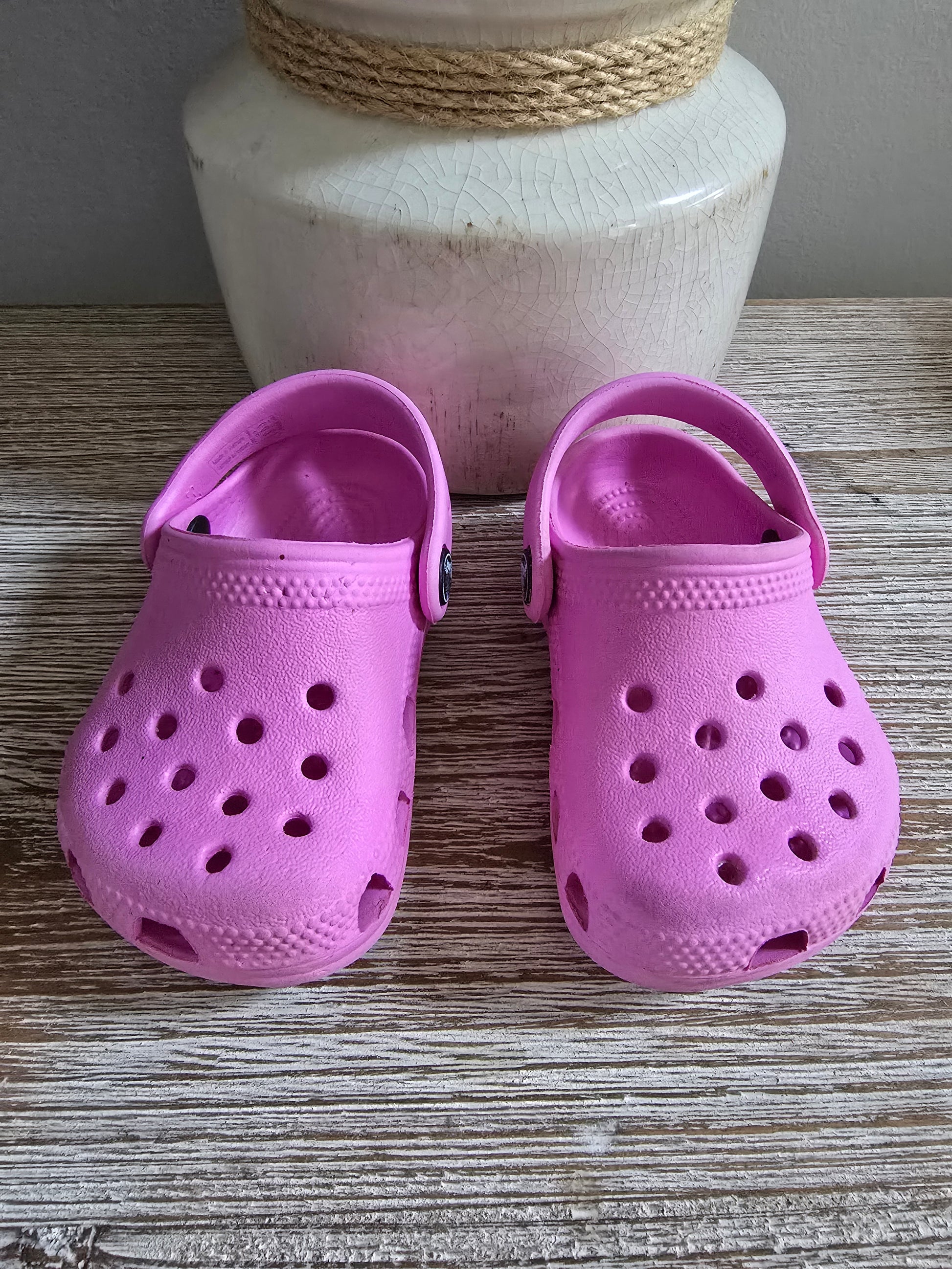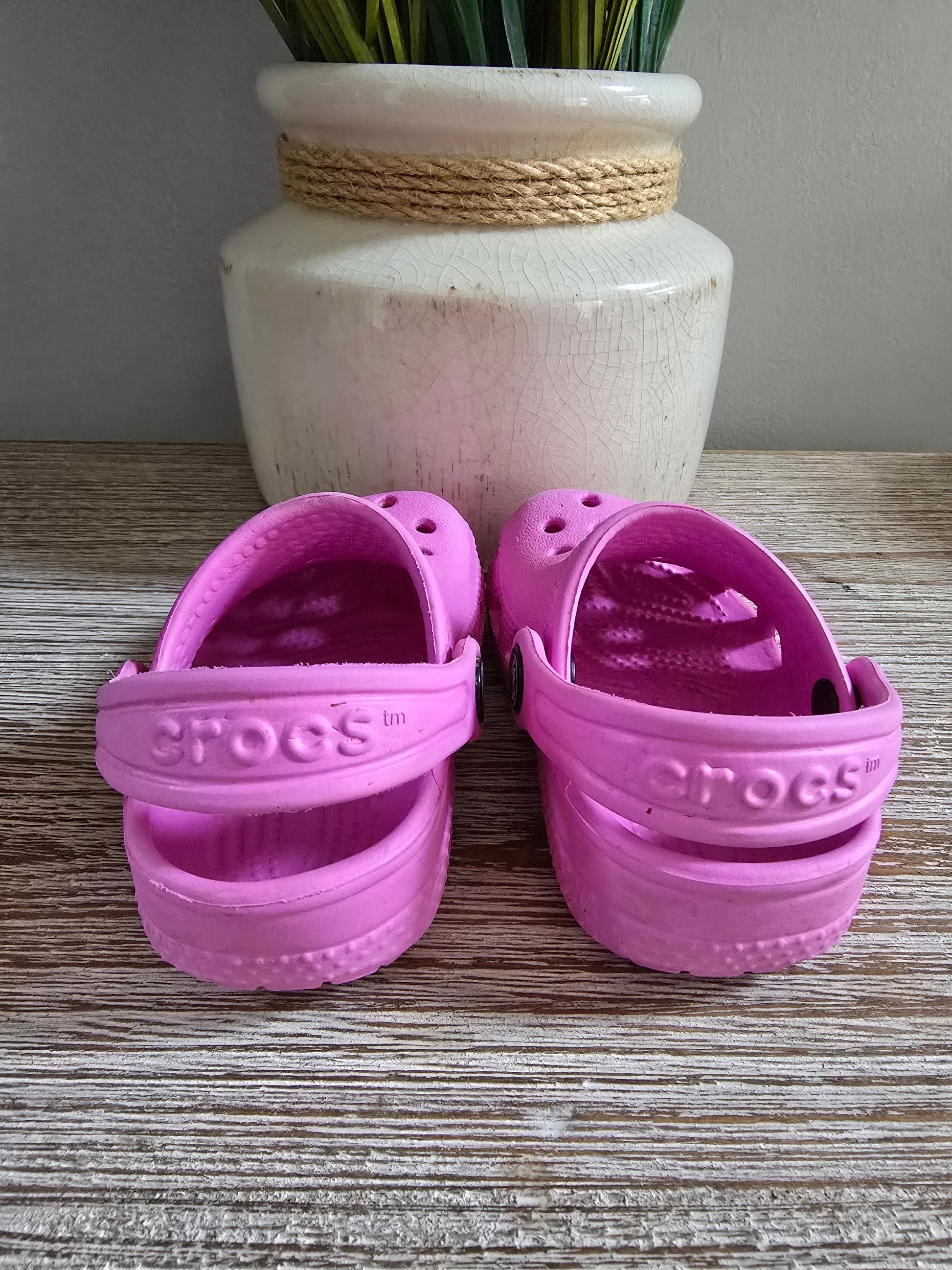 Step up your little one's style with these adorable Crocs in a lovely shade of pink! These size 2/3s are in excellent condition, making them the perfect comfortable and stylish choice for your toddler. So cute, you might even want a pair for yourself! 😉