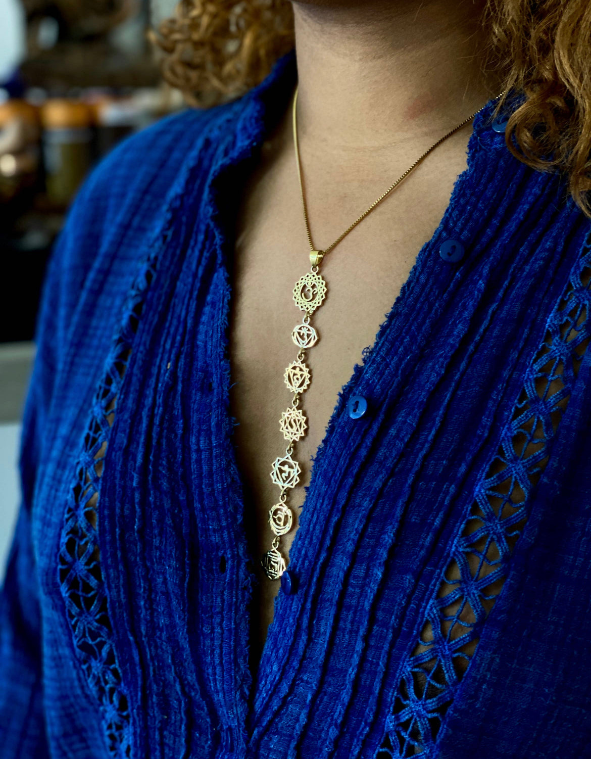 All 7 Chakras for balance and alignment. Charms on 19" snake chain. Made in India.