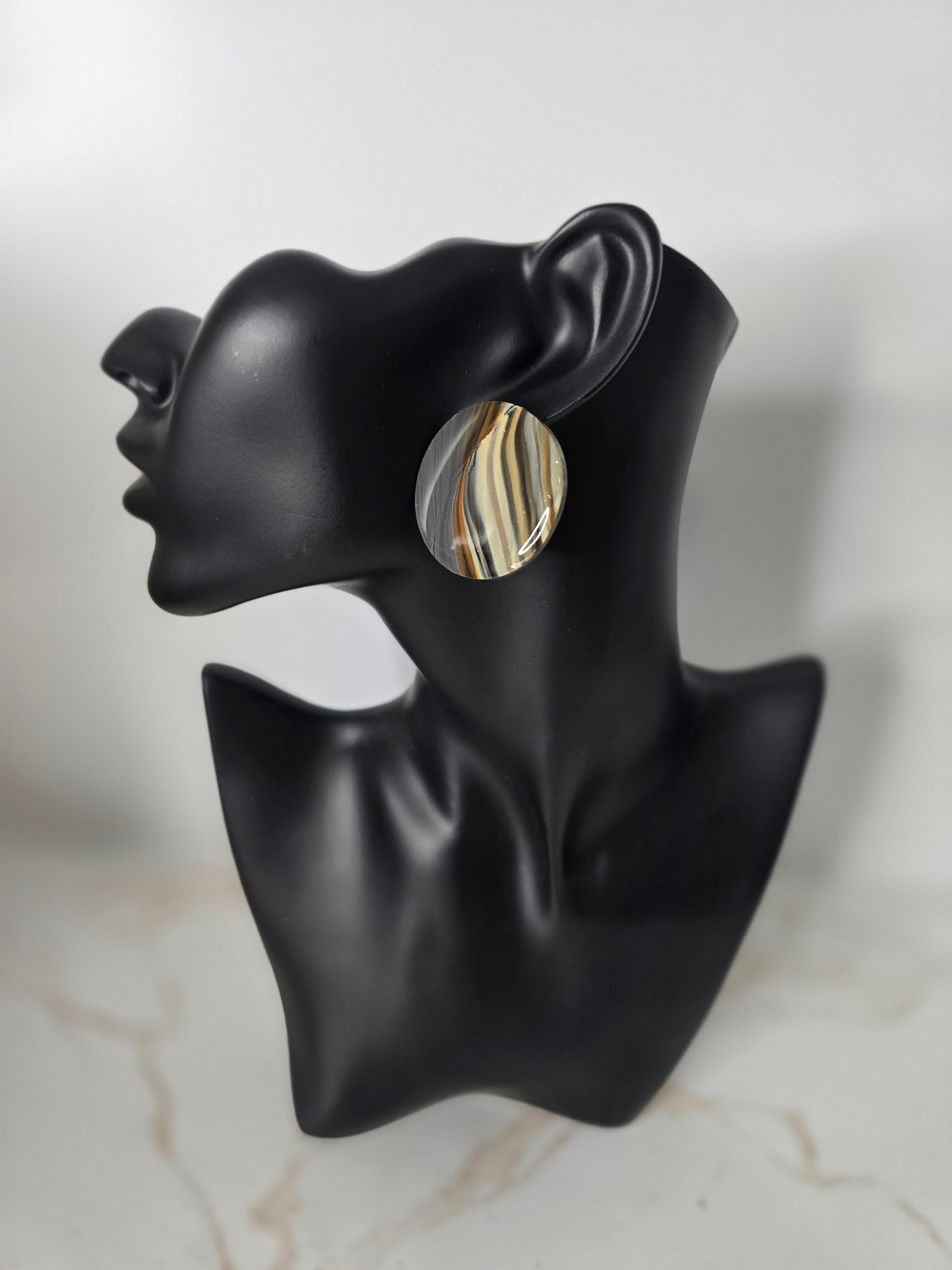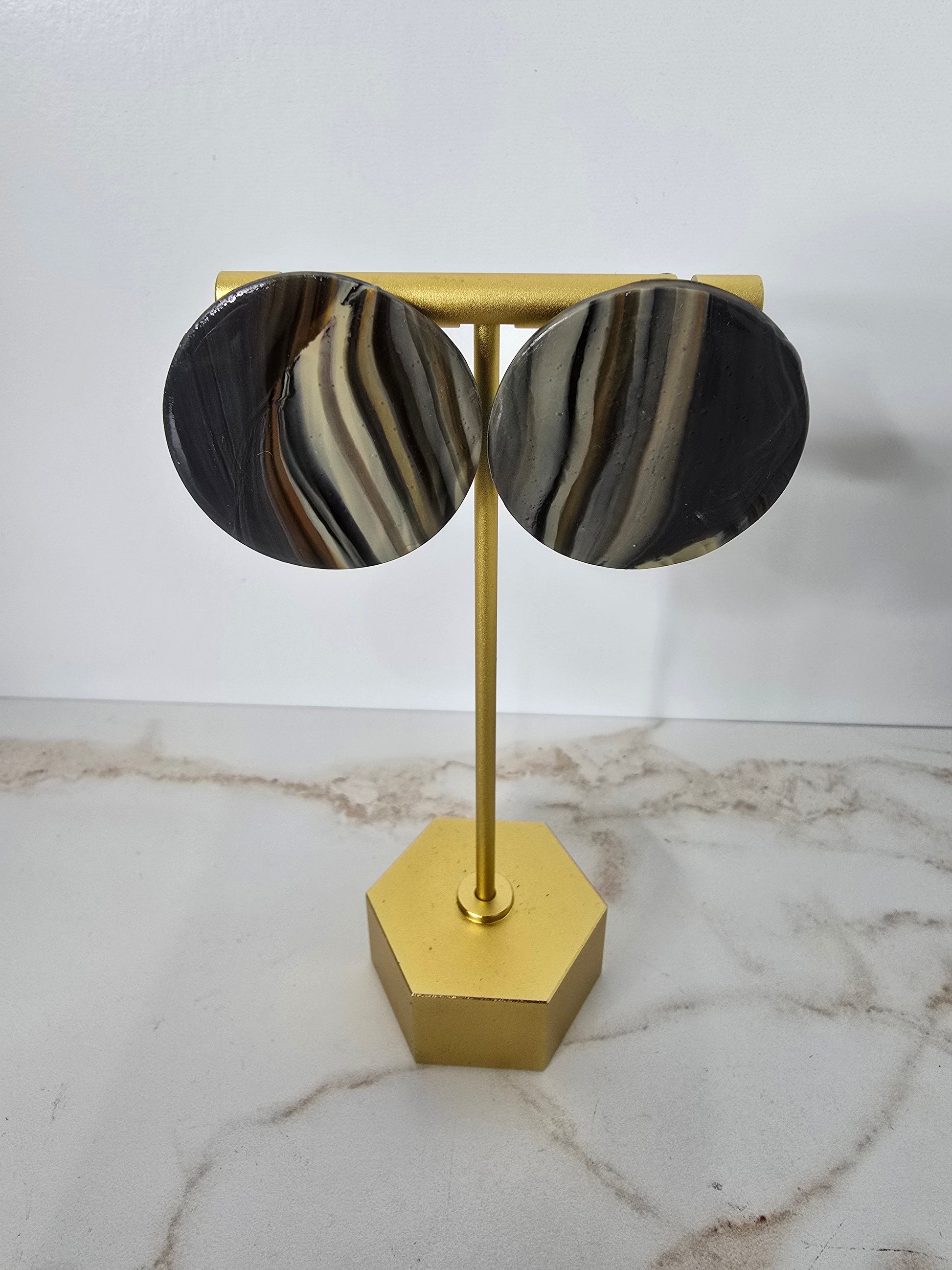 Earthtone Resin Handmade Button Earrings. These exquisite pieces are not just accessories, they are wearable art. Handcrafted with lightweight resin, they provide style without weighing you down. The perfect length of 1.5 inches ensures an elegant and comfortable fit. Elevate any outfit with these exclusive earrings.