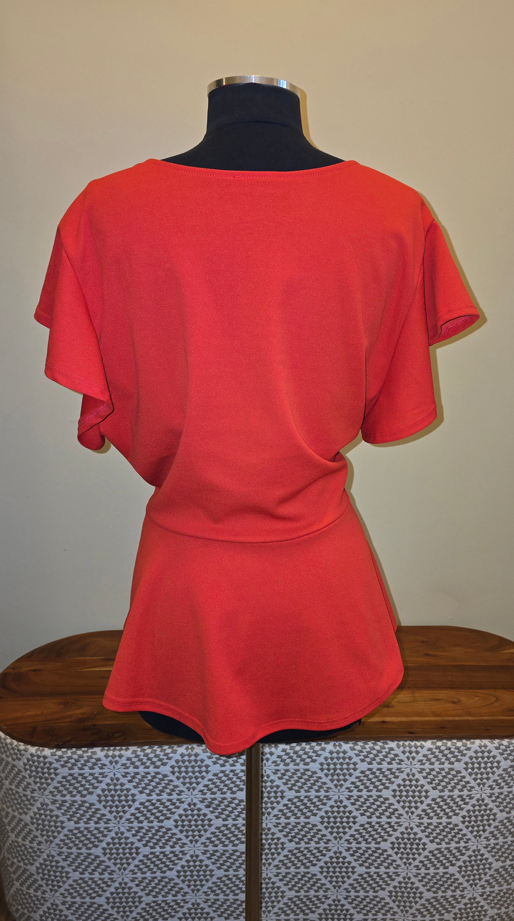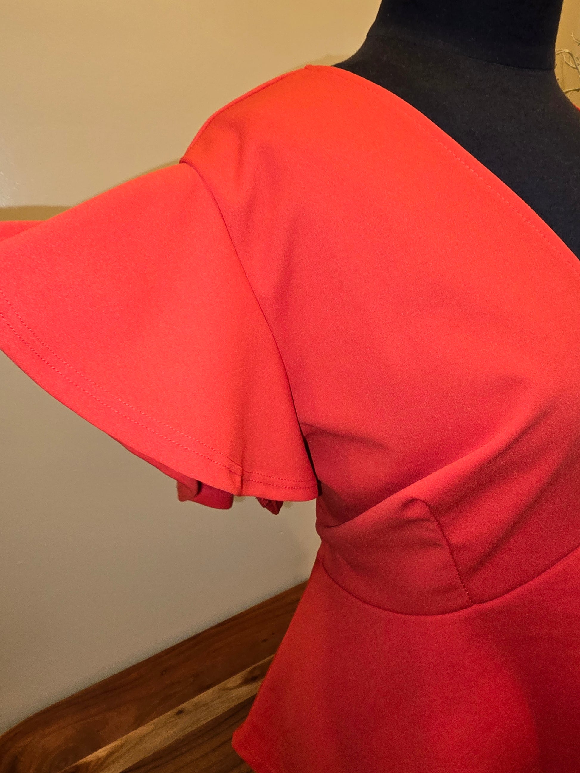 Fashion To Figure Peplum Blouse in size 3X. Featuring flattering flutter sleeves and fabric has stretch. 95% polyester & 5% spandex. This pre-loved top showcases your curves beautifully while providing comfort. Perfect for any occasion, it adds a touch of charm and femininity to your wardrobe.