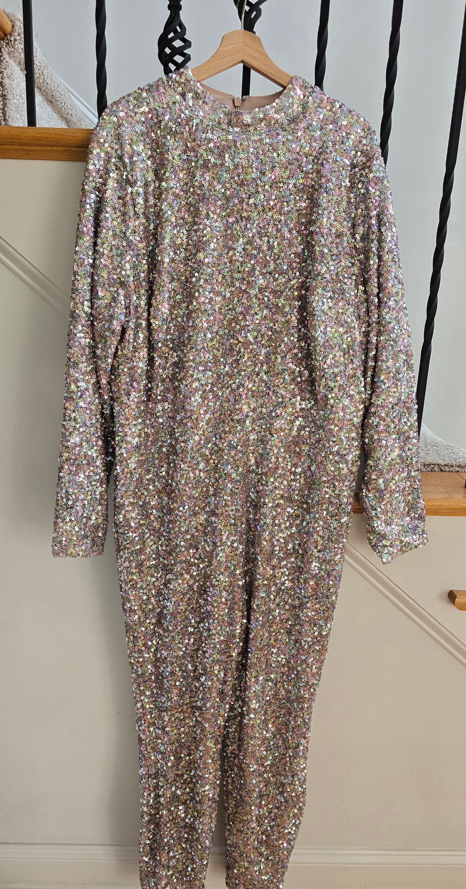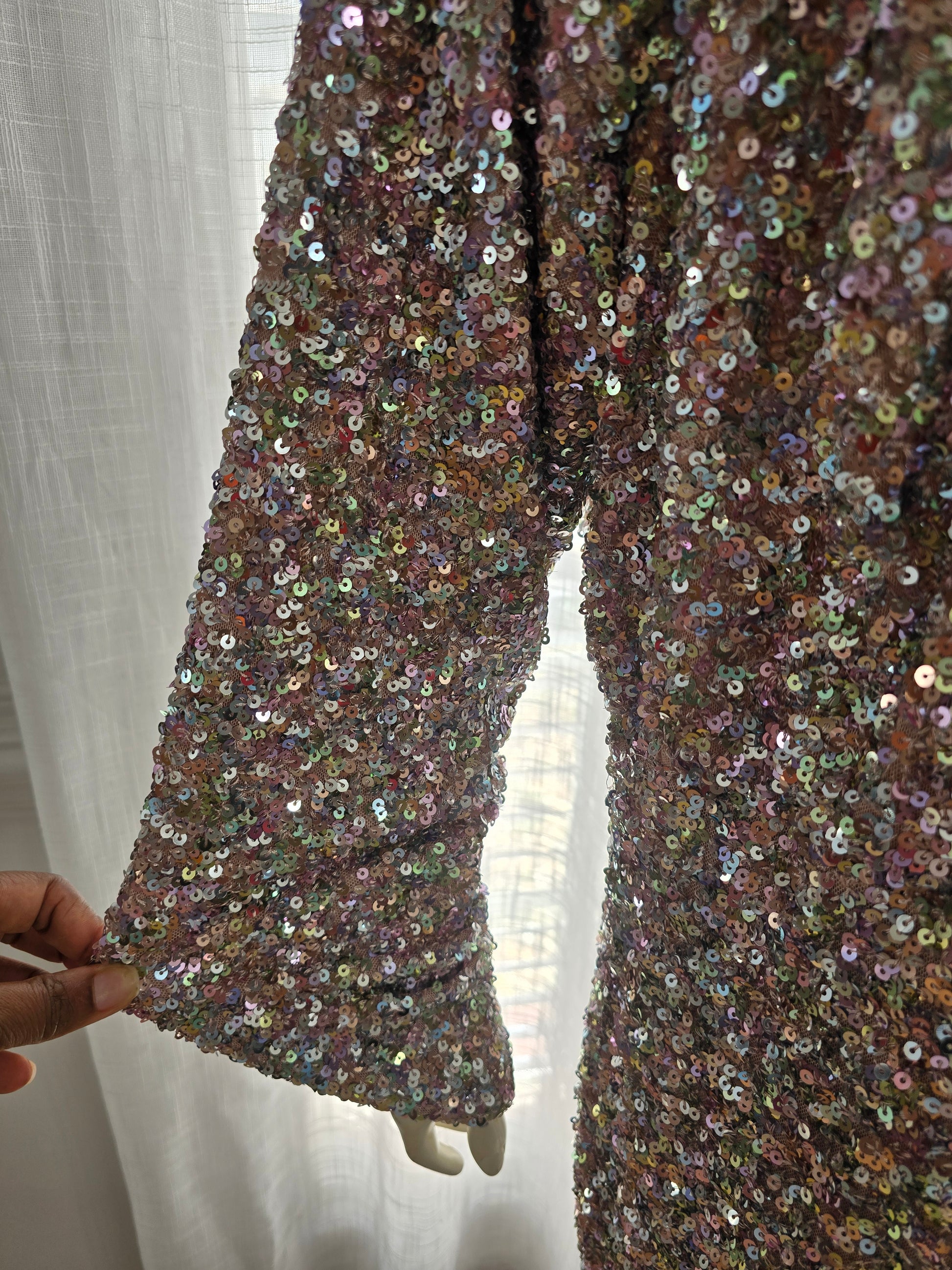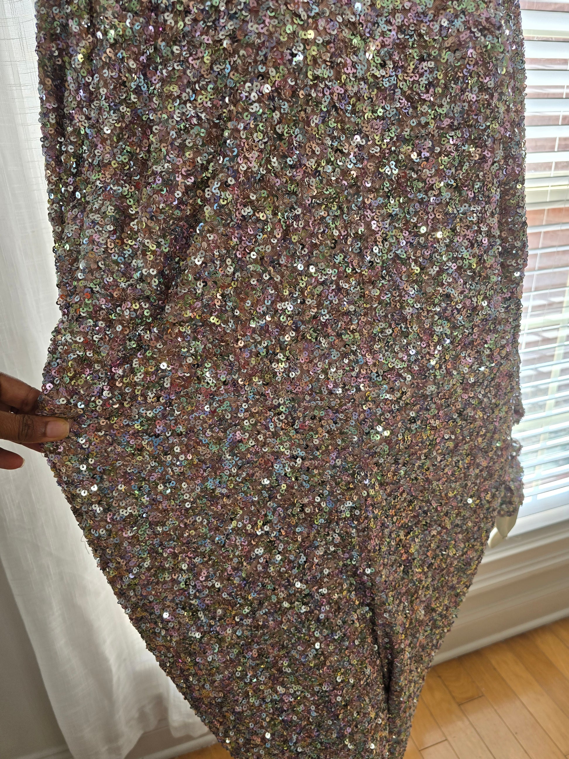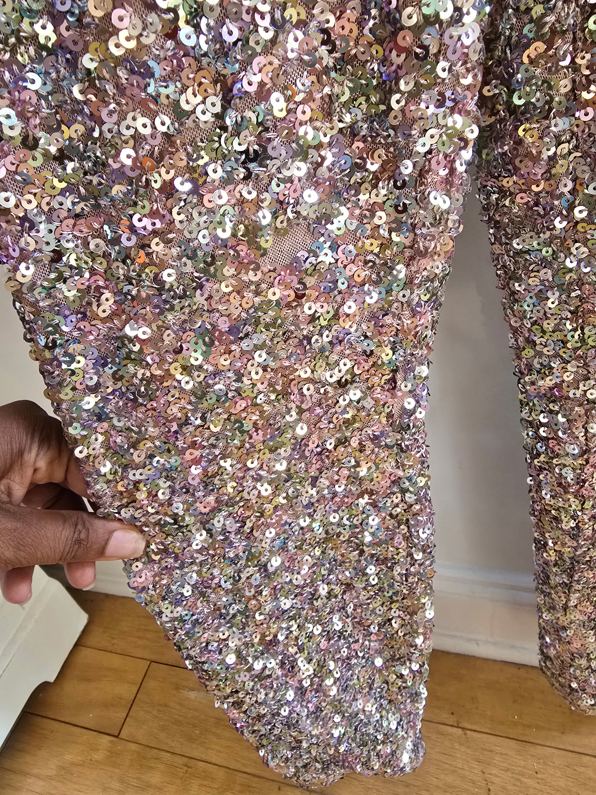 **Callout..as pictured, a few sequins are missing from the inner lower right leg**
