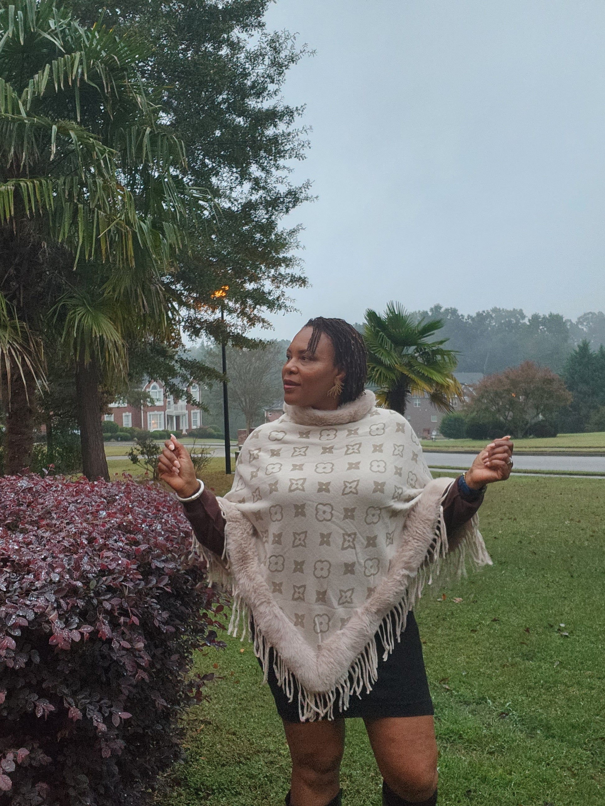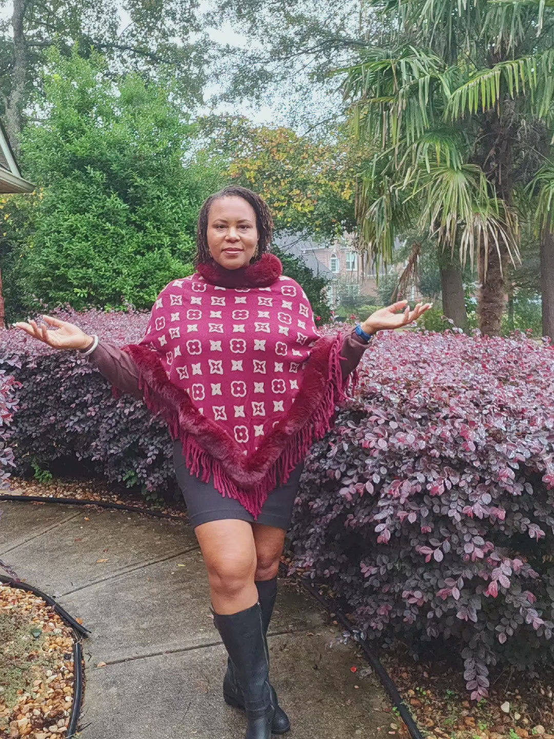 Wrap yourself in luxury with our Faux Fur Trimmed Black Cape. Soft and cozy with fringe, this cape will add a touch of sophistication to any outfit. The faux fur trim and stretchy fabric make it comfortable and stylish. One size fits all. Experience the ultimate in elegance and comfort. NWT.