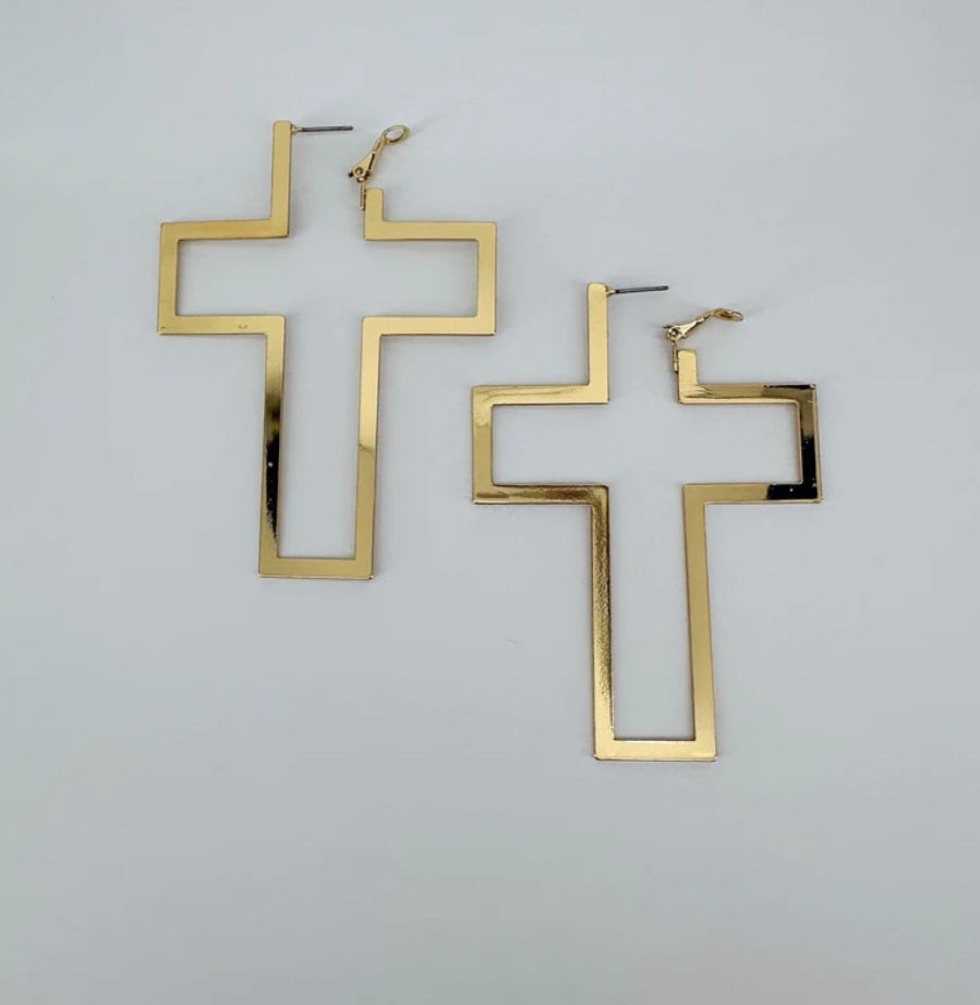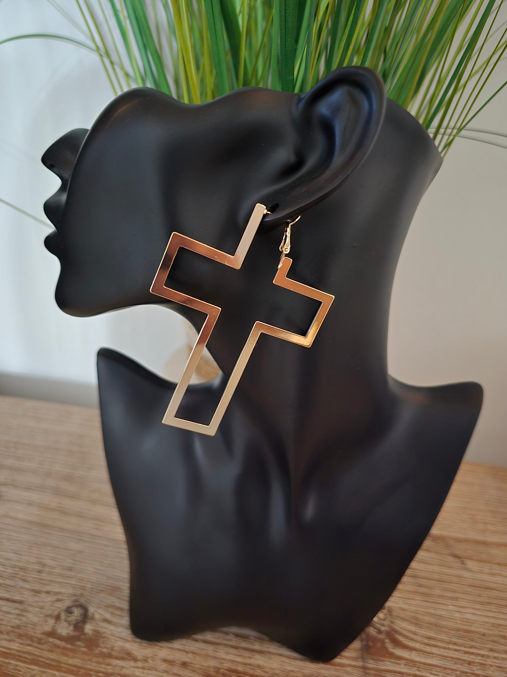 Add a touch of boldness with our Gold Cross Earrings. Lightweight yet eye-catching, these earrings are perfect for making a statement and elevating any outfit. Get ready to turn heads with this unique addition to your jewelry collection. Go ahead, make a statement!