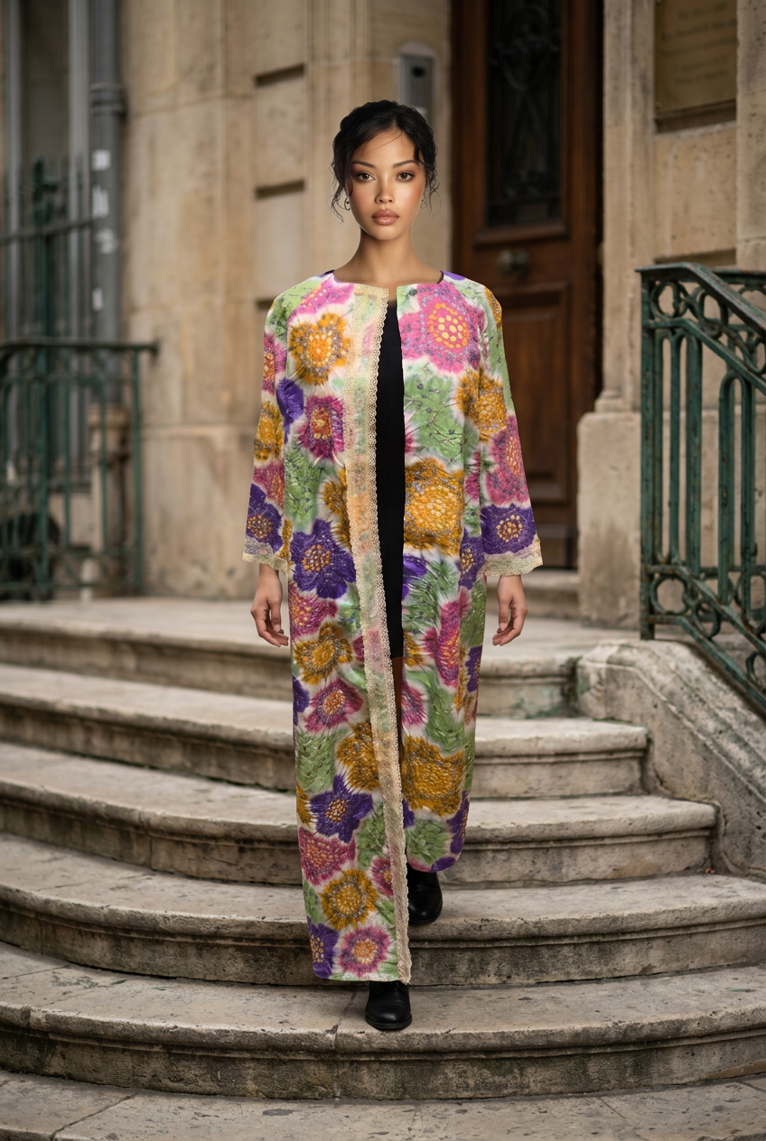 Gorgeous Tie Dye Duster/Tunic in size M. Its stunning handmade design adds a unique flair, adorned with lace accents. In excellent condition. Perfect for layering, this pre-loved piece combines style and comfort effortlessly, making it a versatile addition to any outfit.
