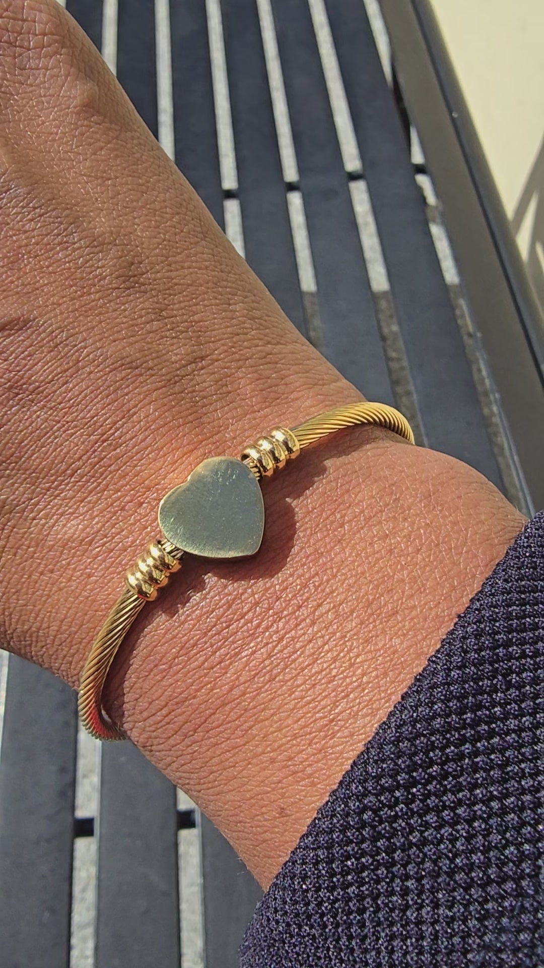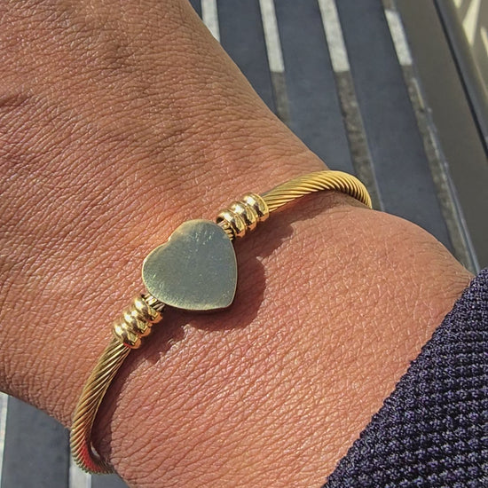 Indulge in timeless elegance with our Heart Stainless Steel Gold Cuff Bracelet. Crafted with a classic twisted cable design, it effortlessly adds a touch of sophistication to any outfit. Best for medium-sized wrists, it's the perfect accessory for a luxurious and exclusive look. Elevate your style with this exquisite piece.