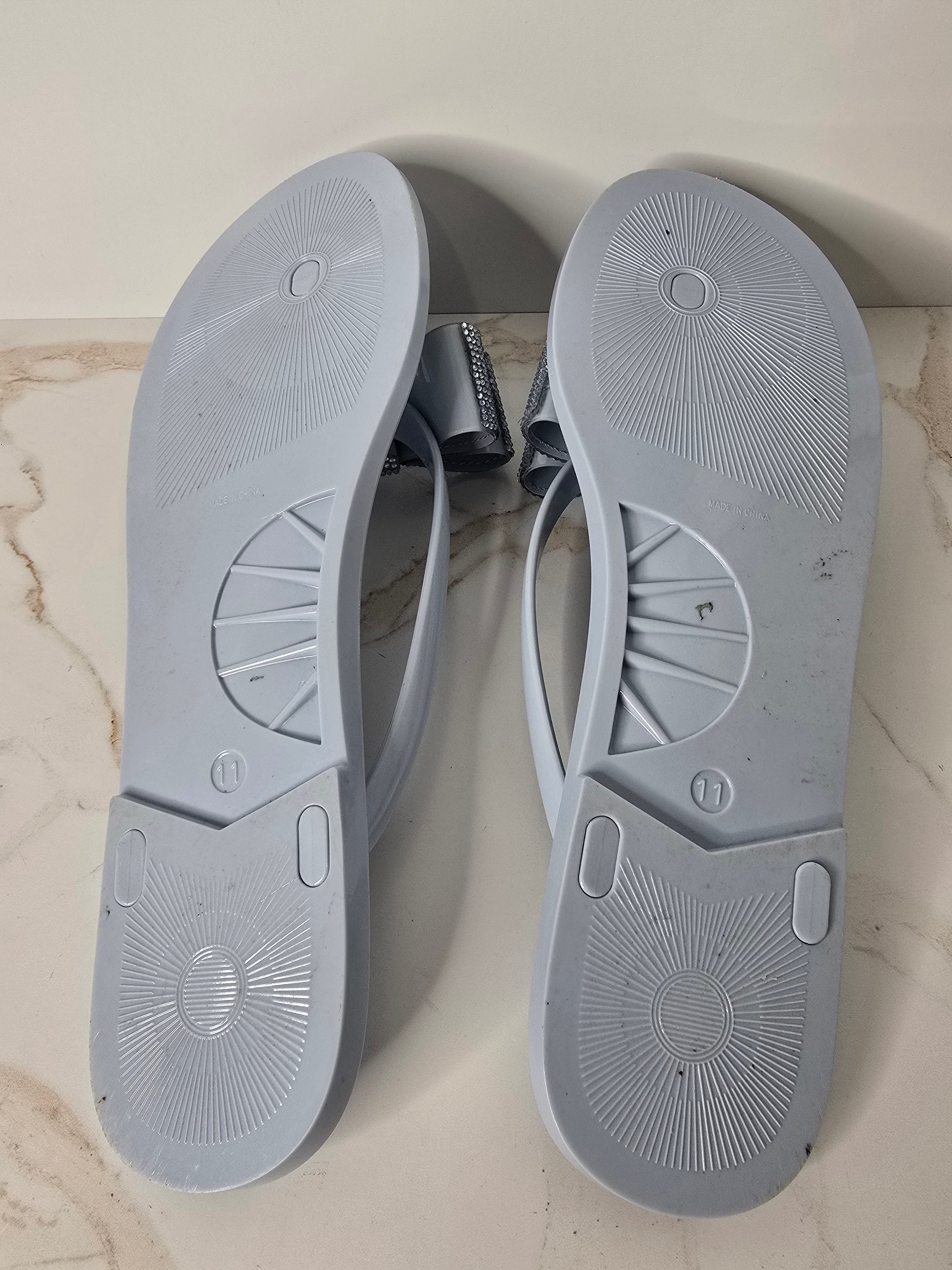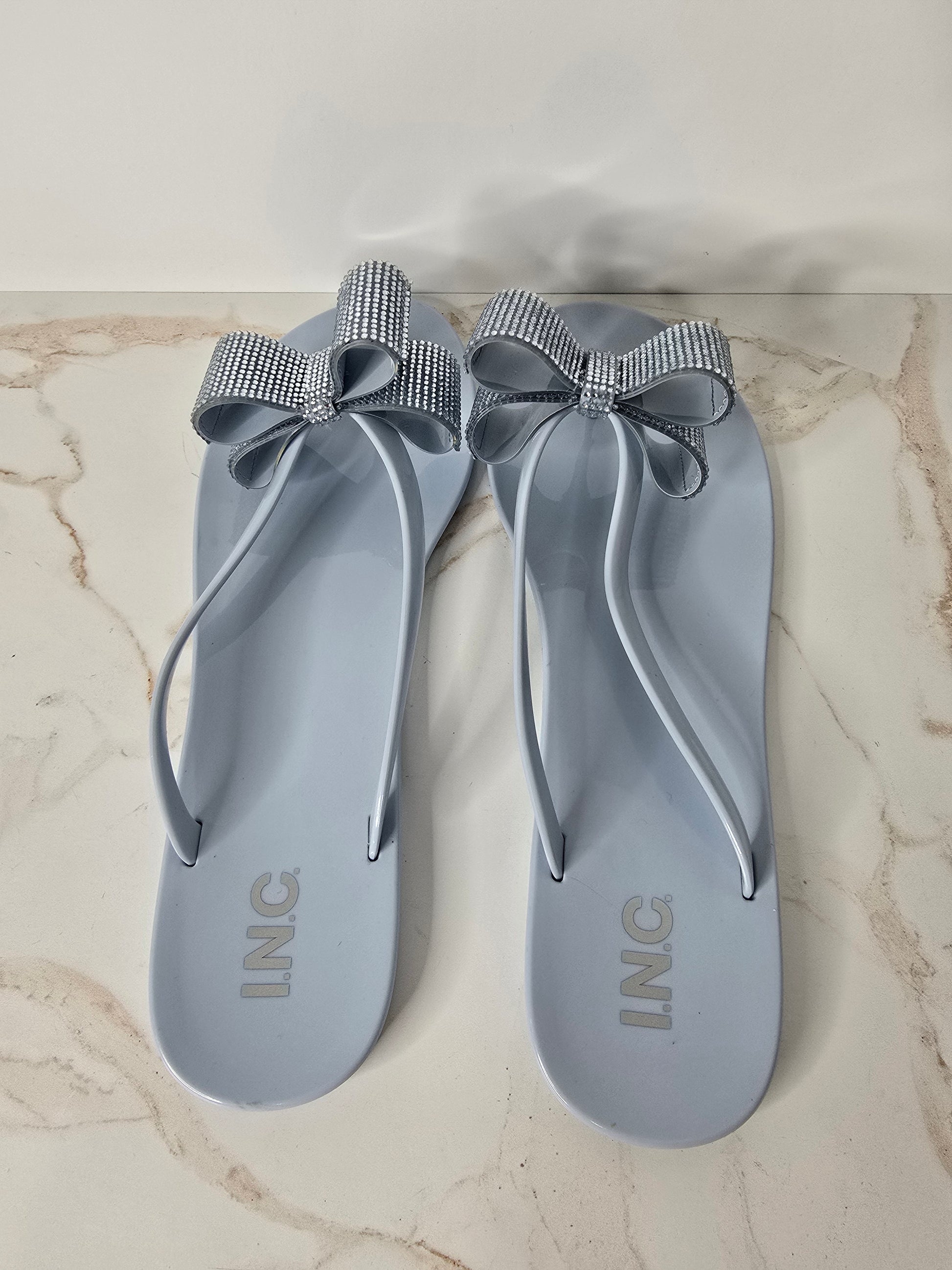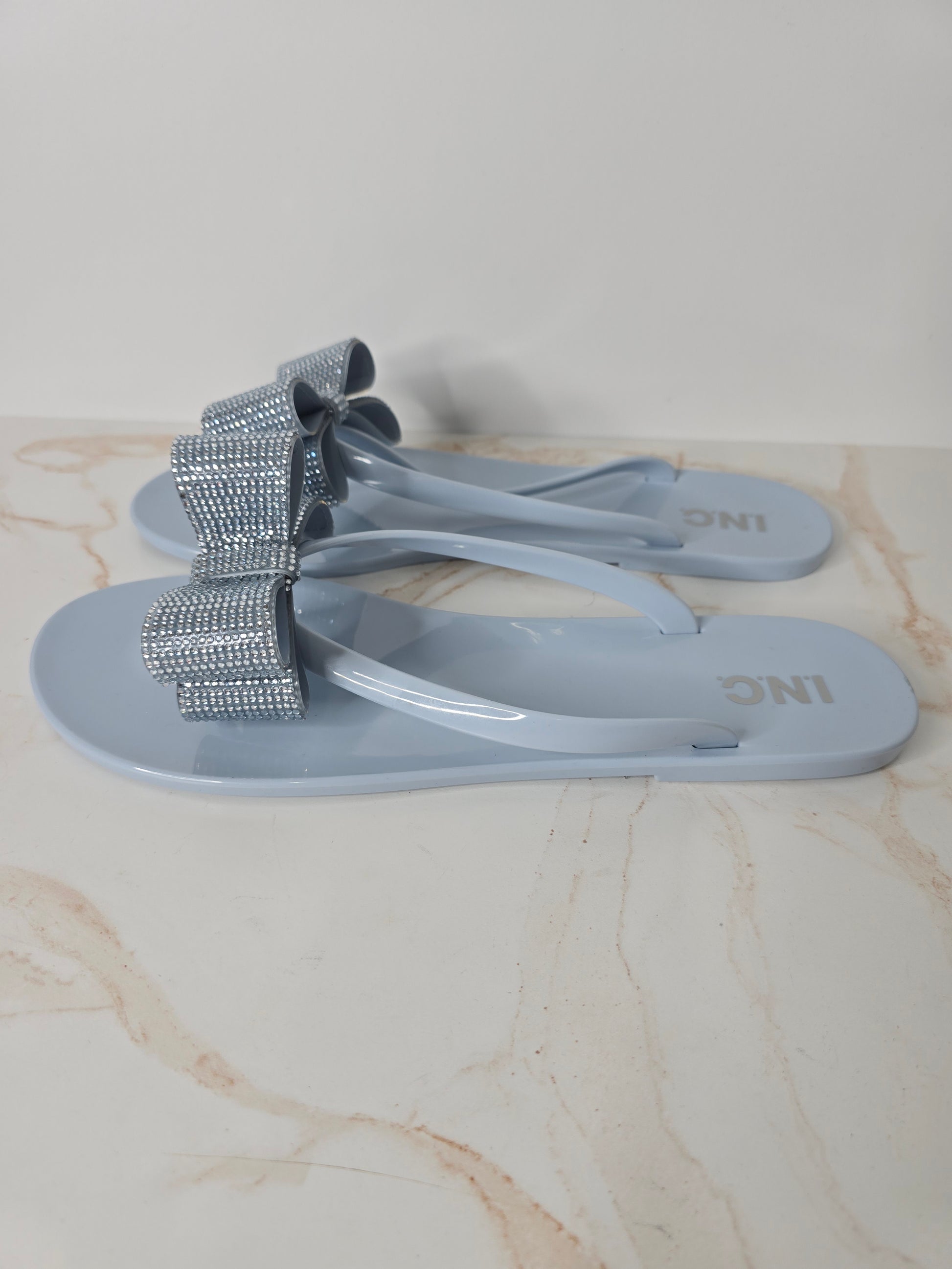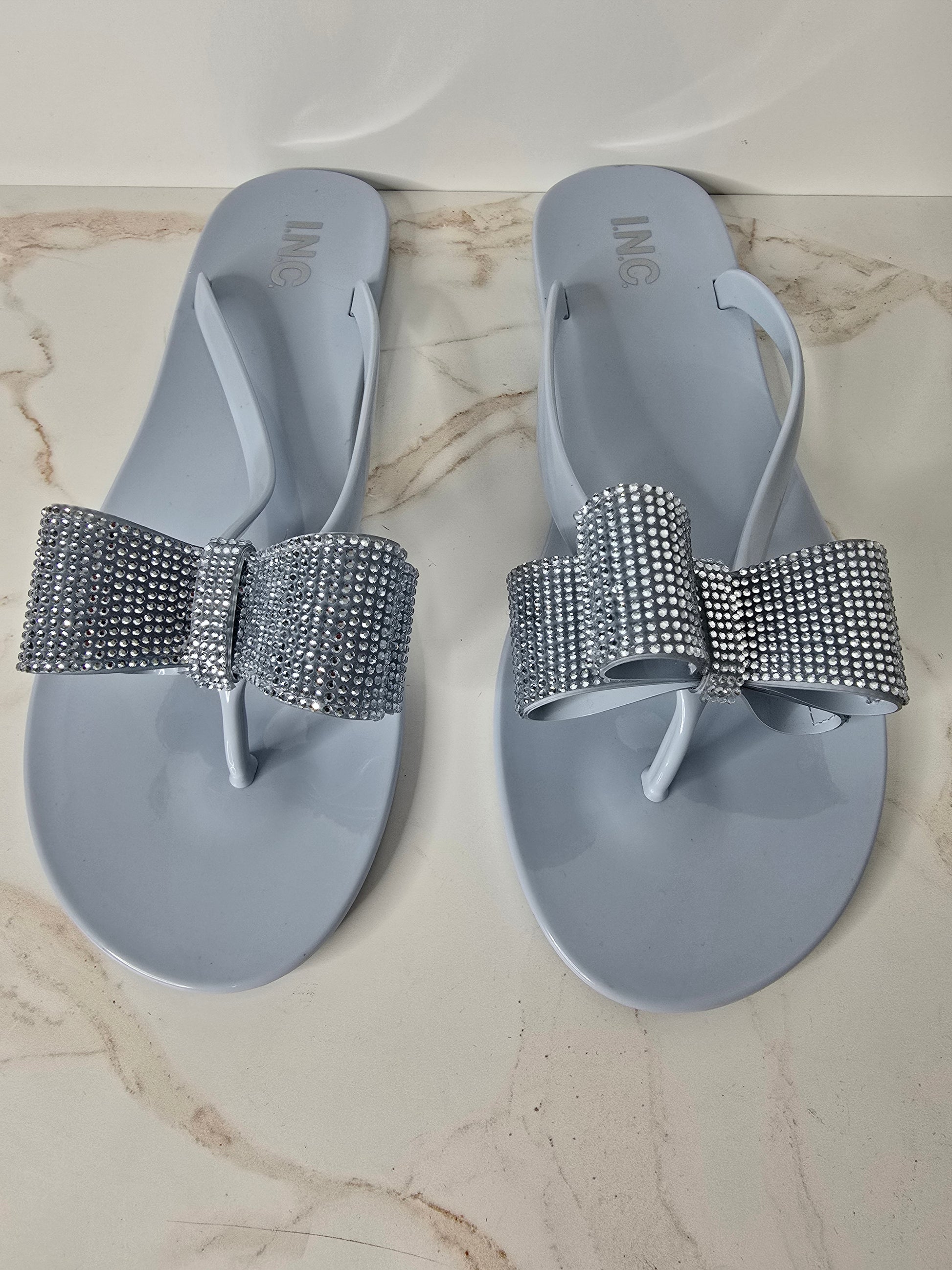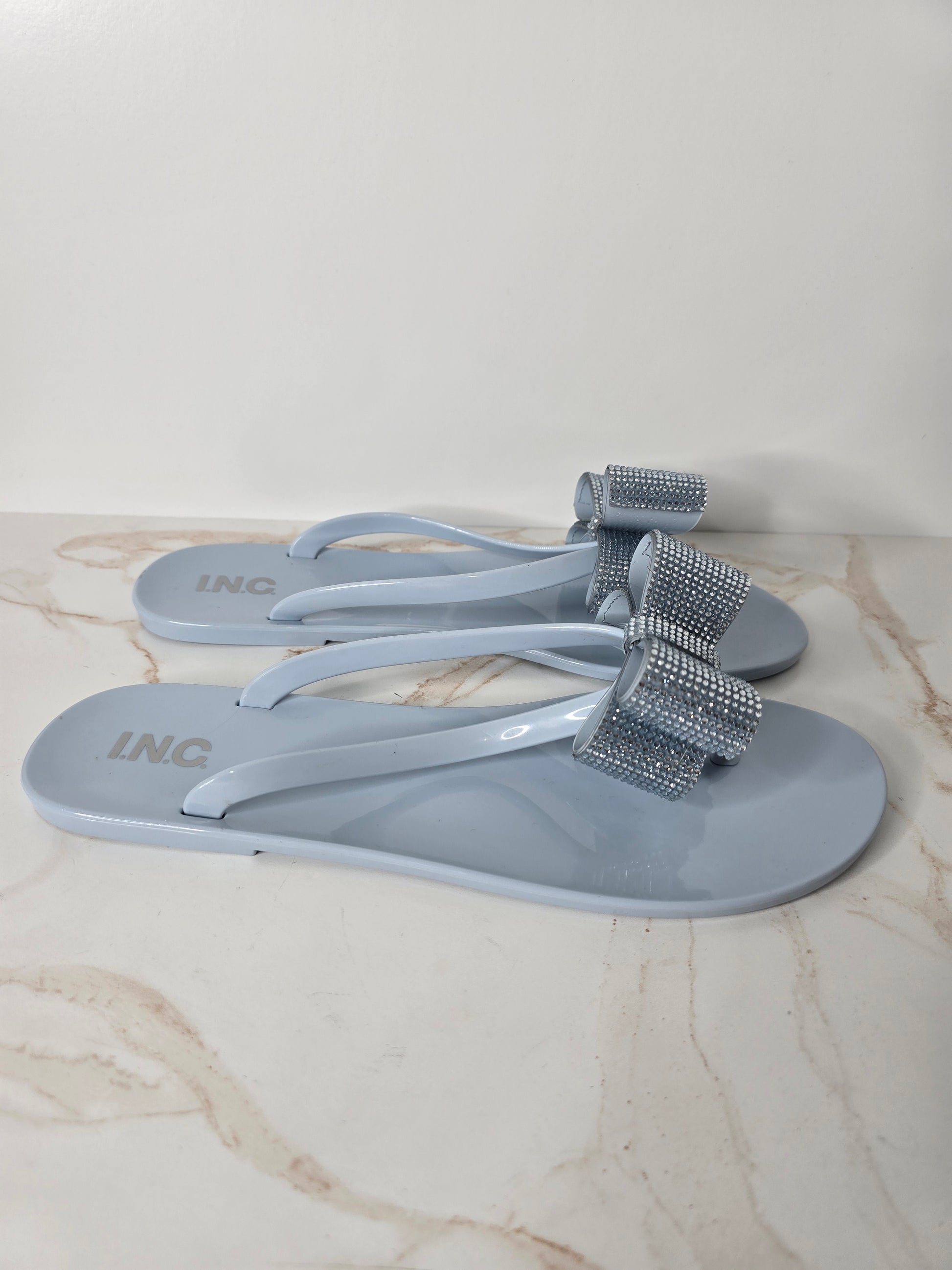 Get ready to put some sparkle in your step with these I.N.C. flat jelly sandals. Featuring a blinged out bow, these sandals will add a touch of glam to any outfit. Perfect for a day out on the town or a casual dinner, these sandals are sure to make a statement. Available in size 11. Worn once.