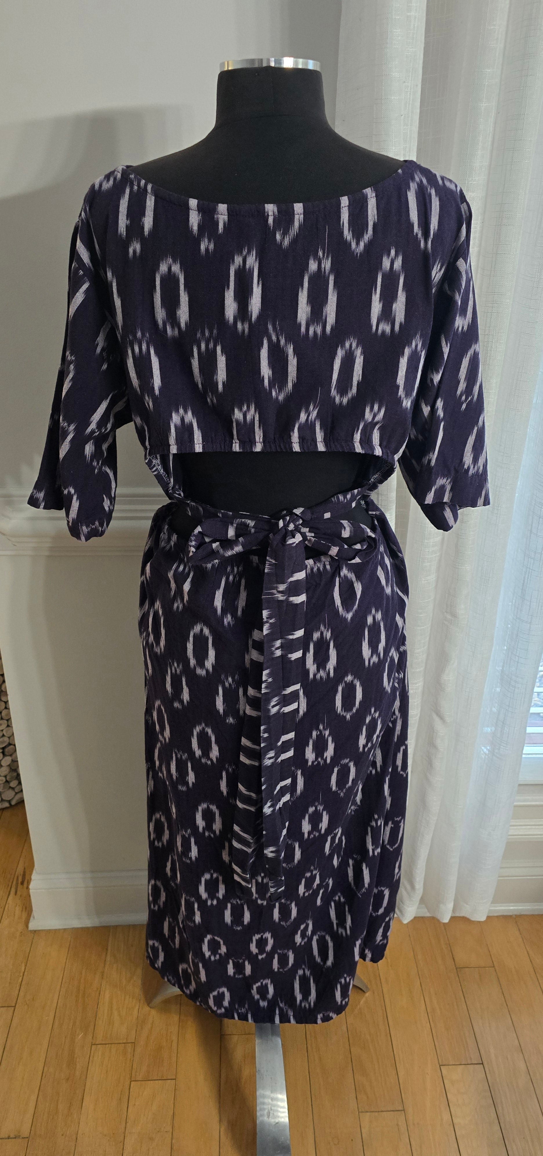 This pre-loved Indophilia Linen Dress is both stylish and comfortable. Made with a lower back cutout and attached belt that ties in the back, it is perfect for any occasion. The elastic waistband adds an extra touch of comfort. Enjoy the benefits of both fashion and comfort with this dress.