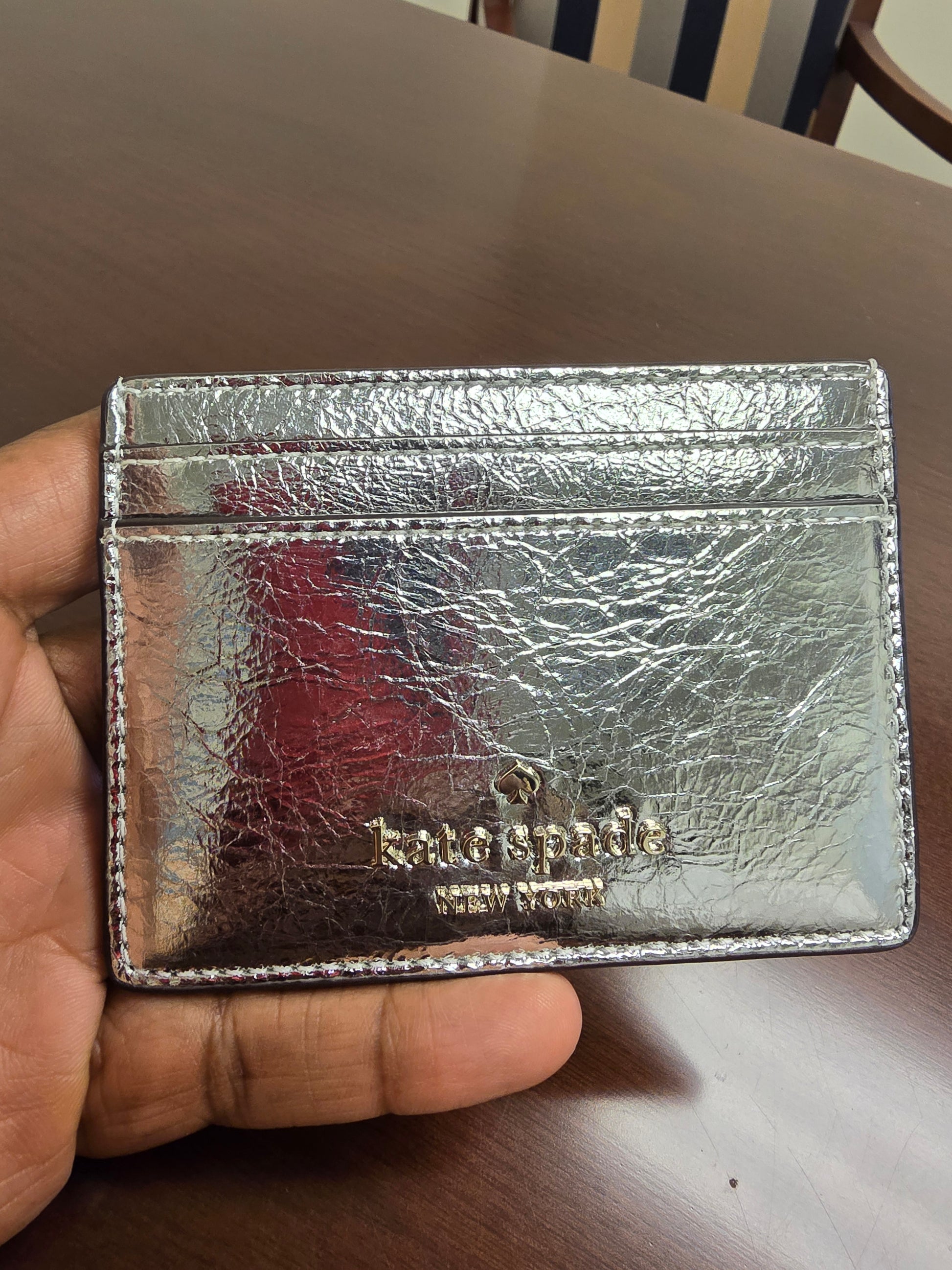 Kate Spade Madison Crinkle Metallic Small Slim Card Holder