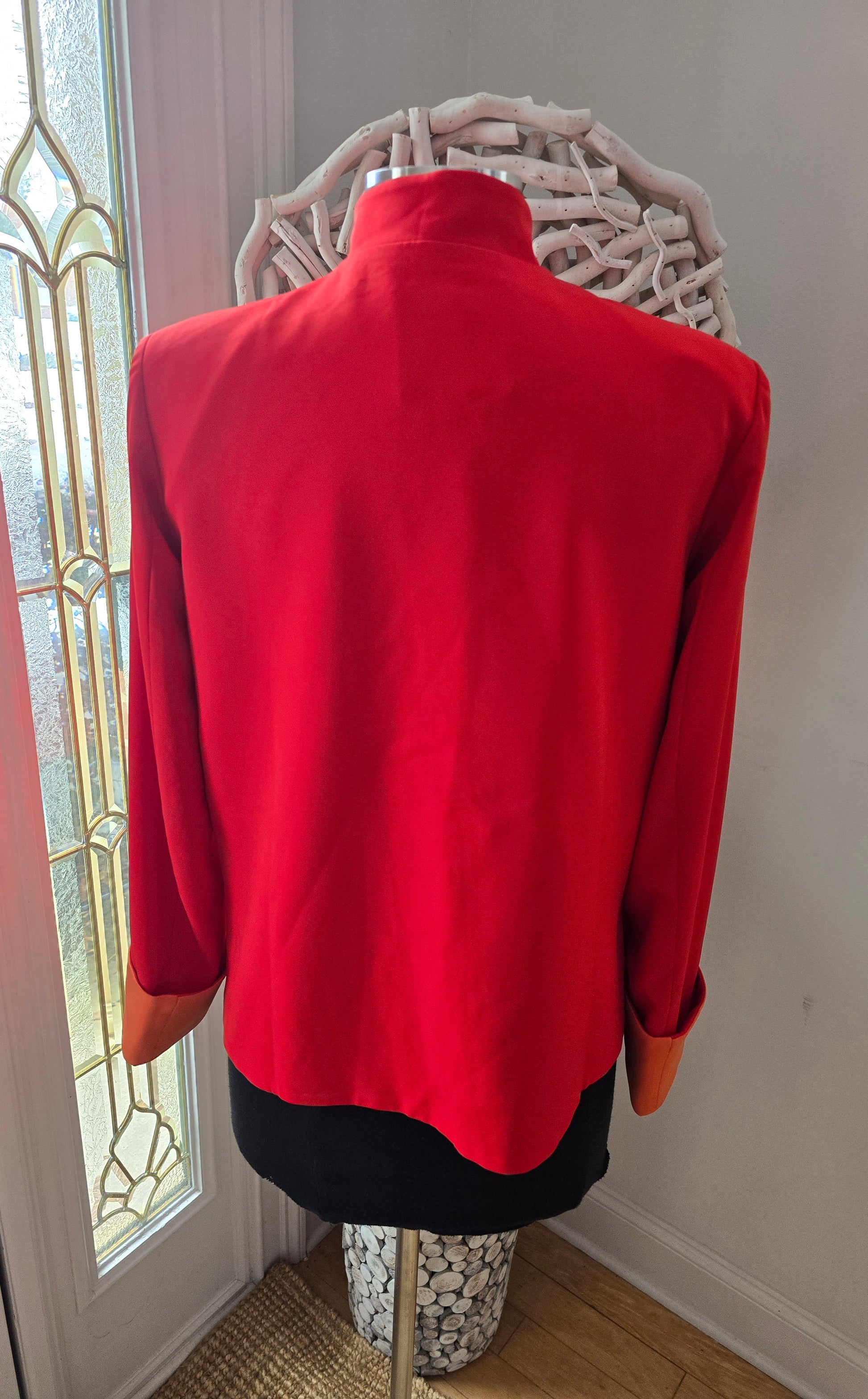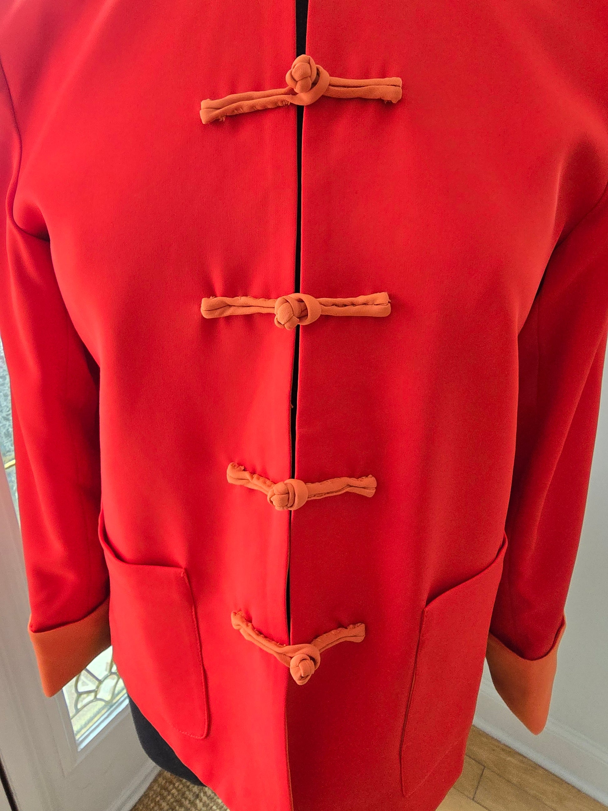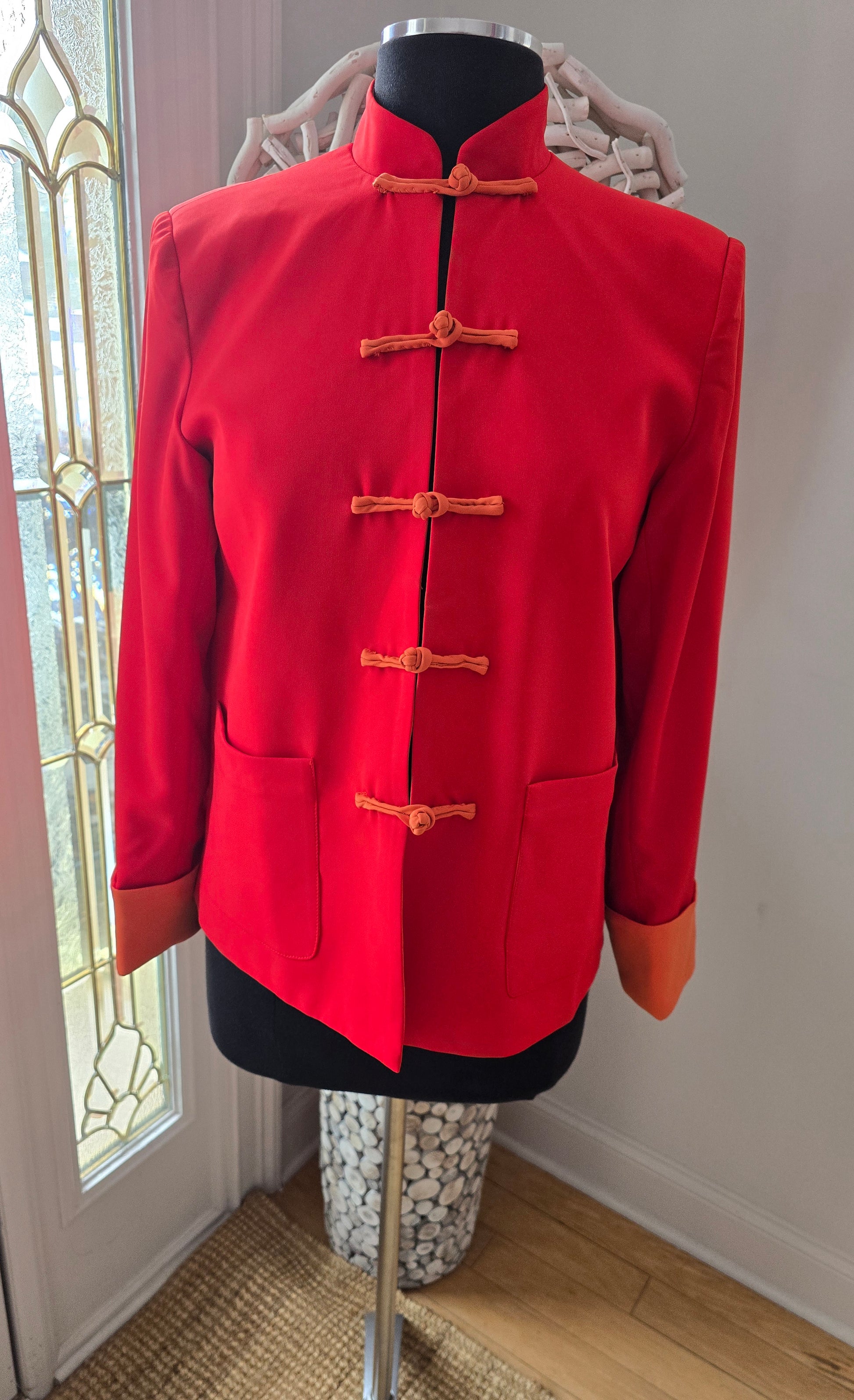 Indulge in elegance and sophistication with our Kuijia Asian Jacket Sz M. Handcrafted with precision, this gorgeous jacket boasts a knot closure and practical pockets for your convenience. Has a split on each side. Elevate your style and embrace the luxuriousness of this well-made piece. Pre-loved. PTP 19".