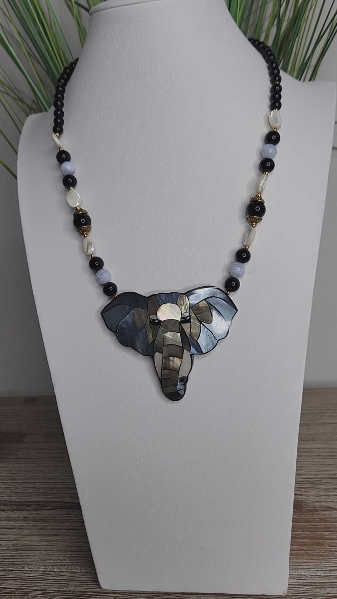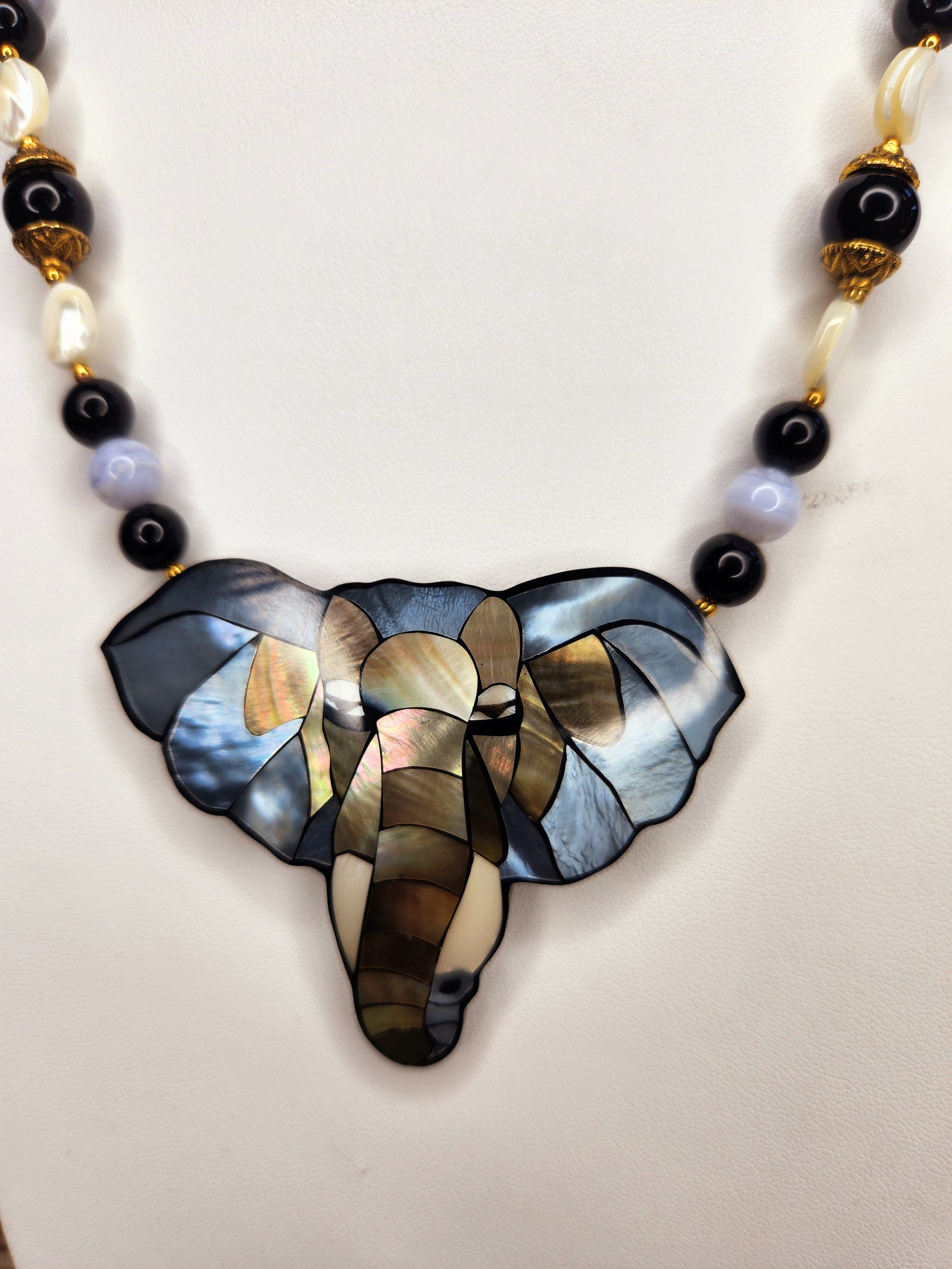 Lee Sands Mother of Pearl Inlay Elephant Necklace