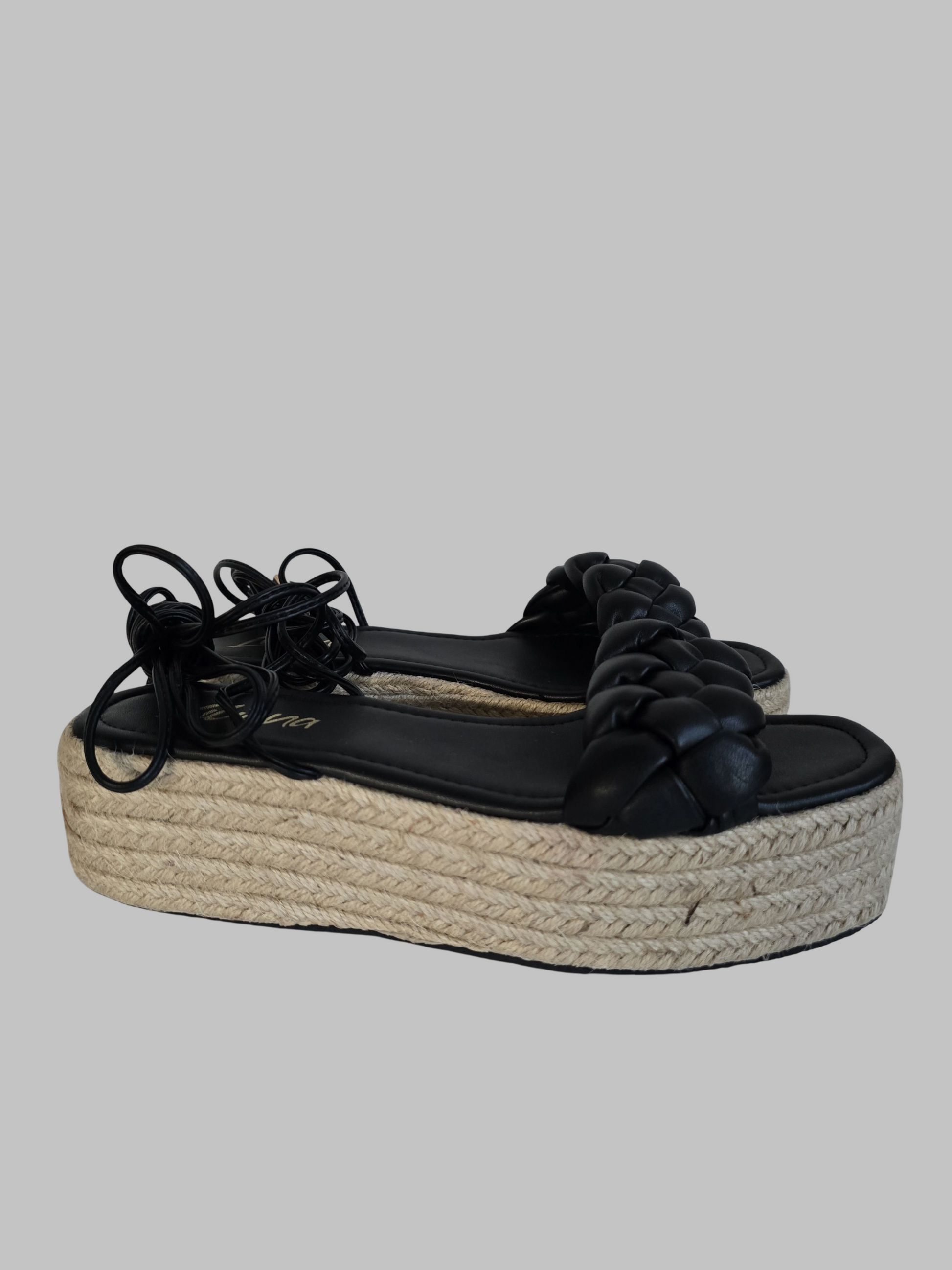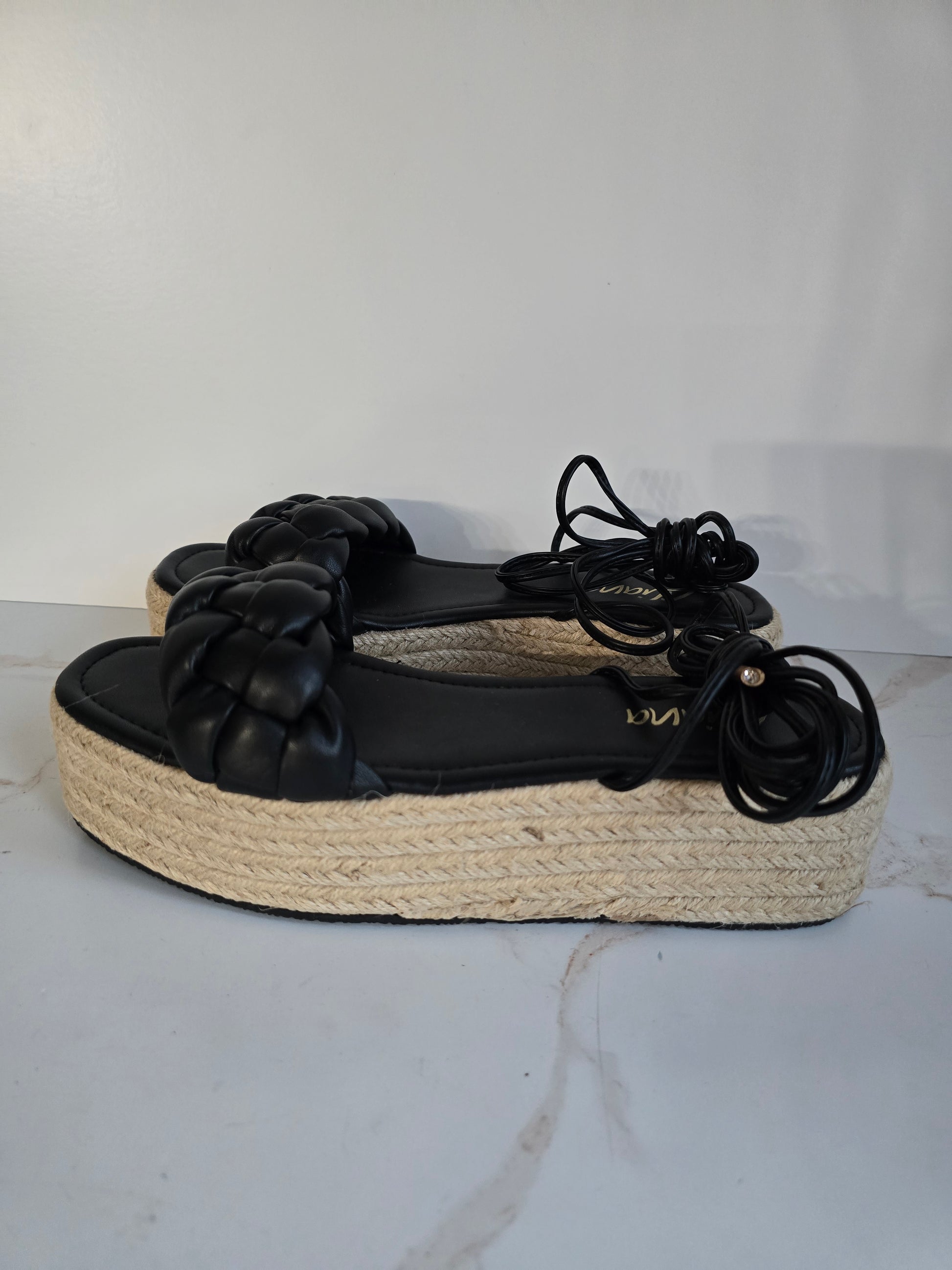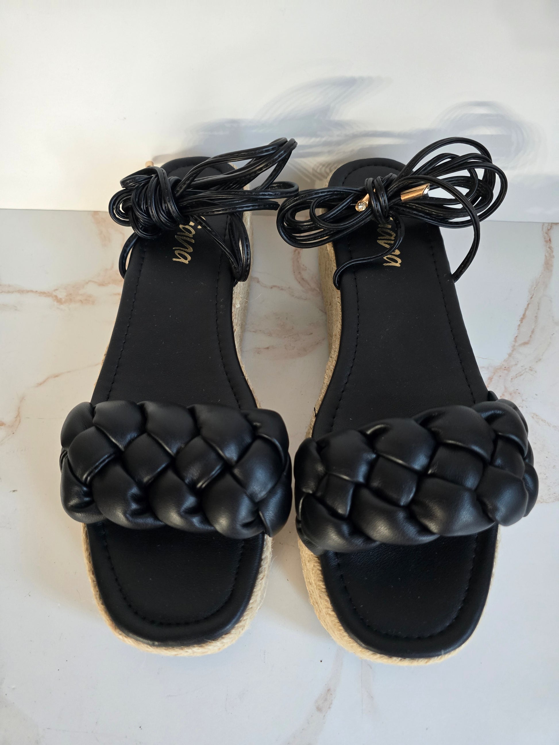 Take your style to new heights with the Liliana Braided Lace-Up Sandal! Elevate your look with a daring platform heel height of 2" and add a touch of boldness with the faux leather material. Perfect for adding an edge to any outfit. Step out of your comfort zone and make a statement! NWOB.