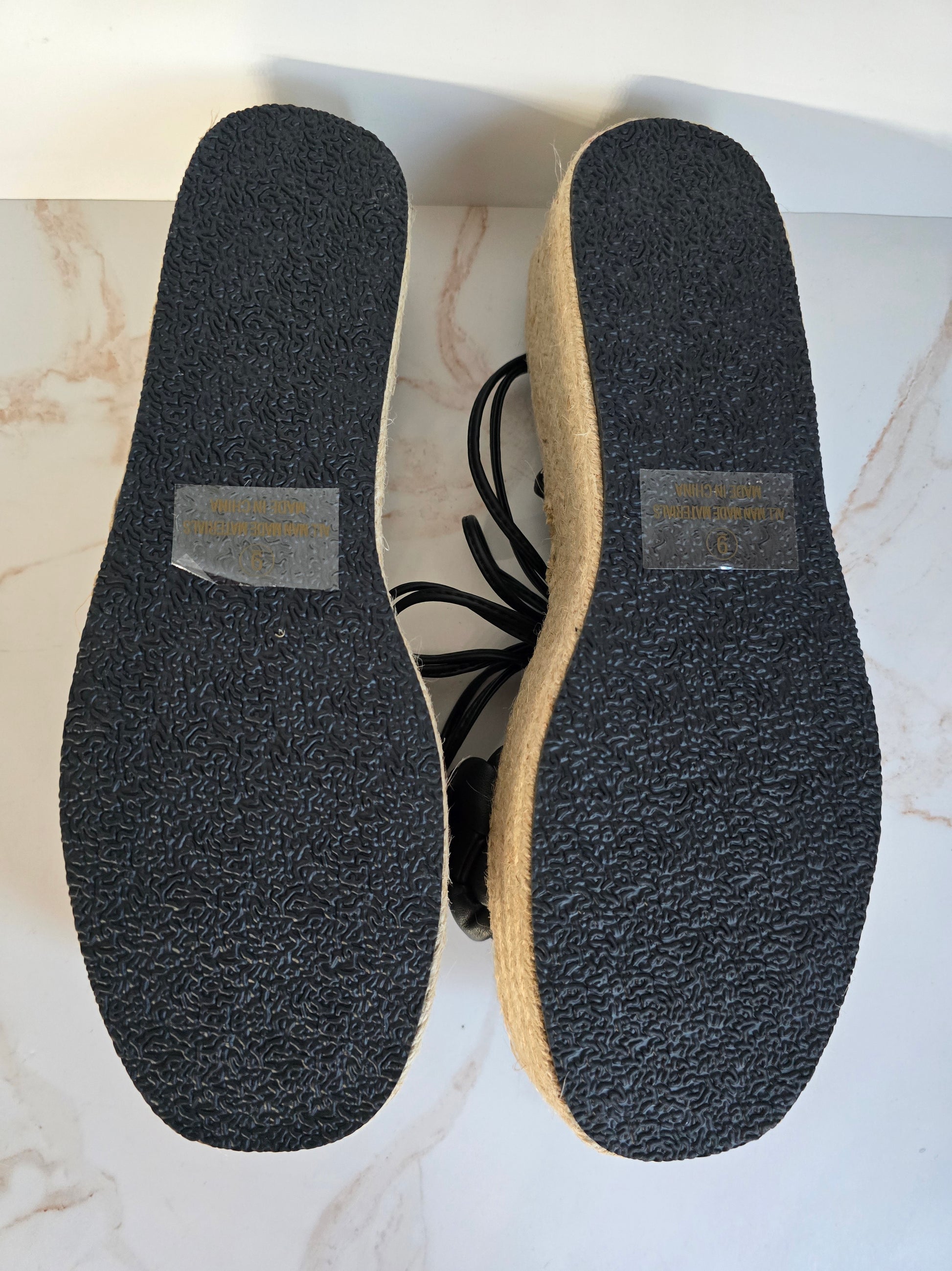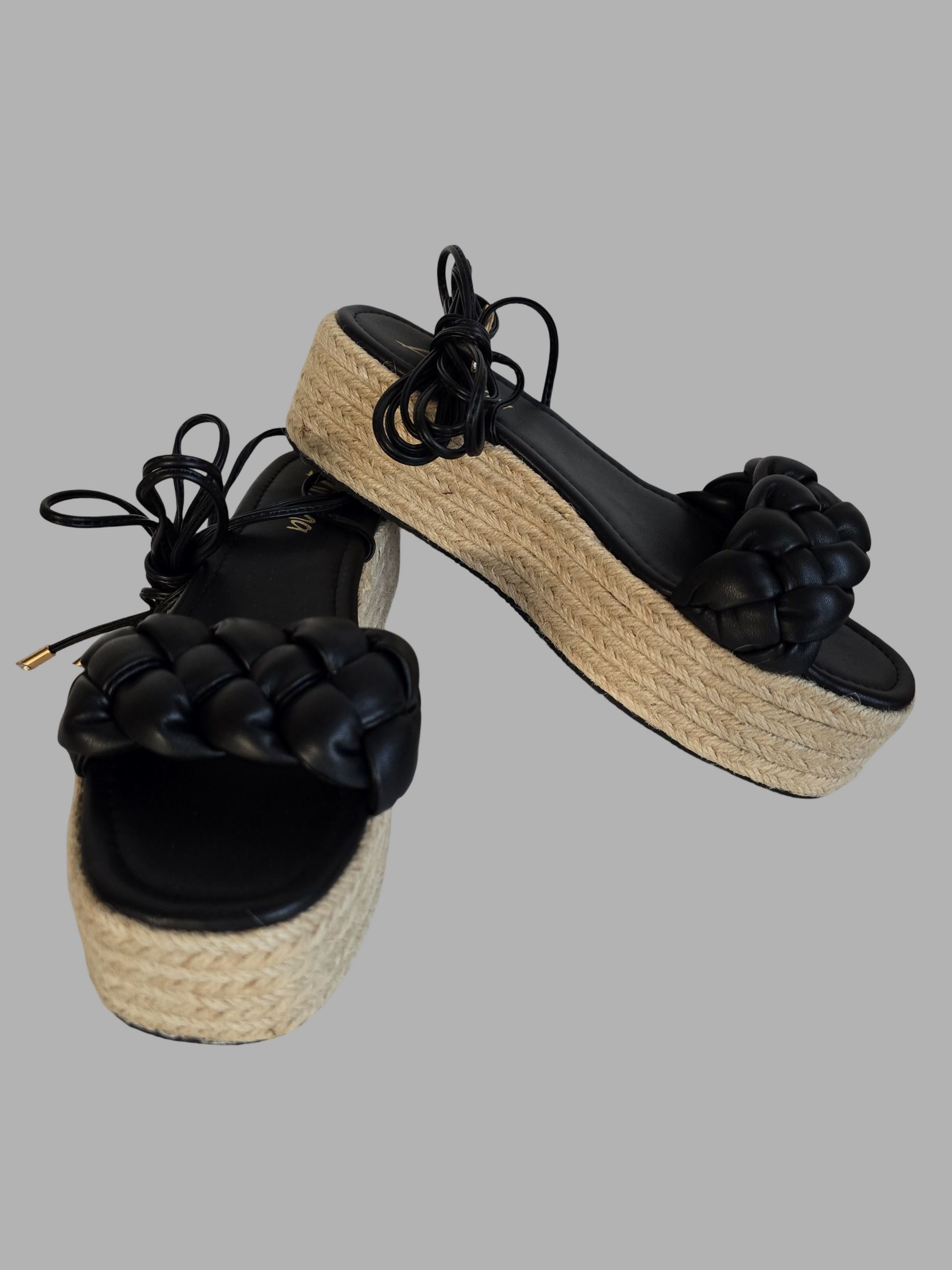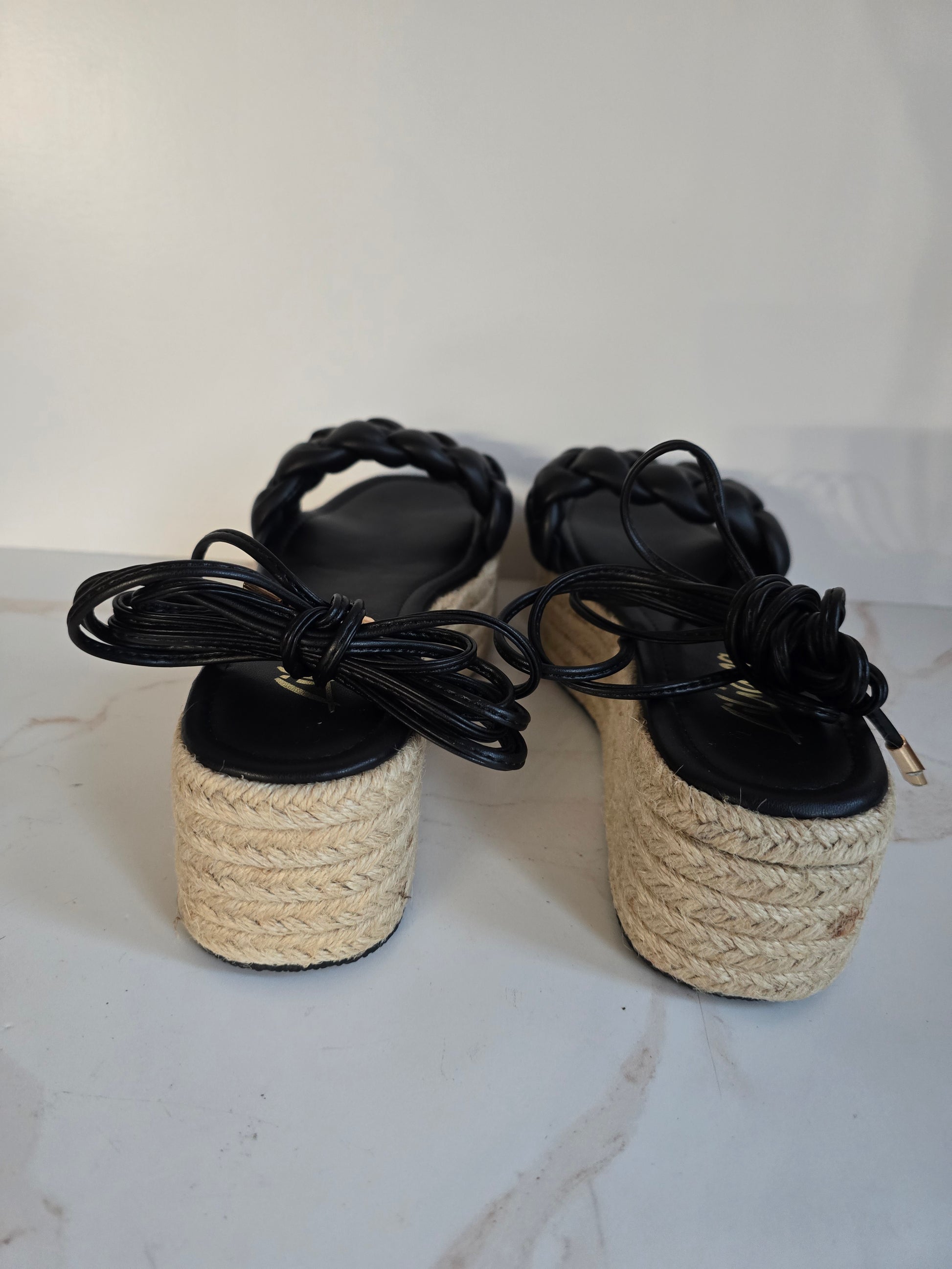 Take your style to new heights with the Liliana Braided Lace-Up Sandal! Elevate your look with a daring platform heel height of 2" and add a touch of boldness with the faux leather material. Perfect for adding an edge to any outfit. Step out of your comfort zone and make a statement! NWOB.