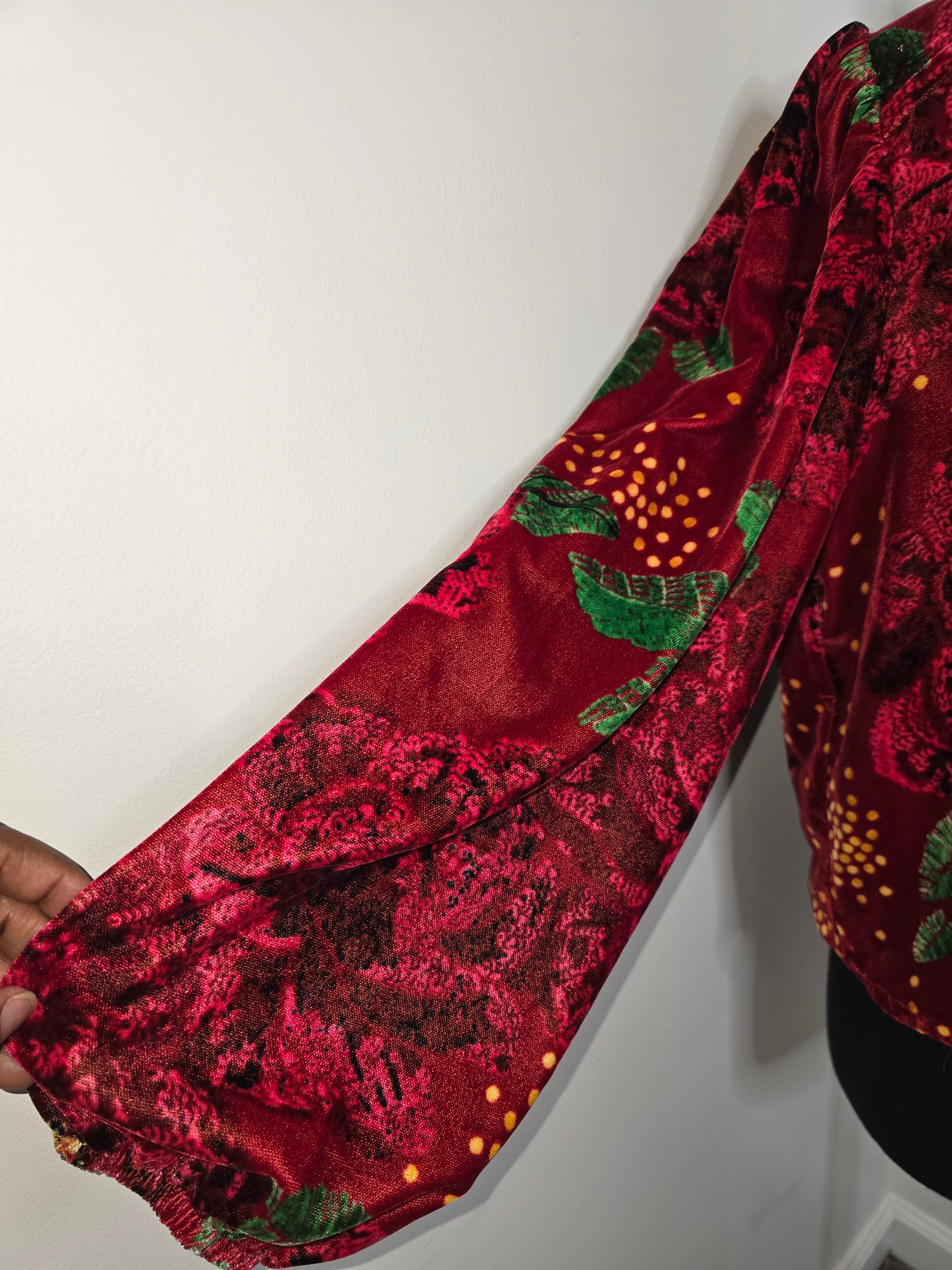 Maison d'Amelie Velvet Balloon Sleeve Floral Blouse Sz L