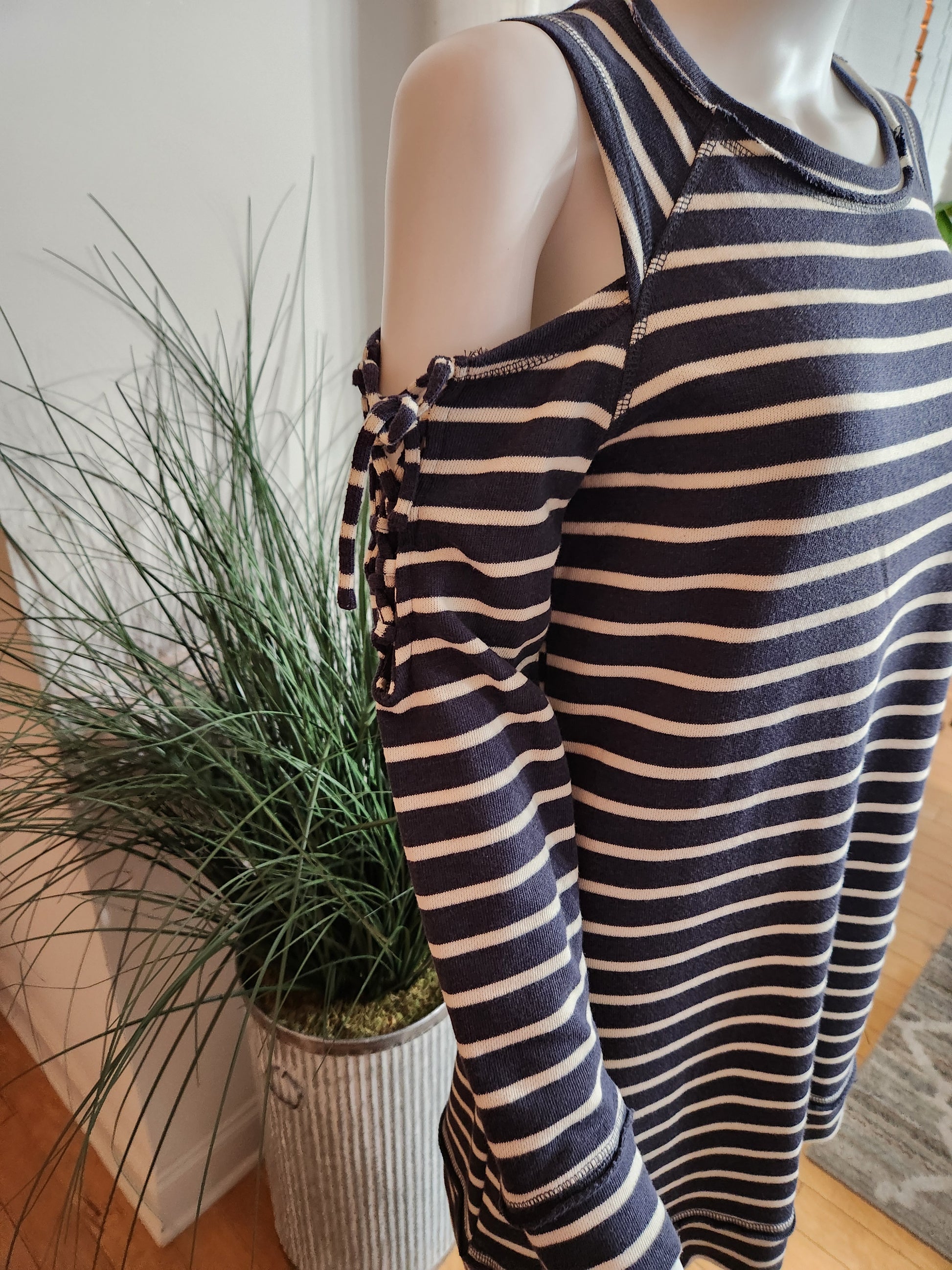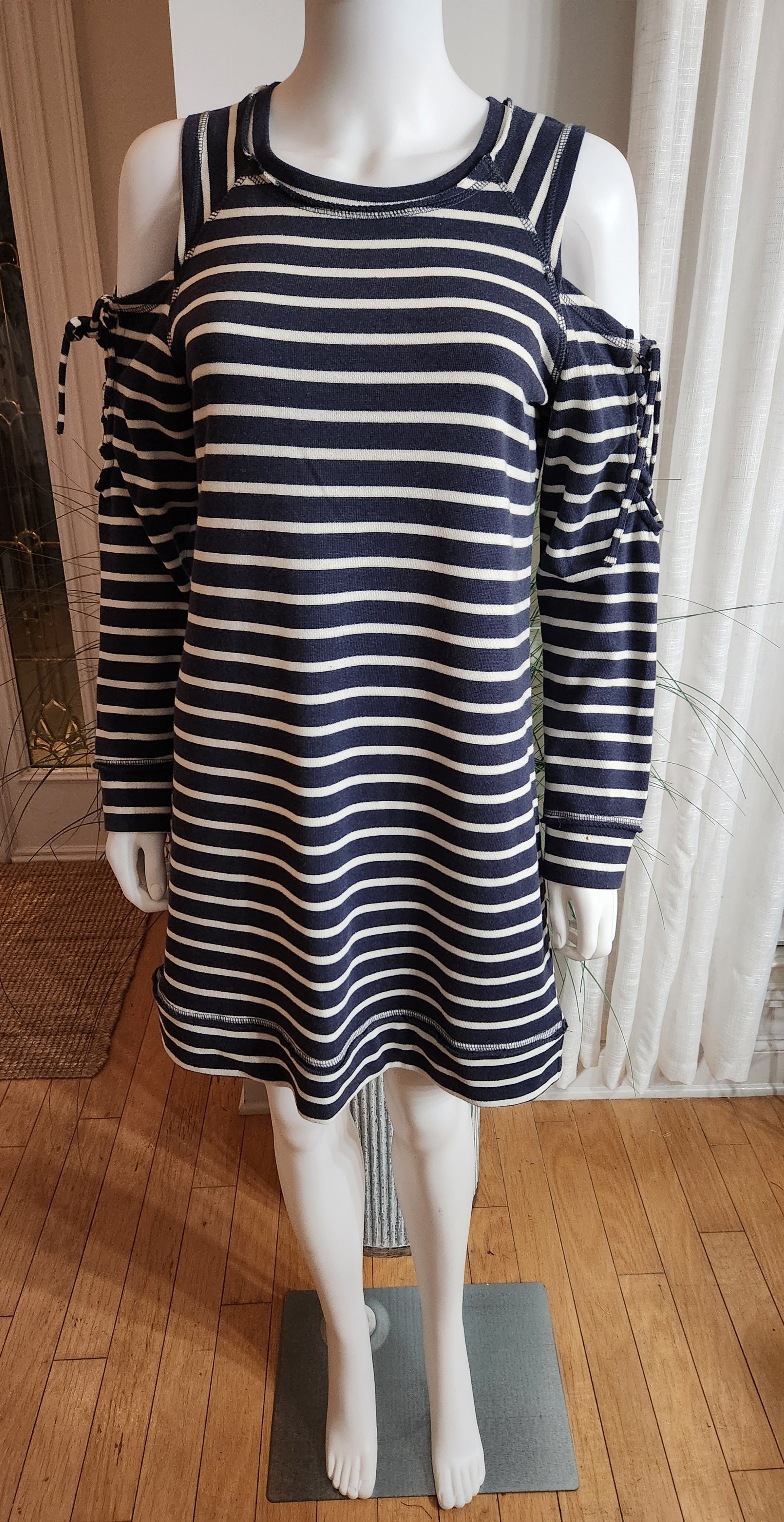 Maurices Blue & White Striped Cold Shoulder Dress Sz M