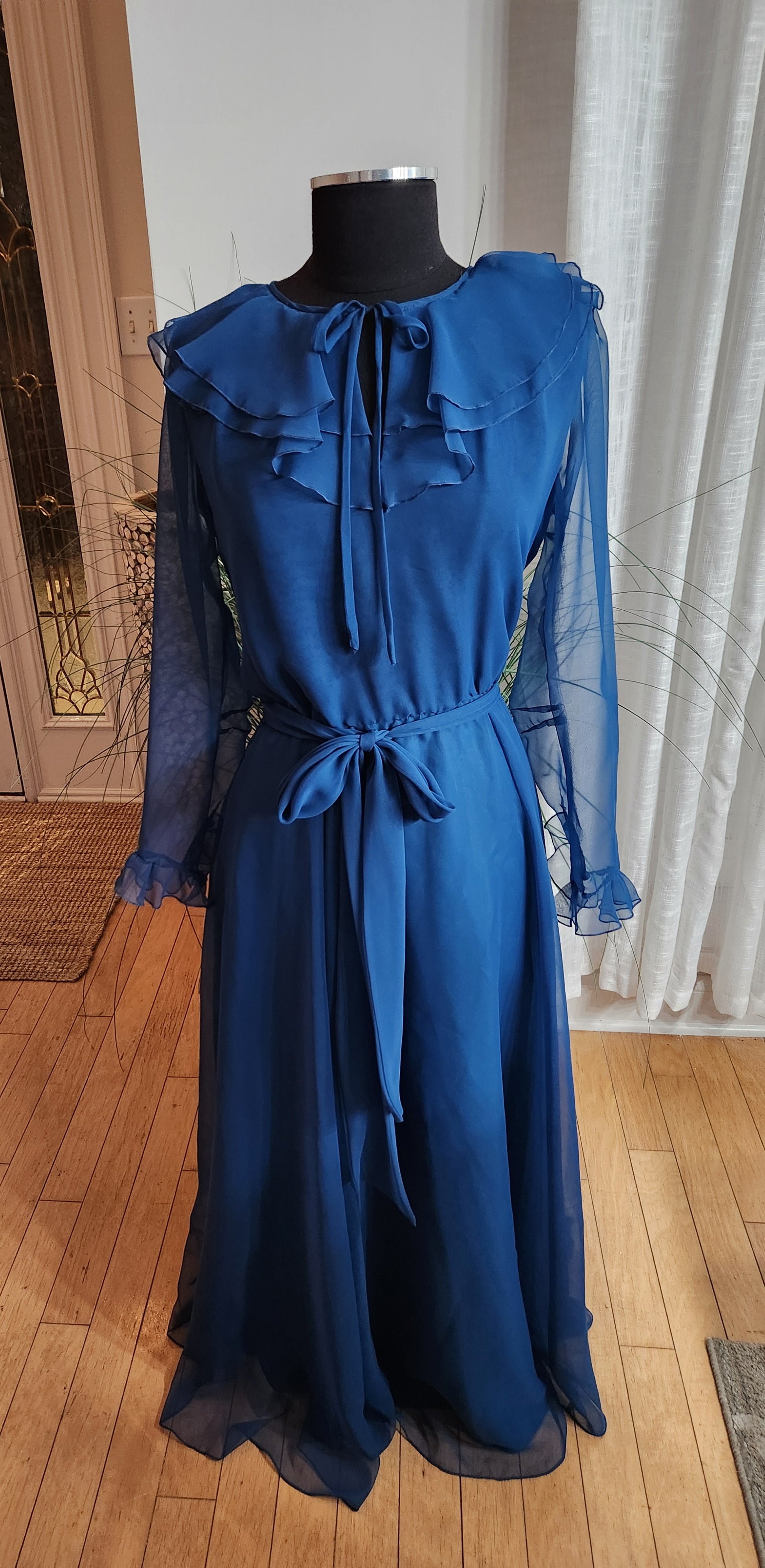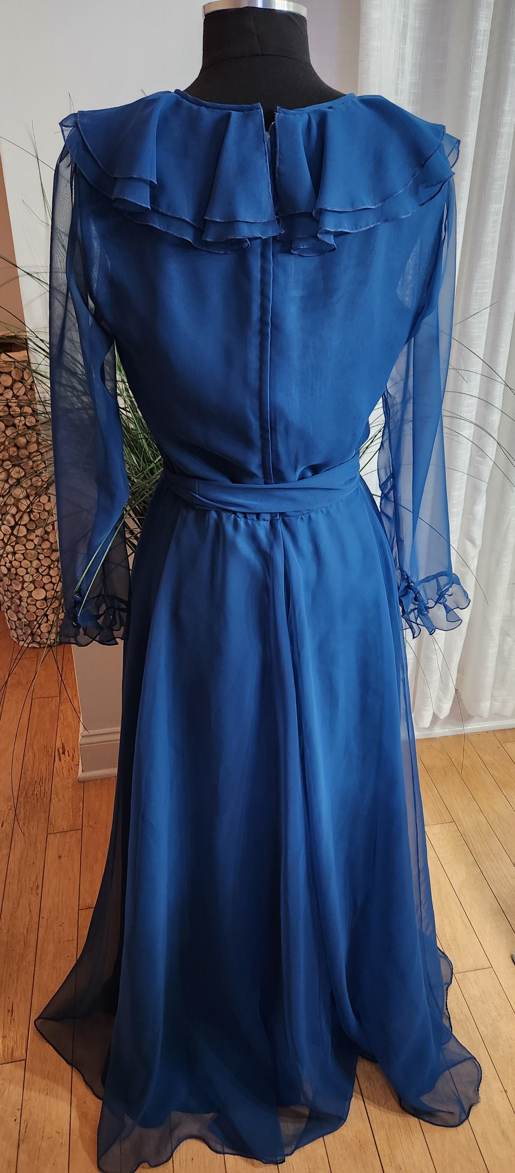 60's Vintage Blue Sheer Chiffon Maxi Gown by Miss Elliette California