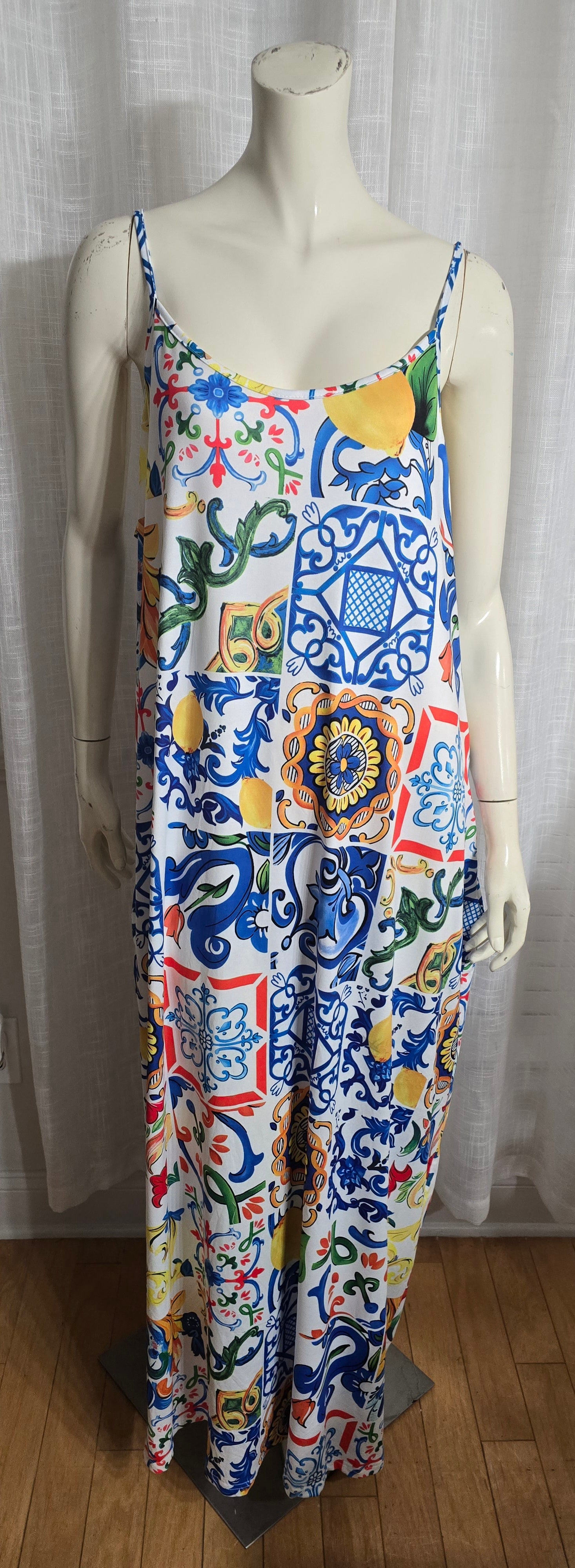 Get ready to turn heads in this NWOT colorful maxi dress! With convenient pockets, adjustable straps, and stretchy fabric, it's both stylish and comfortable. Made from a combination of polyester and spandex, this dress is perfect for any occasion. Don't miss out on this must-have addition to your wardrobe!