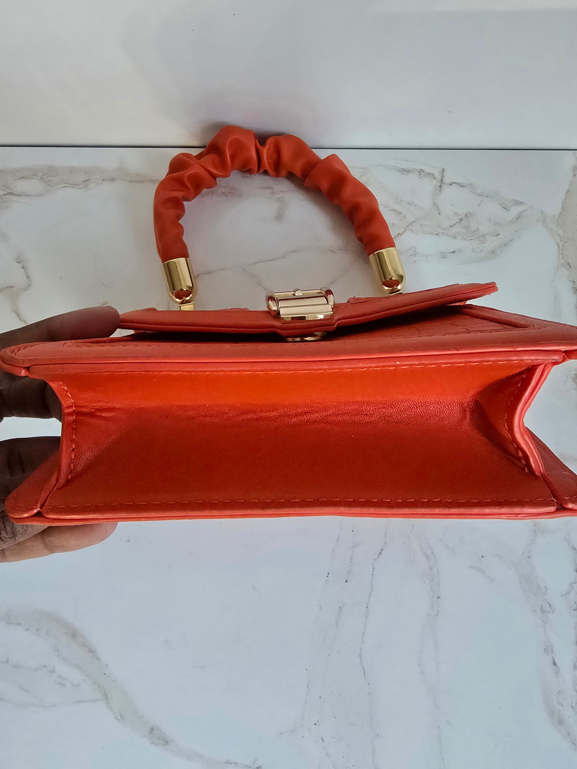 Orange Faux Skin Mini Handbag