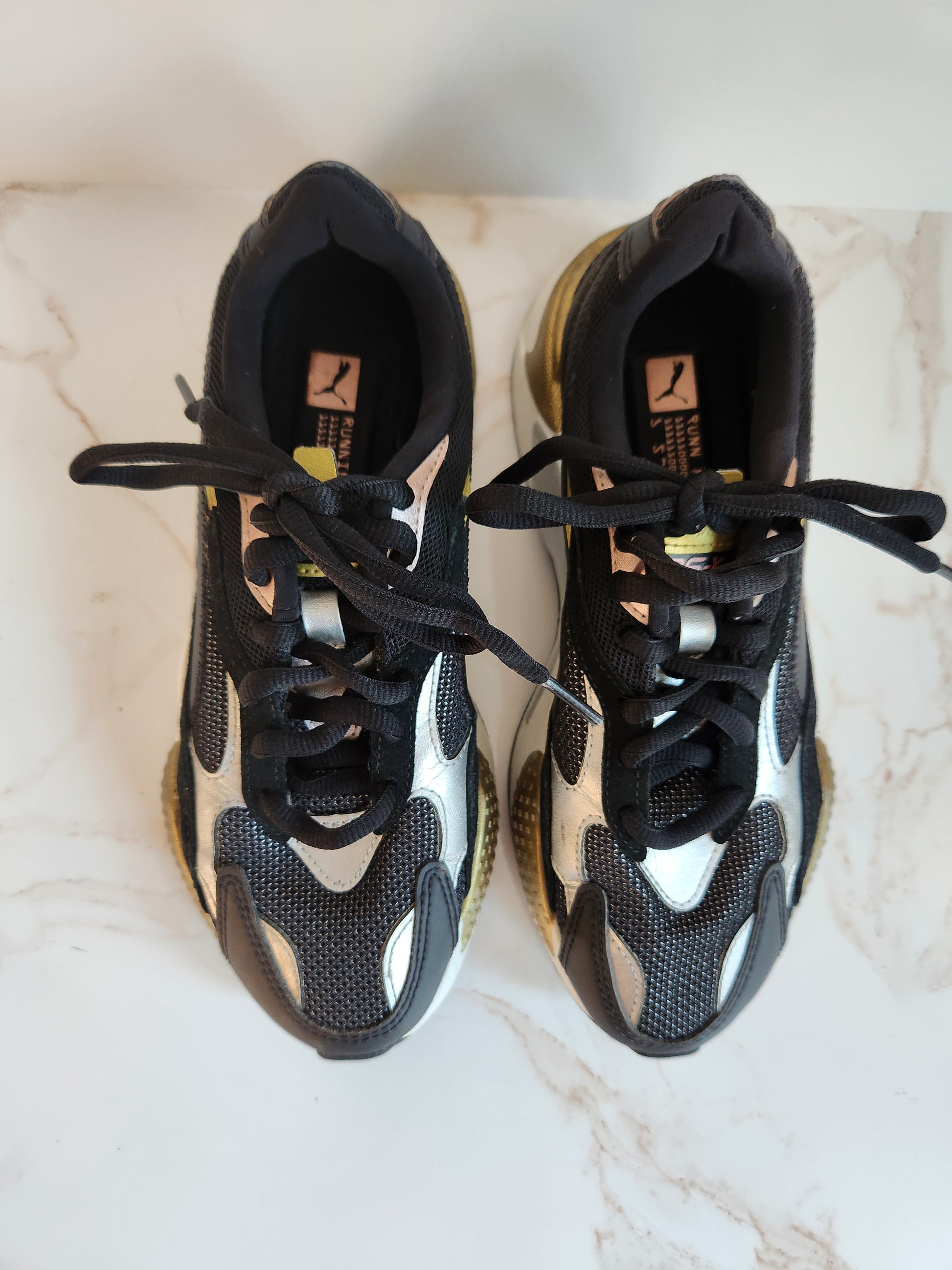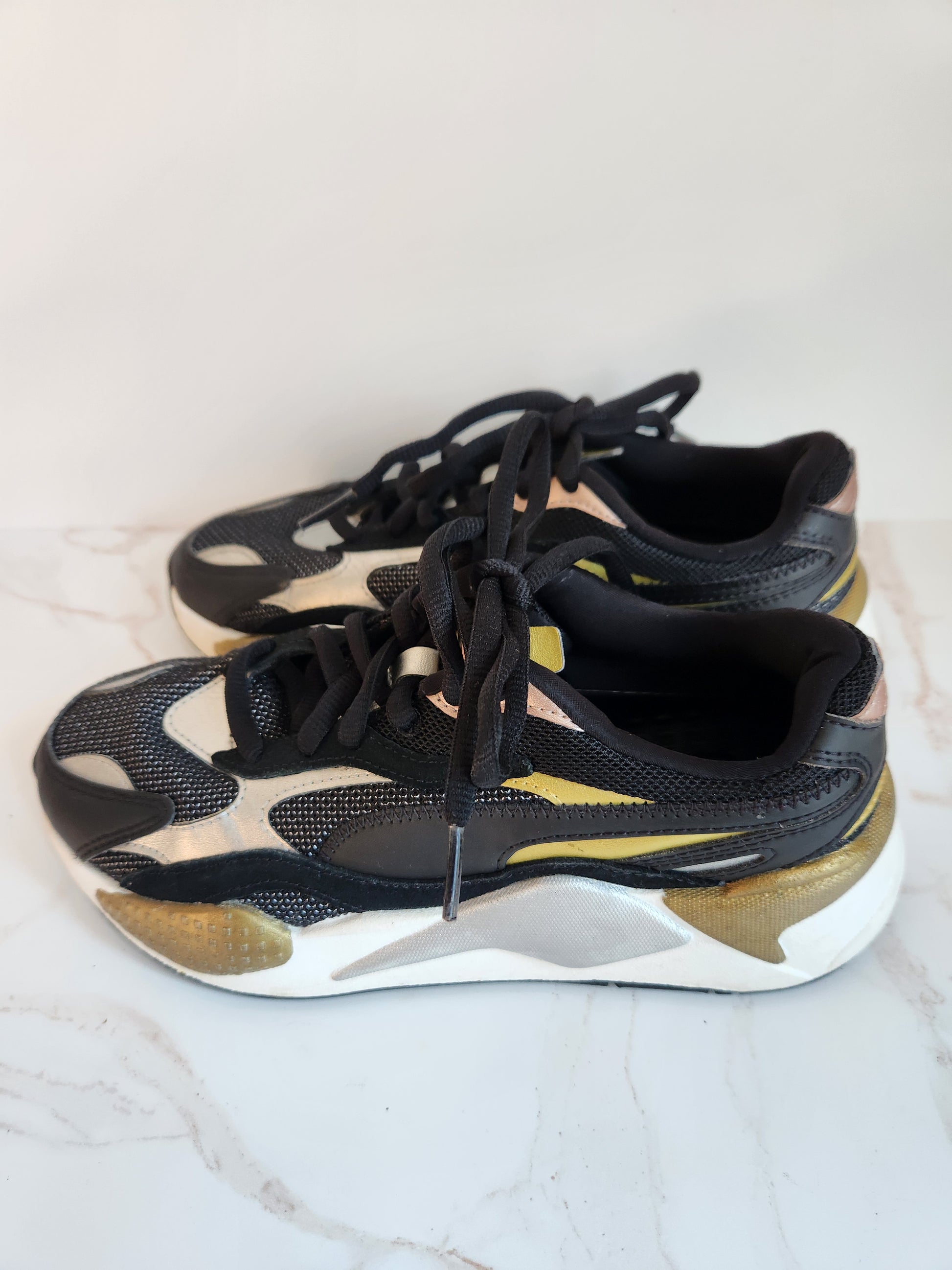 Puma RS-X3 Metallic Rose-Gold-Silver-Black Casual Running Shoes Women’s Size 7.5