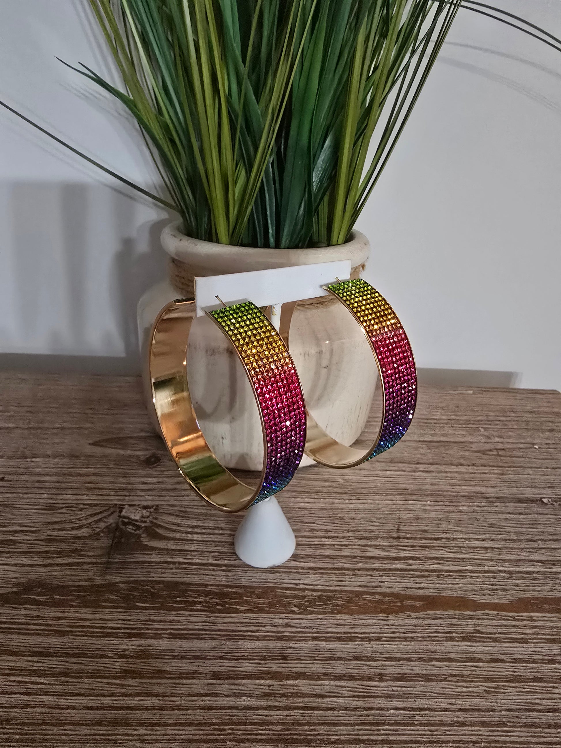 Get ready to shine with our Rainbow Bling Hoop earrings! These fun and lightweight hoops are approximately 3.5" in length, perfect for adding a pop of color to any outfit. Be the life of the party with these dazzling hoops that will make heads turn.