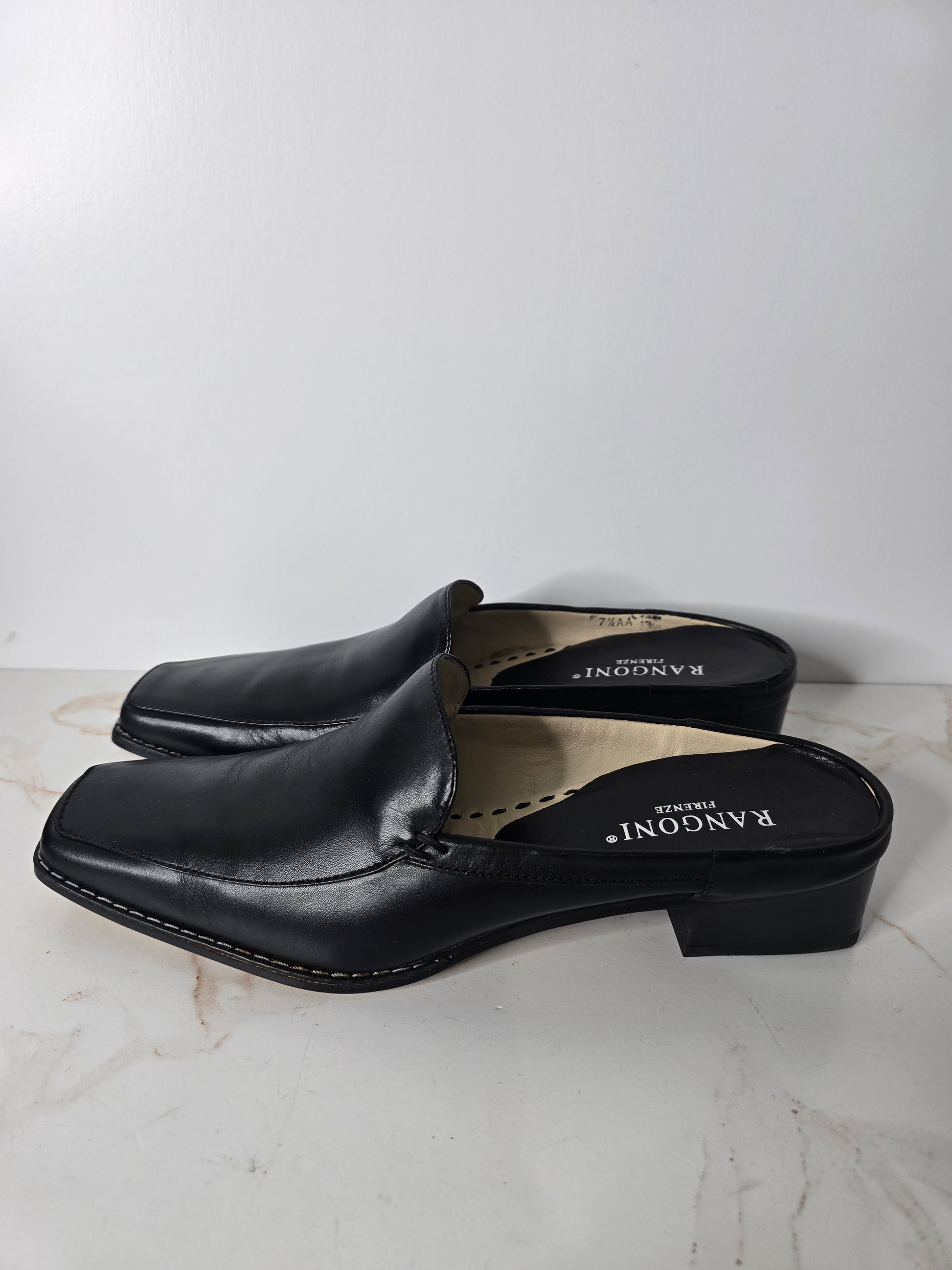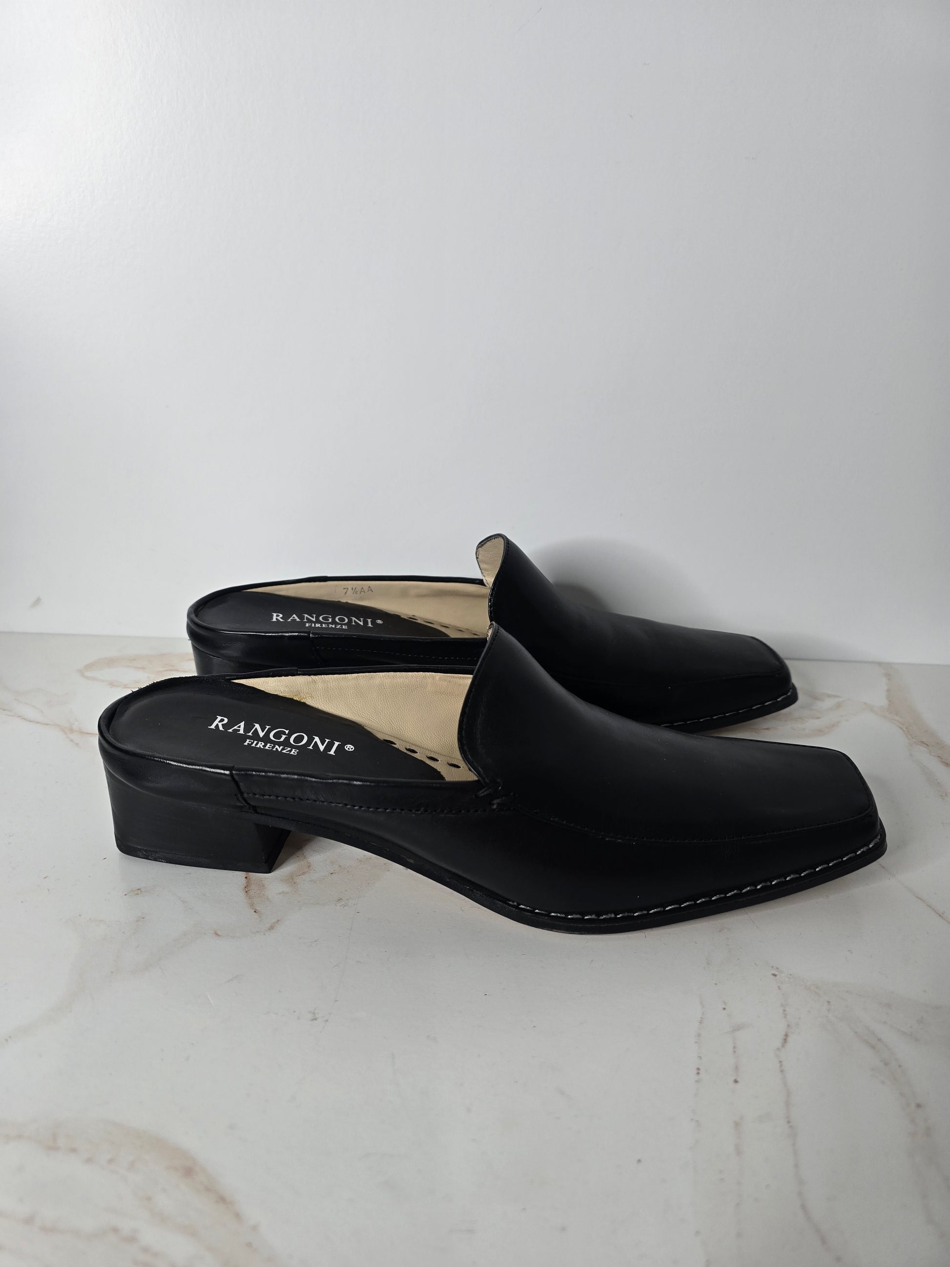 Rangoni Firenze Black Italian Leather Mule Sz 7.5 AA (Narrow)