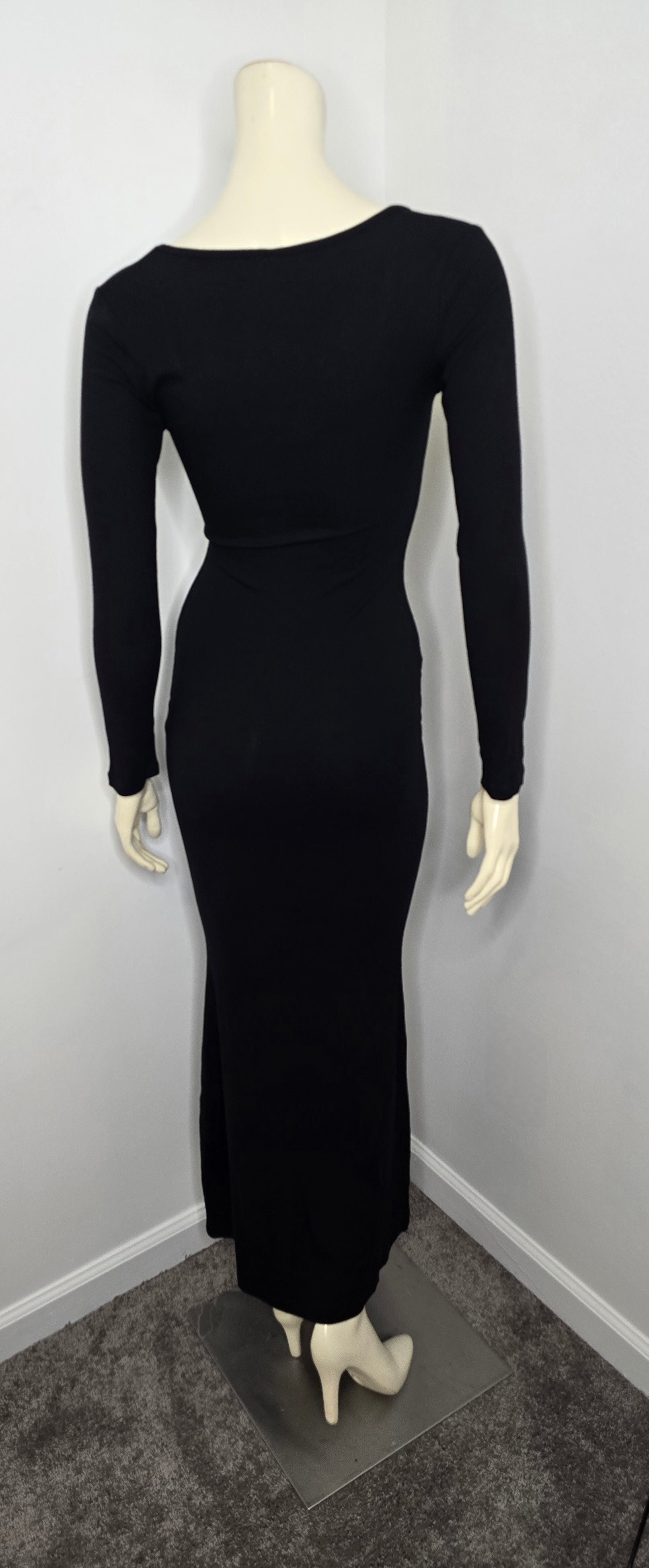 Reoria Black Ribbed Fitted Maxi Dress Sz M