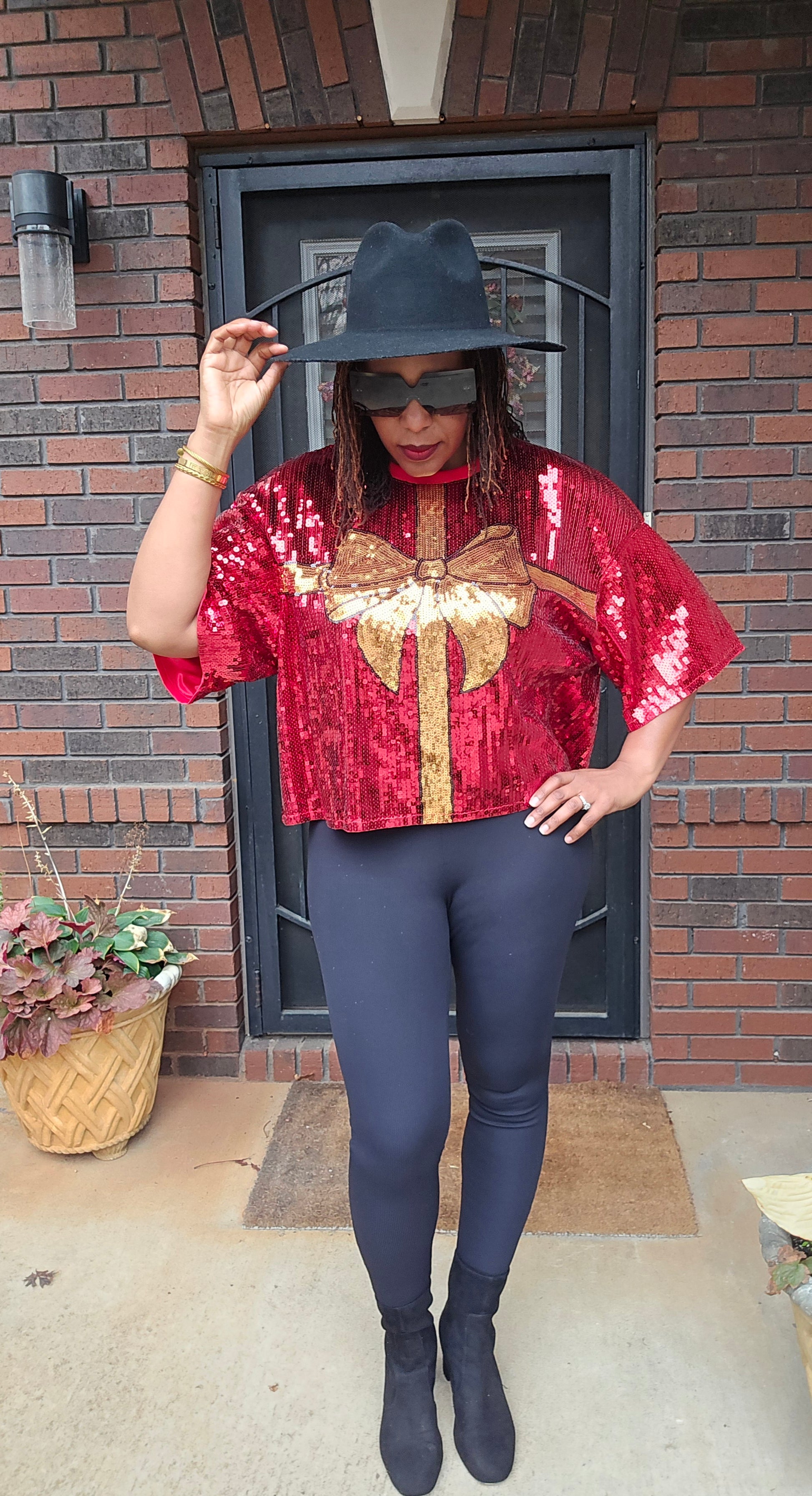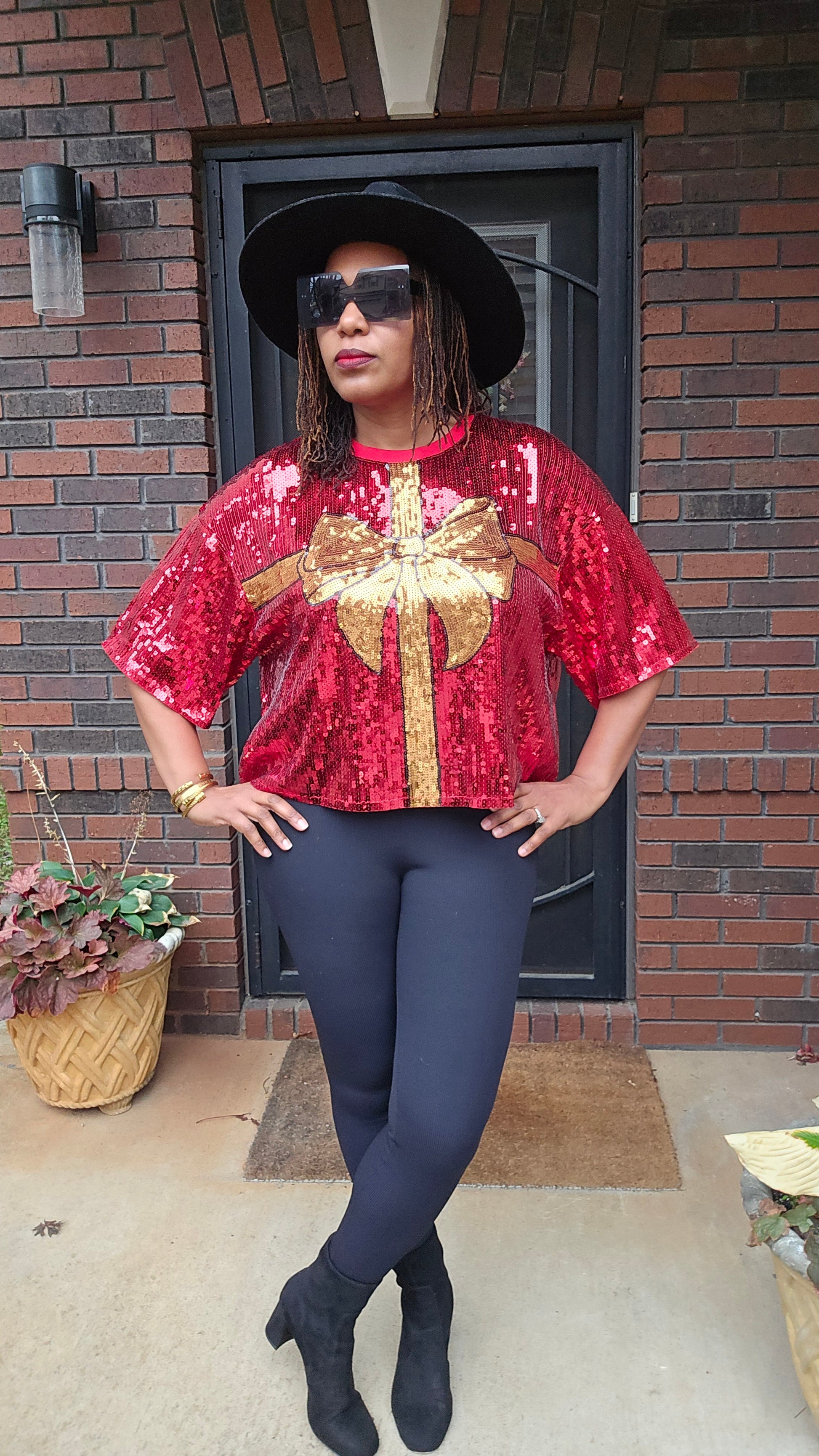Simply Southern Lux Bow Sequin Crop Sz XL
