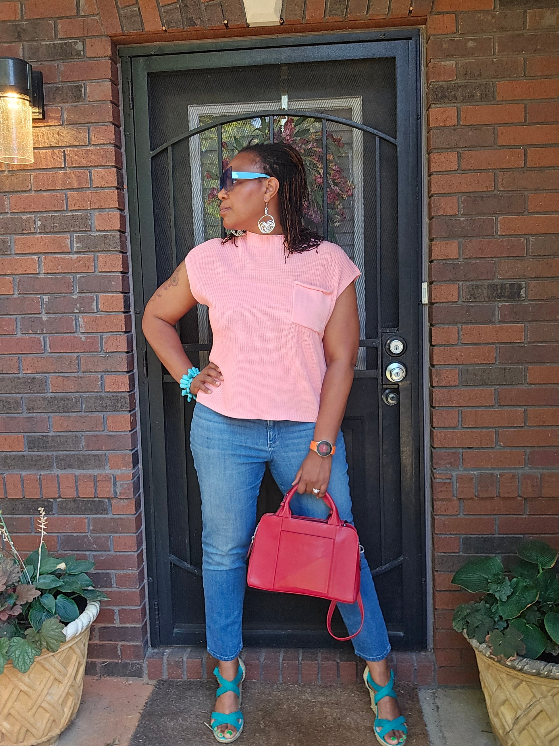 Introducing the Simply Southern Sleeveless Knit Sweater in lovely pink. Crafted with a luxurious, stretchy fabric, this NWT top features a chic mock turtleneck and convenient single pocket. Versatile and elegant, it effortlessly transitions from day to night. Made of polyester for a premium feel.