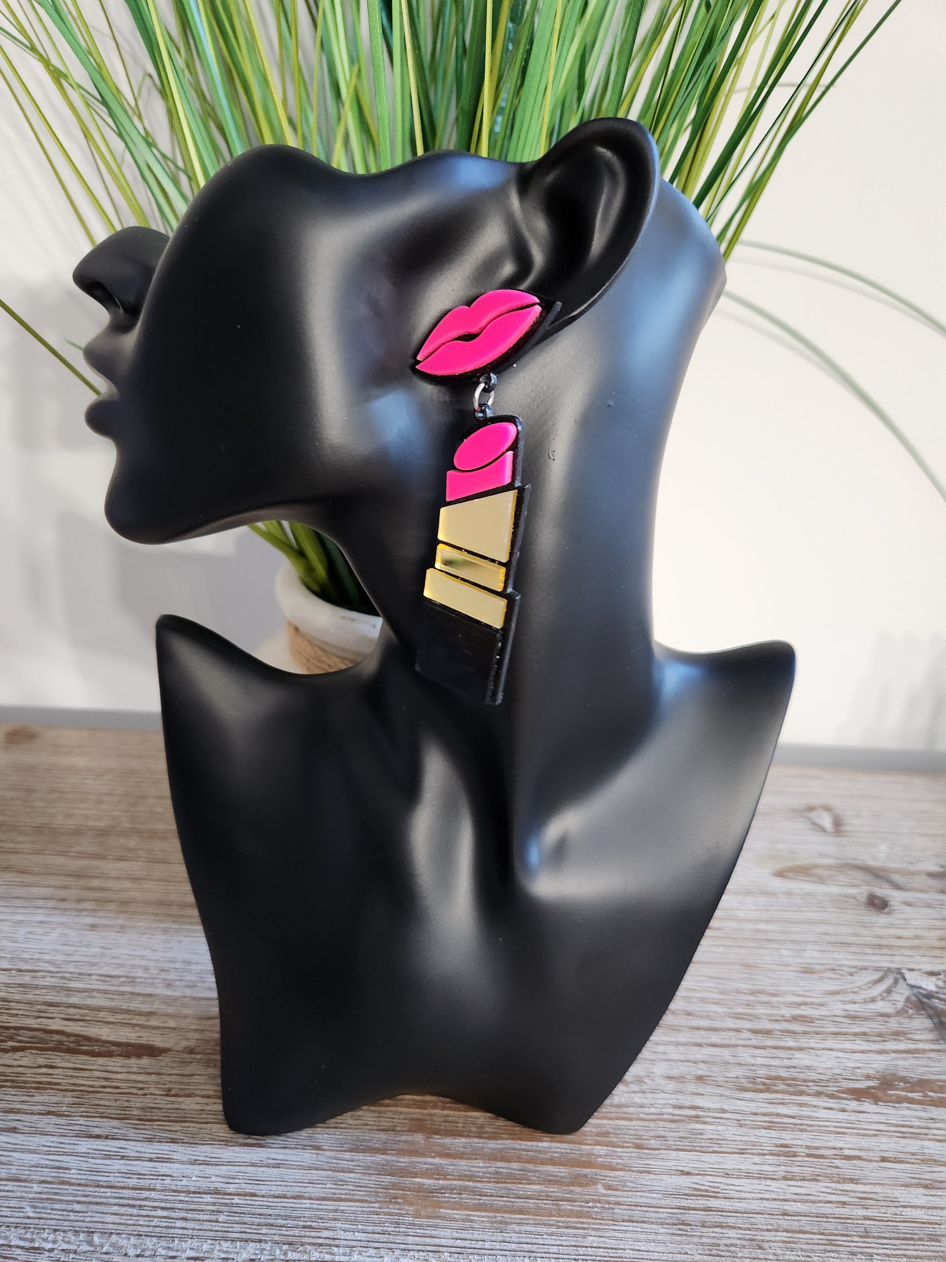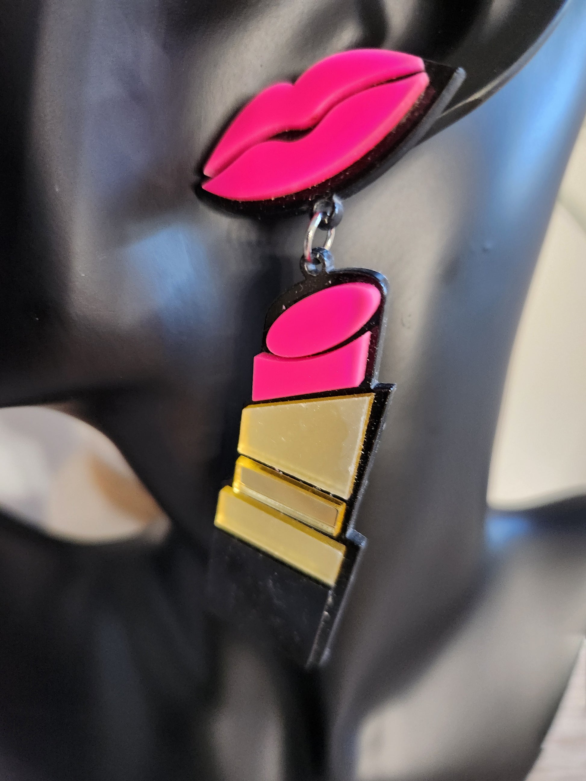 Our Smooches lipstick earrings are fun and a conversation starter! These pink, gold, and black earrings are a woman's best friend. Lightweight.