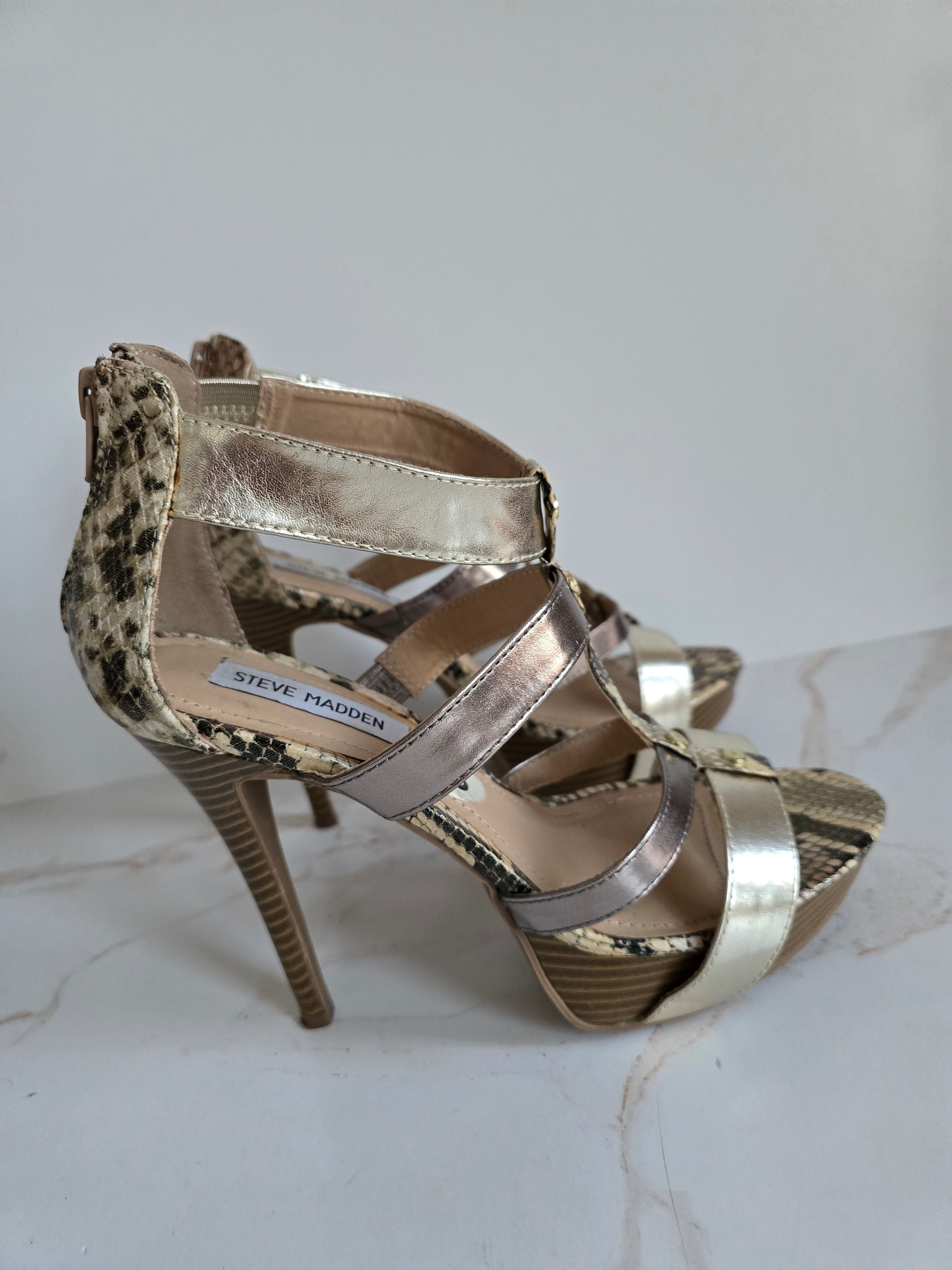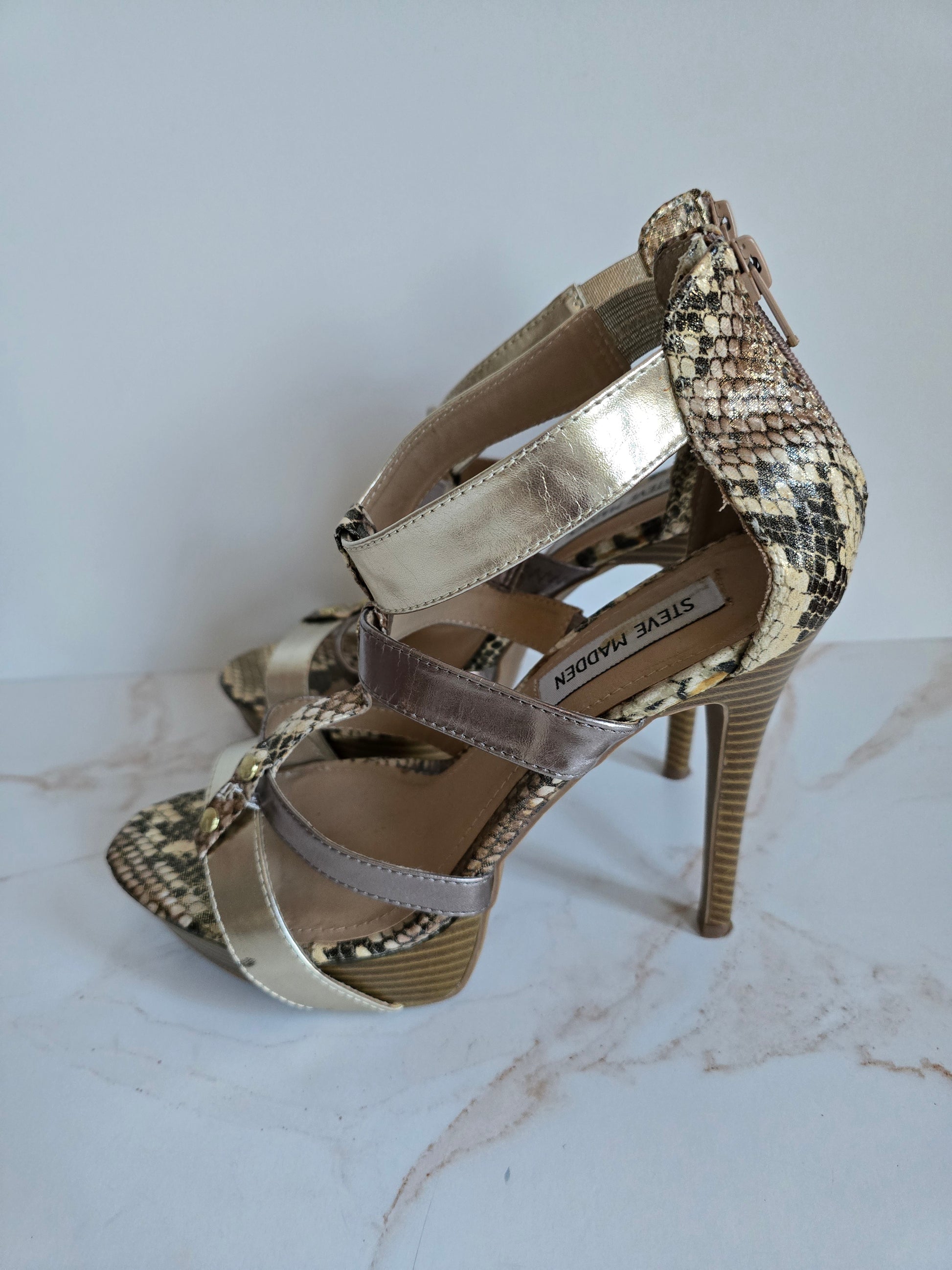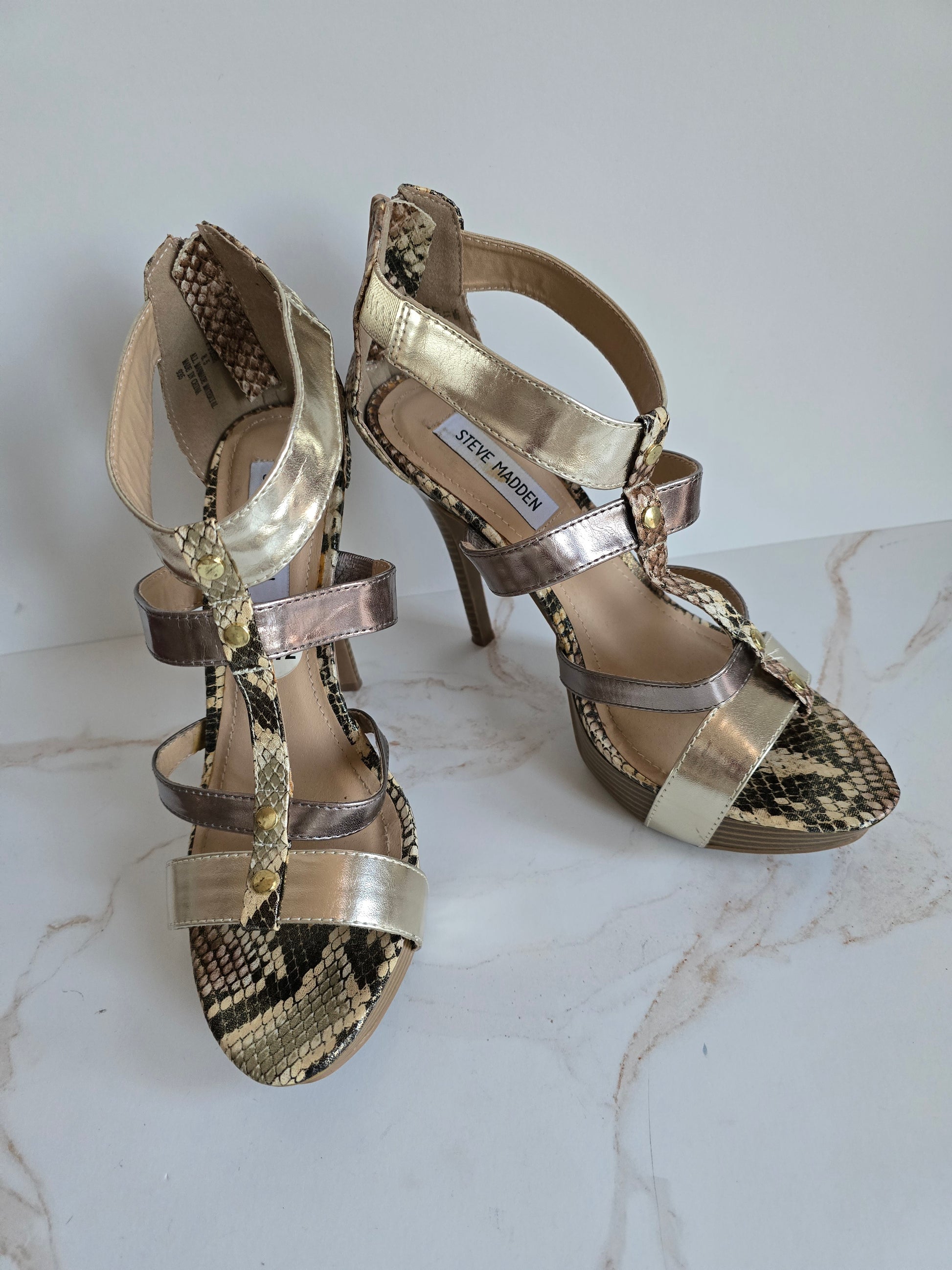 Steve Madden Possh Gold Metallic & Snakeskin Platform Stilettos Sz 8.5
