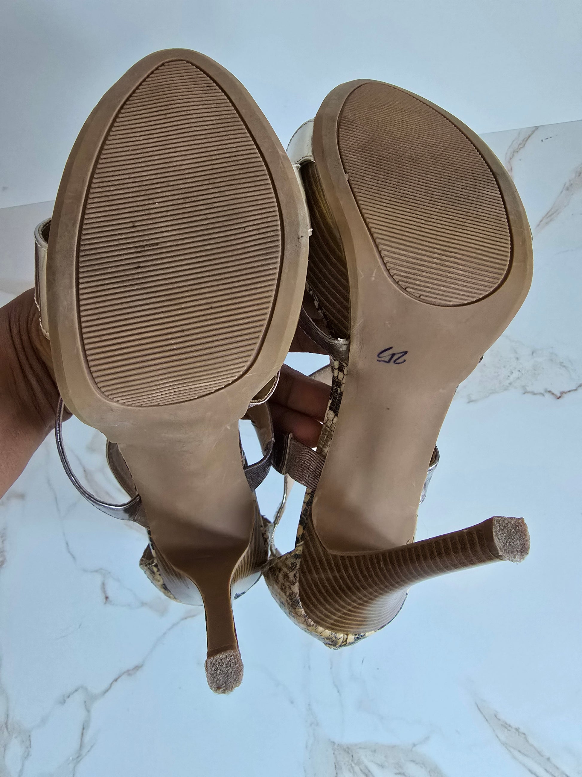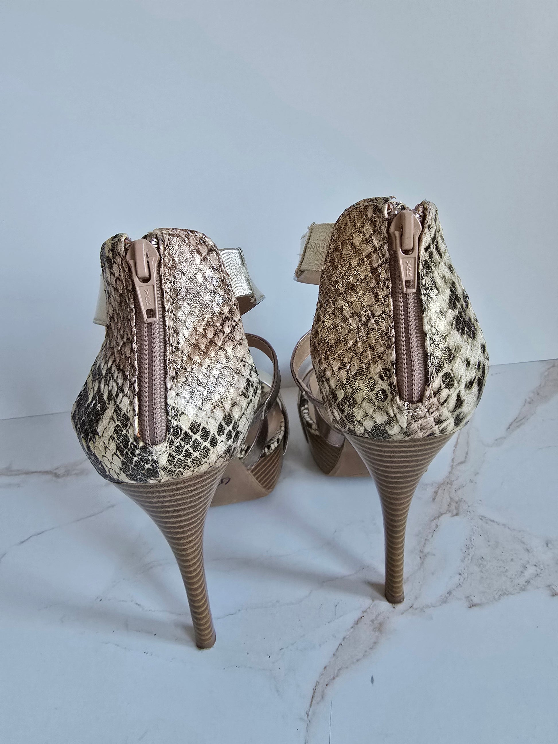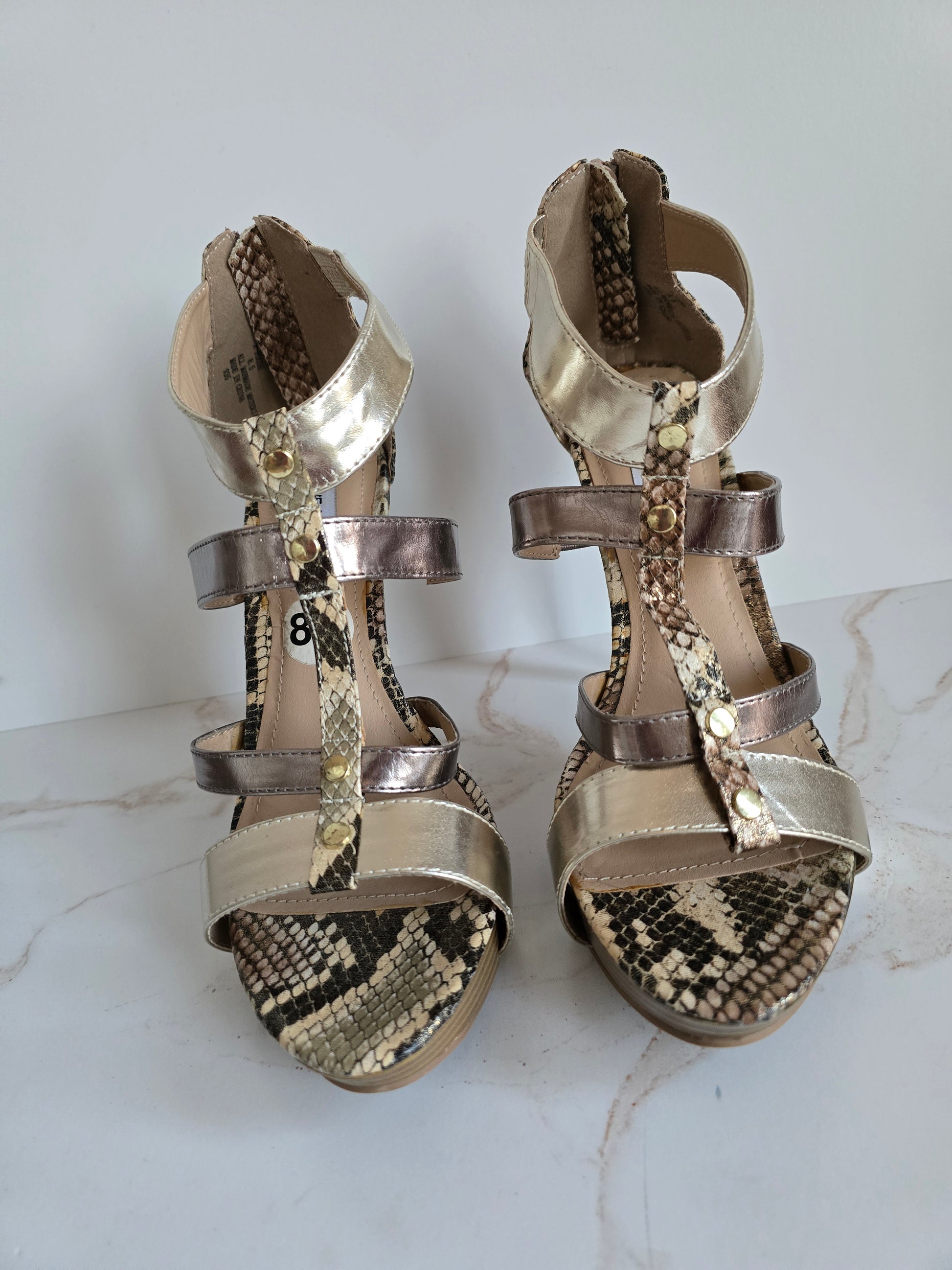 Steve Madden Possh Gold Metallic & Snakeskin Platform Stilettos Sz 8.5