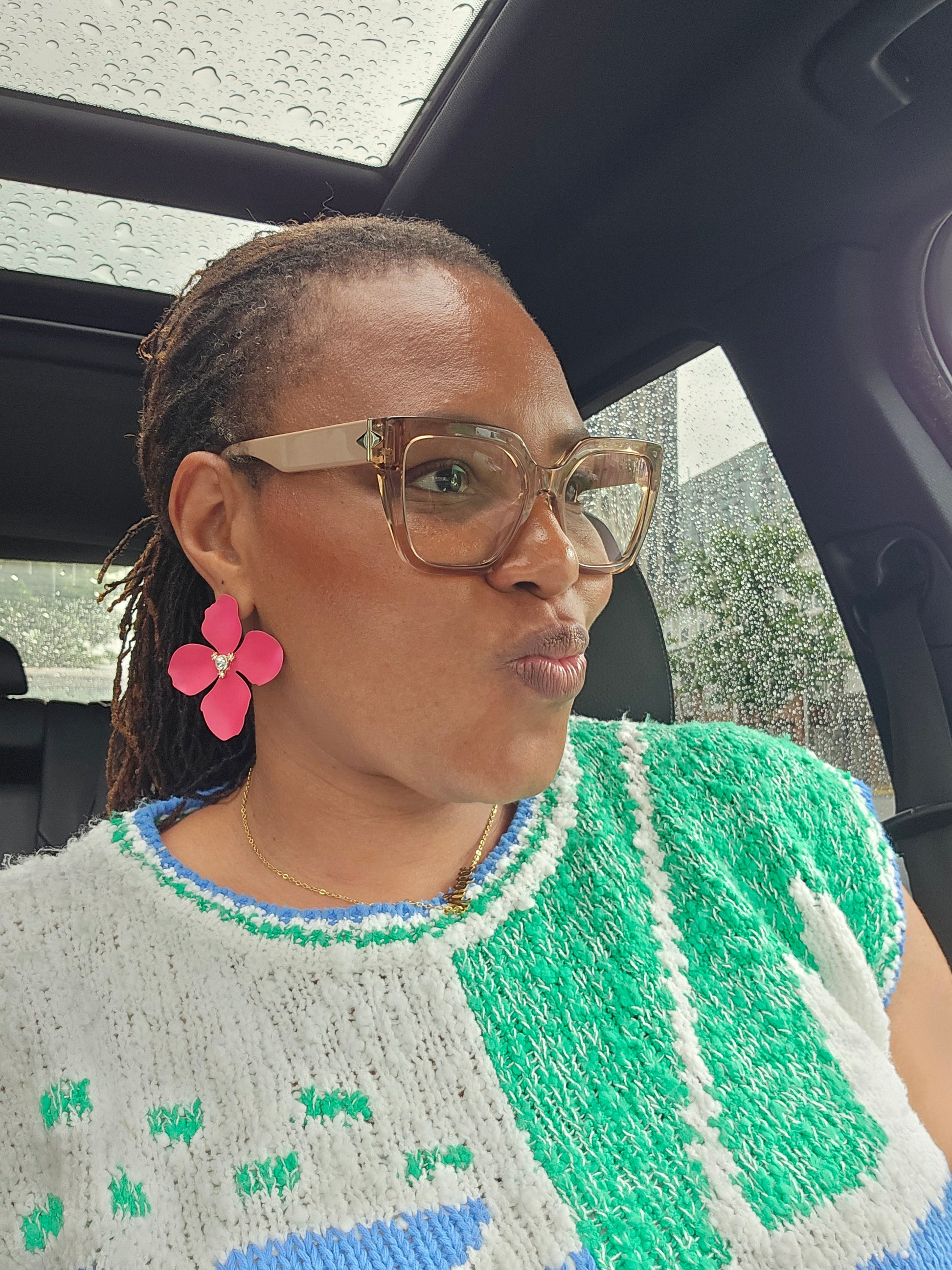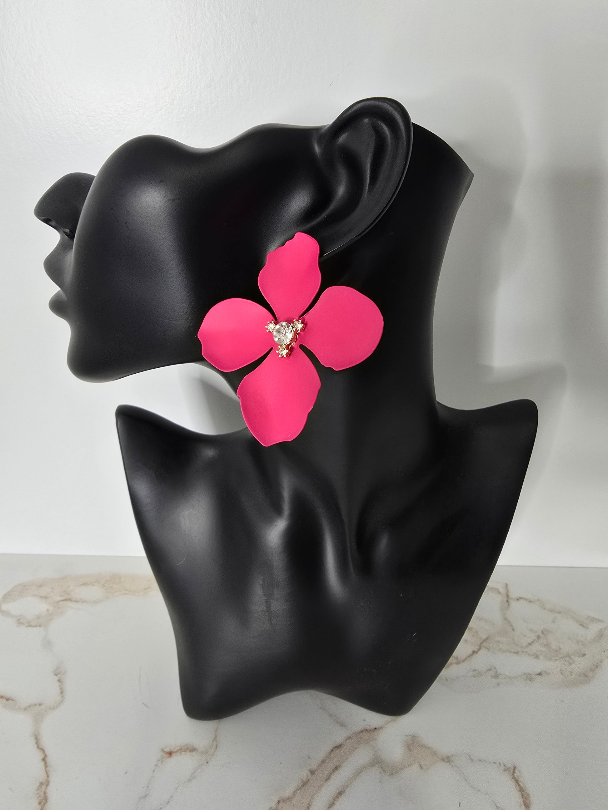 Adding a pop of color is always a win! Summer Fling Pink Flower Earrings with clear stones add a pop of color to any outfit - solid or mixed prints. Perfect for a fun and flirty look, these earrings are a sure win for adding a playful touch to your wardrobe. Lightweight.