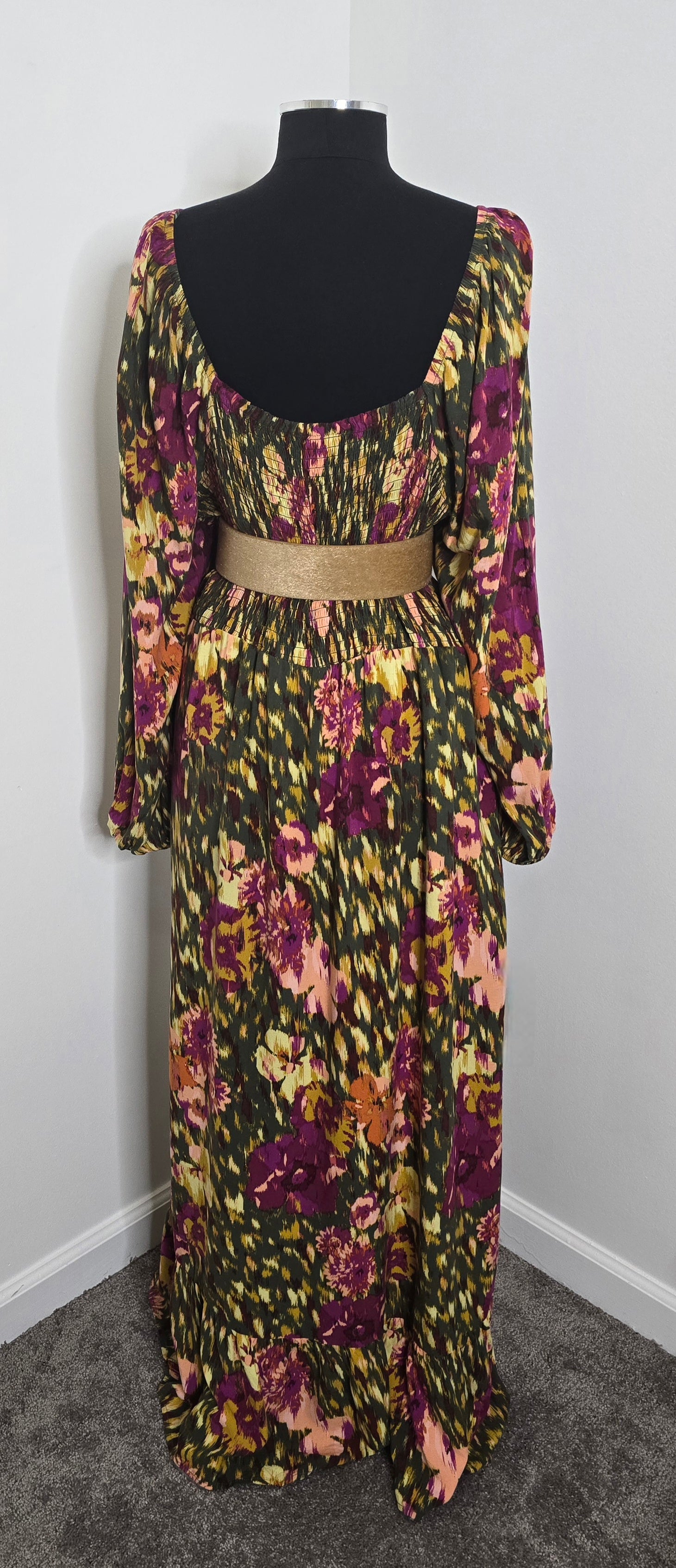 Stay stylish and comfy in the Terra & Sky Floral Peasant Maxi Dress. Made with 100% rayon and balloon sleeves, this pre-loved dress features a perfect fall print and elastic gauze in the back for a comfortable and flattering fit. Bring comfort and style together with this effortless piece. Available in size 2X.