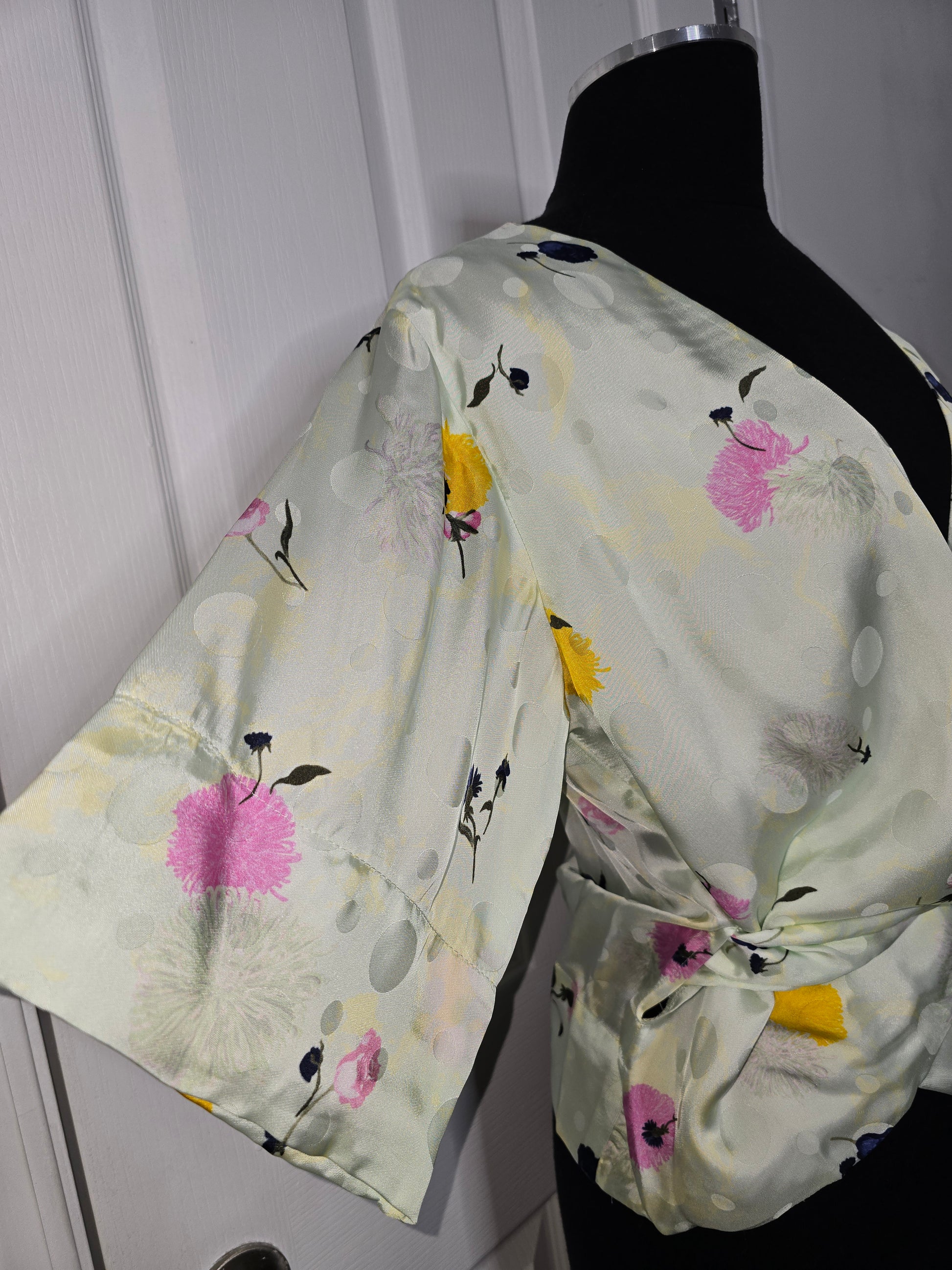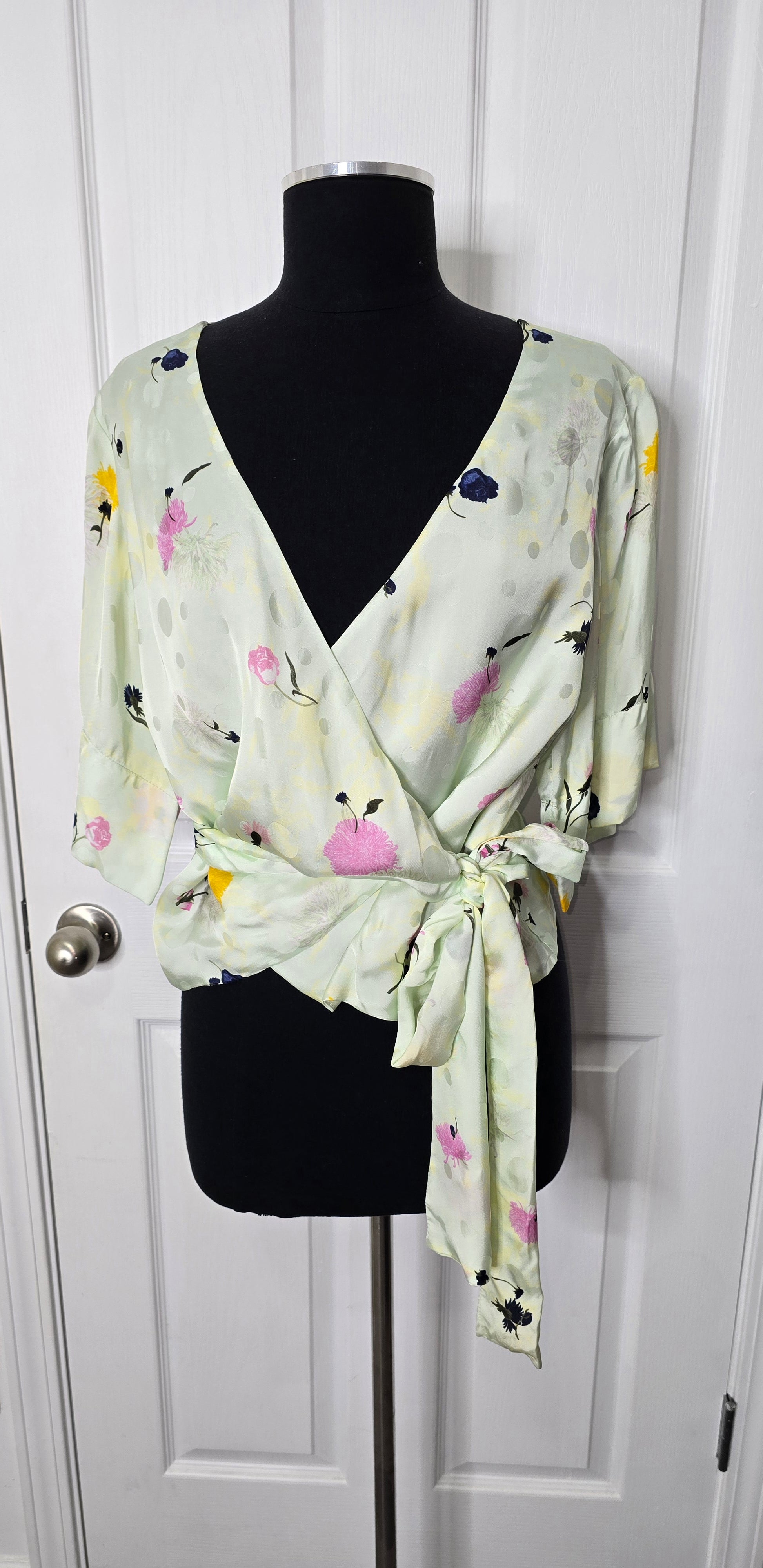 Embrace the elegance of Japanese-inspired design with our NWT TopShop Boutique Wrap Blouse. Adorned with a sophisticated print, this lined blouse boasts a 20" PTP and is crafted from luxurious viscose. Elevate your wardrobe with this premium blouse in size 6. PTP 20".