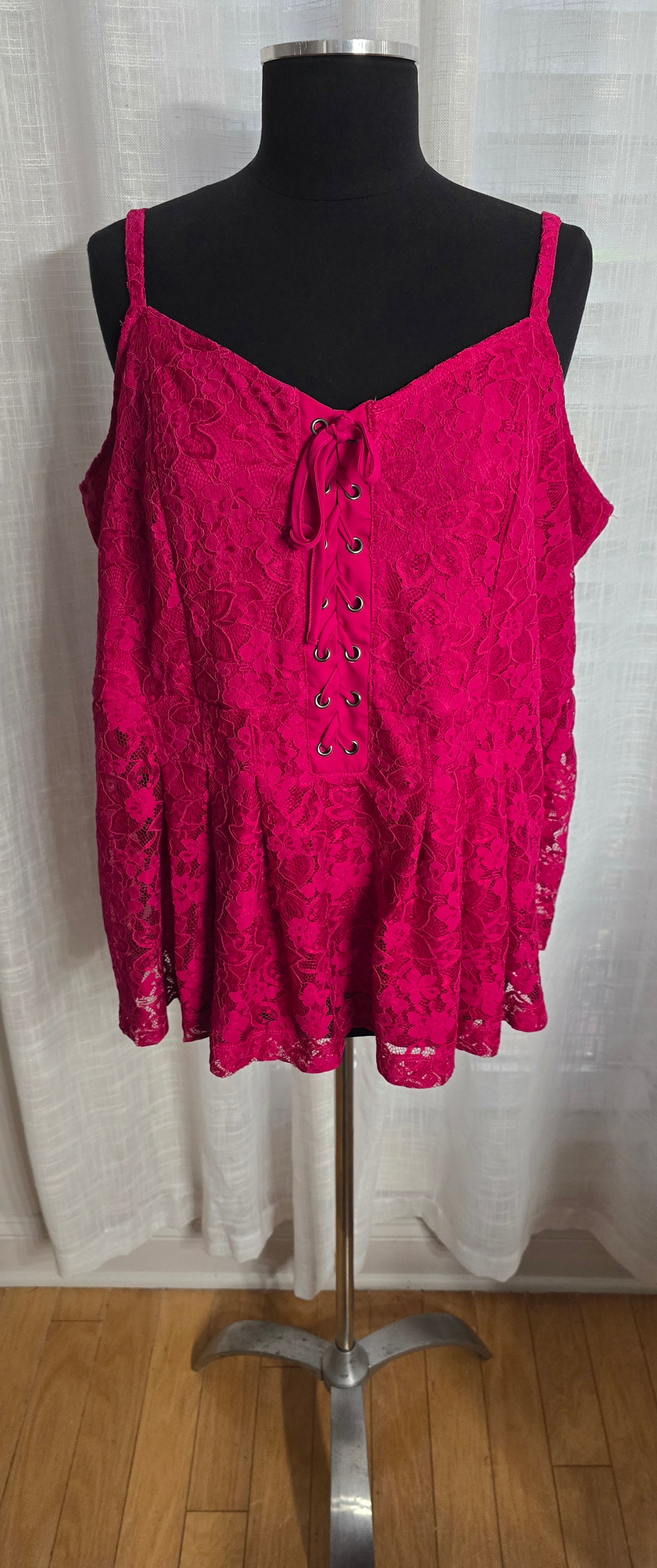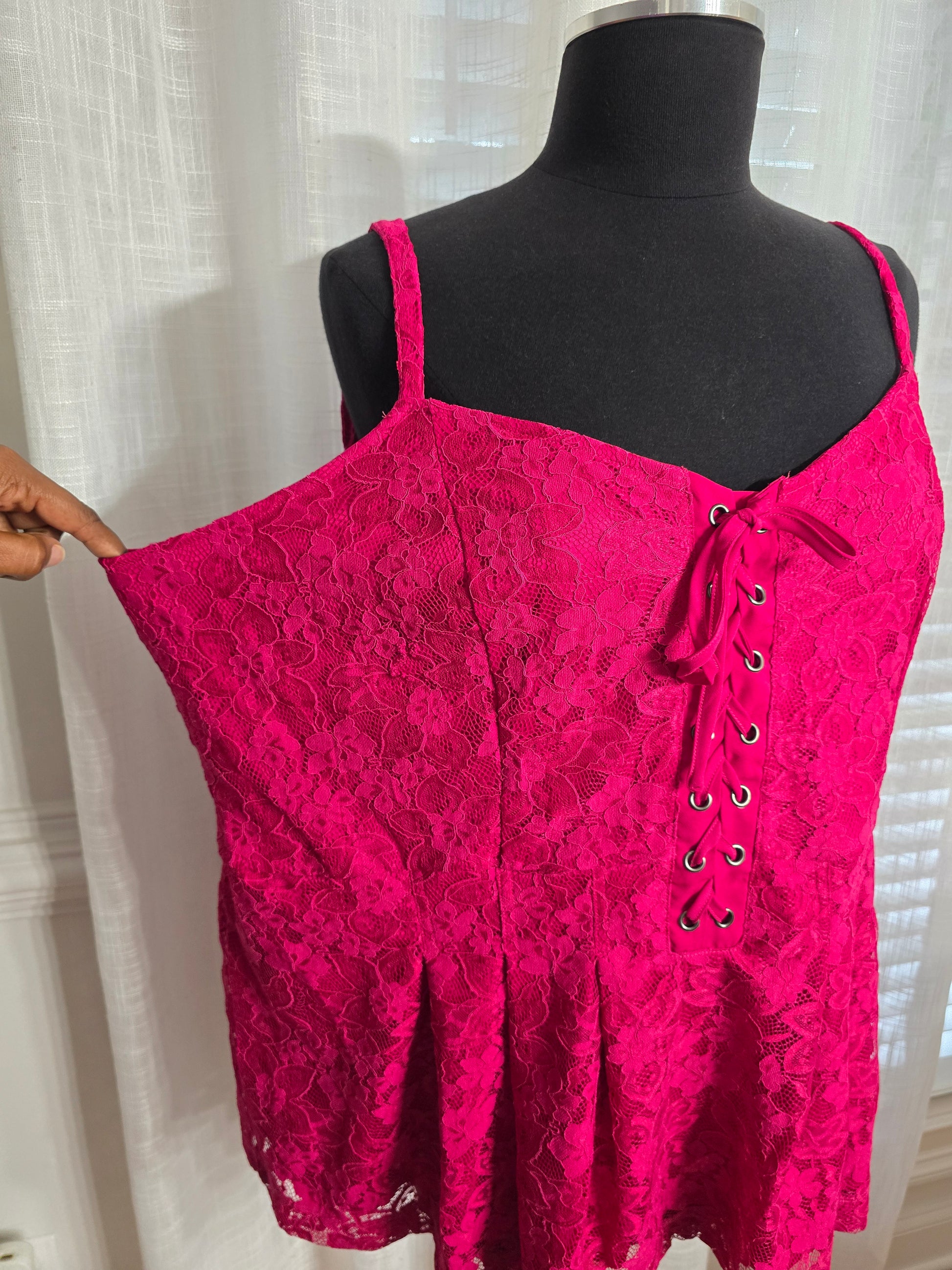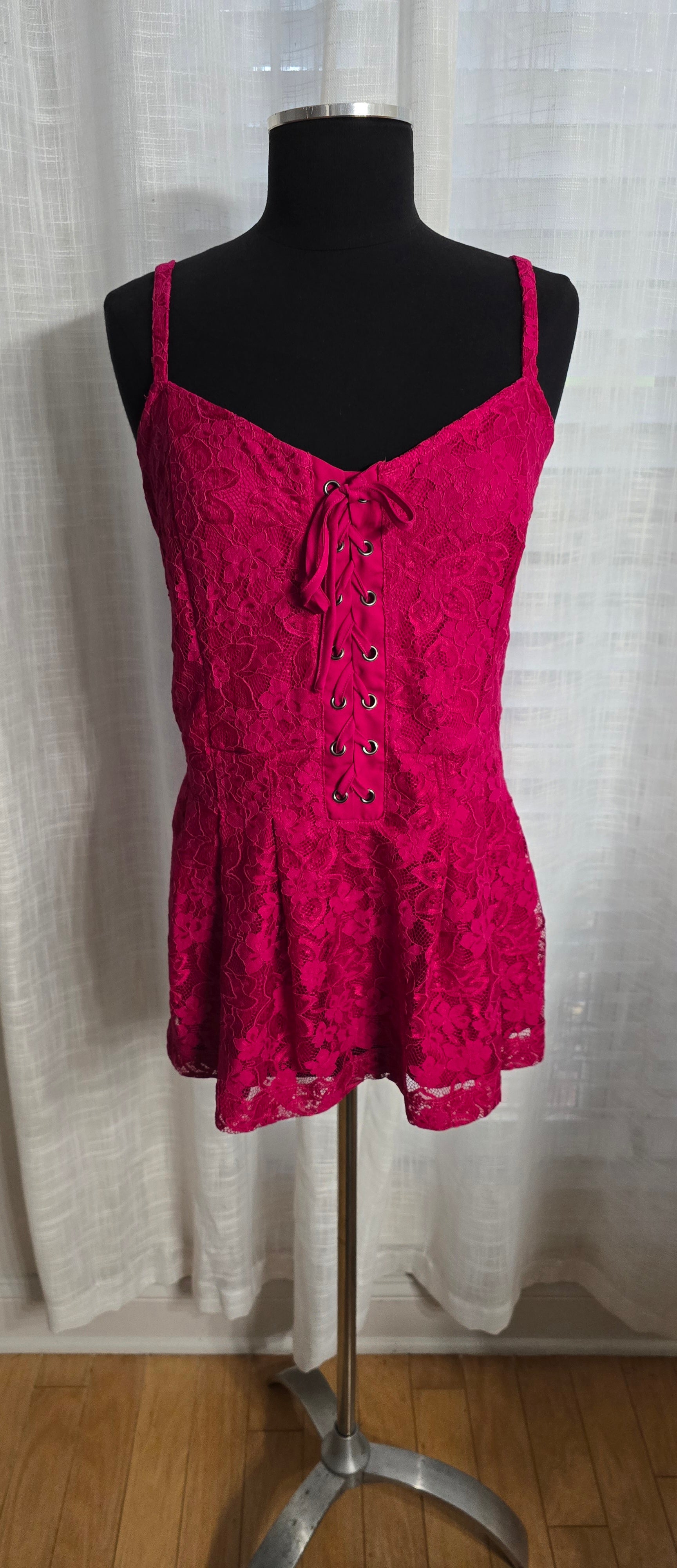 Unleash your inner fire with the playful and flirty Torrid Lace Peplum Corset Style Top. This size 3X top features a cute lace design, adjustable straps, and a comfortable elastic gauze back. With a lined construction, it's both stylish and comfy. Dare to be different in this unique piece. NWT.