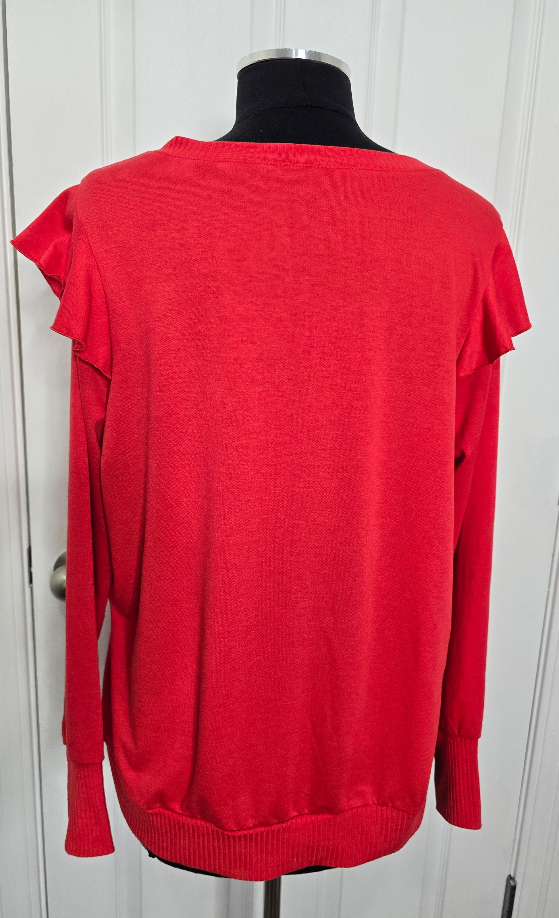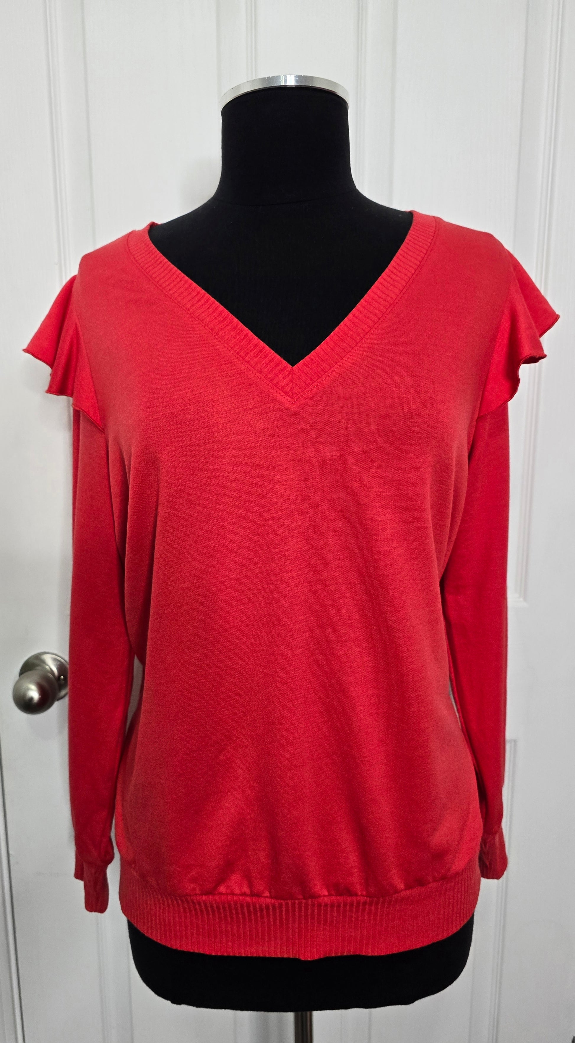 Add a touch of playfulness to your wardrobe with Torrid's Long Sleeve Ruffle Top. Made of a comfortable blend of polyester, rayon, and spandex with a hint of stretch, this top is perfect for any occasion. Pair it with jeans, a skirt, or pants for a cute and stylish look. Available in size 00 and in a beautiful color.