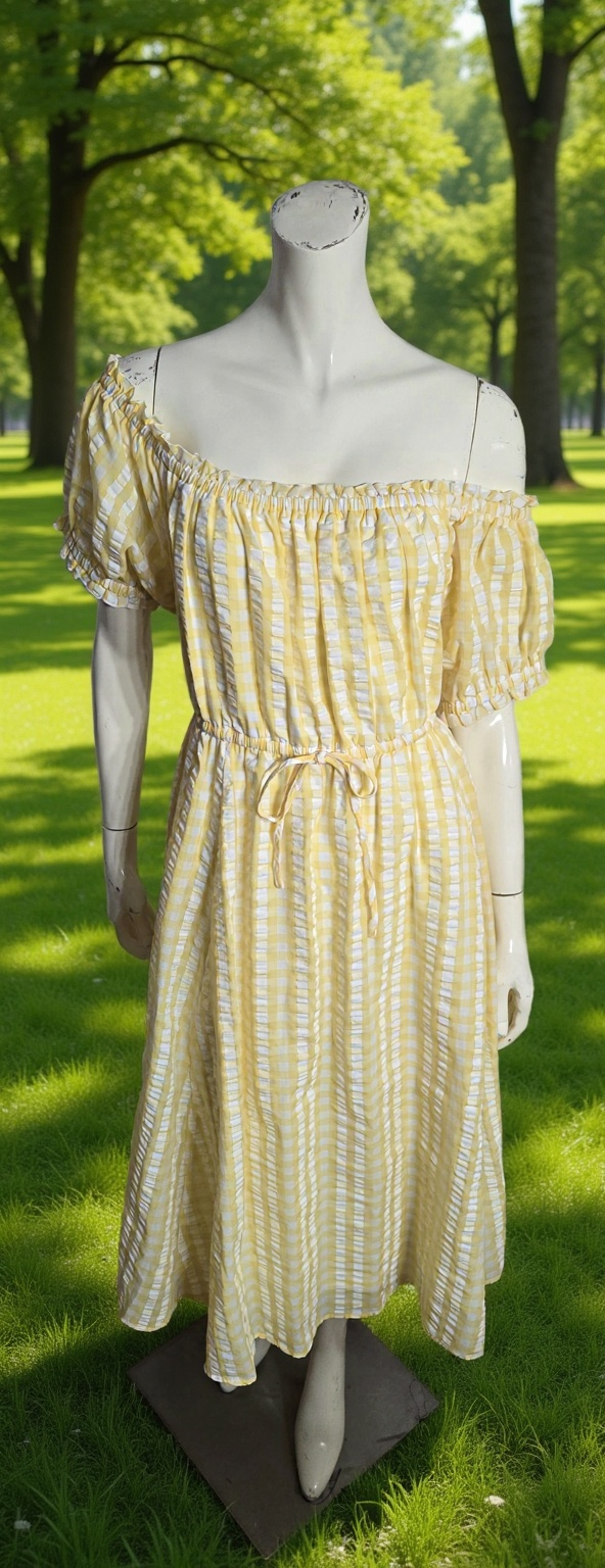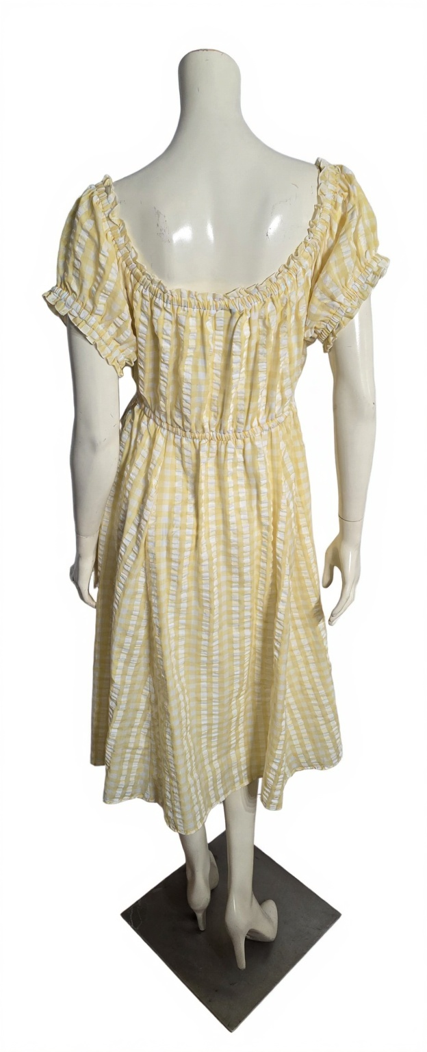 This Torrid dress is perfect for both playful and casual occasions. Its yellow and white gingham pattern adds a touch of uniqueness, while the elastic waist and pockets provide comfort and convenience. Wear it on or off the shoulders for a versatile and flirty look. Fully lined for added comfort. (How's that for a fun and pun-filled description?!). Pre-loved in excellent condition. Polyester, rayon, and spandex.
