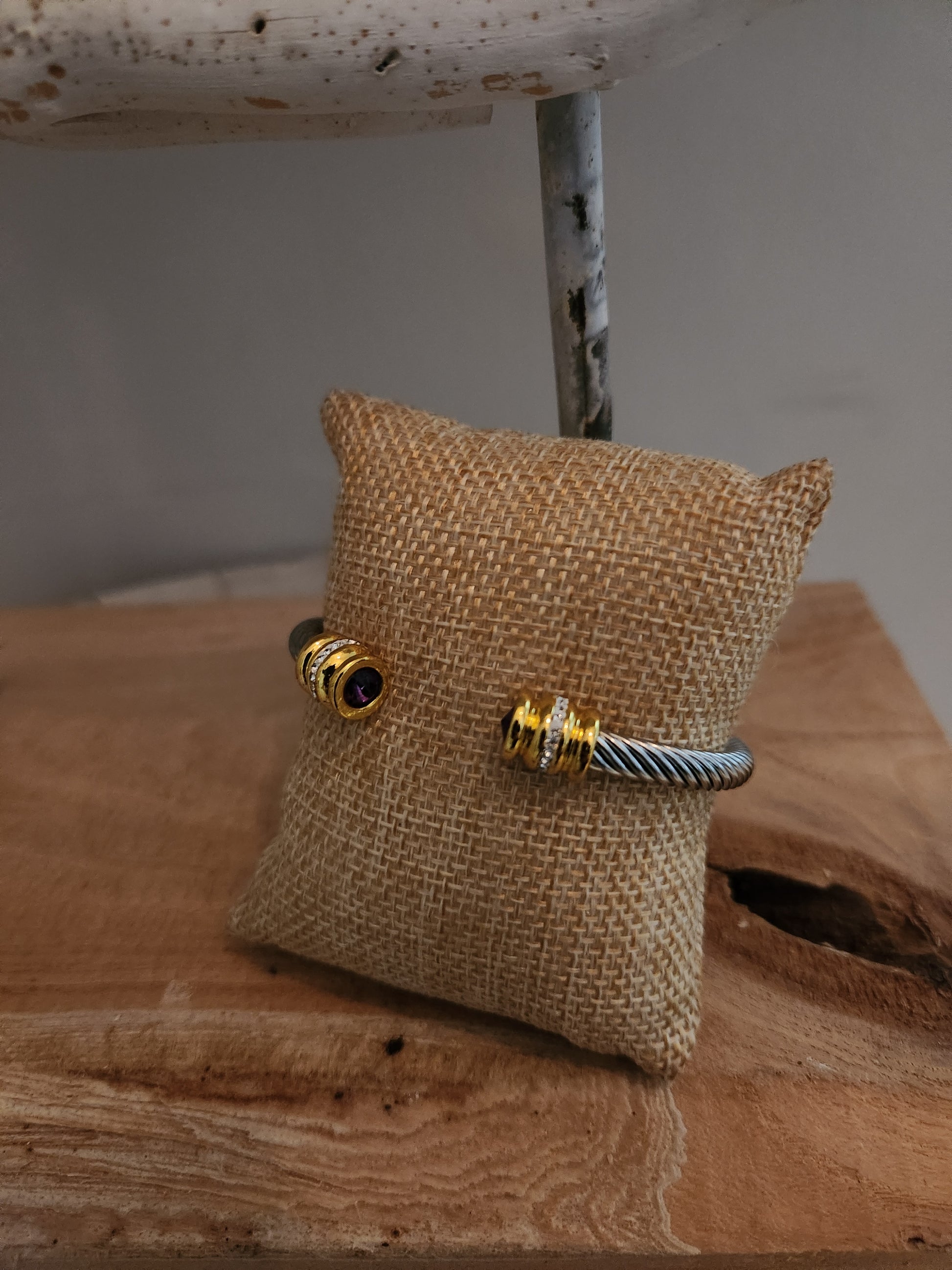 Twisted Bezel Stainless Steele Purple Bling Cuff