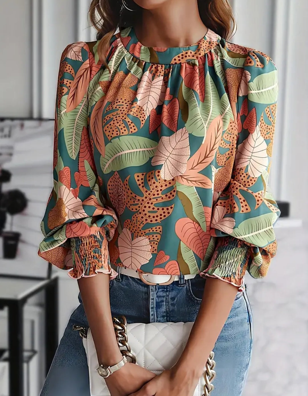 Tropical Lantern Sleeve Blouse